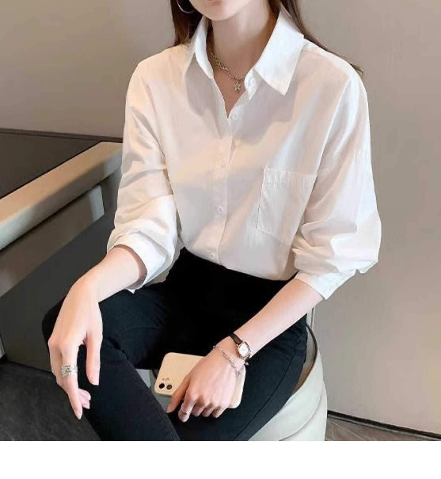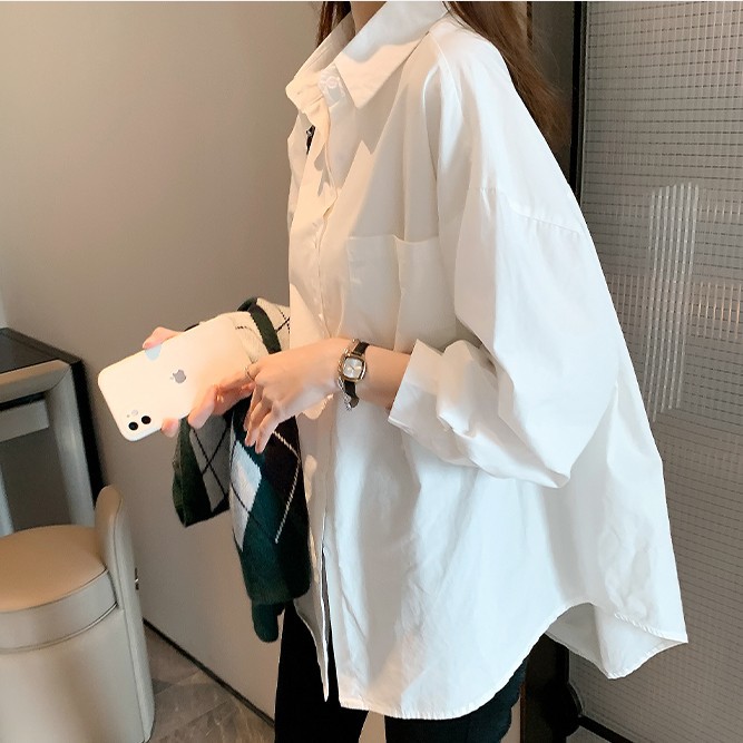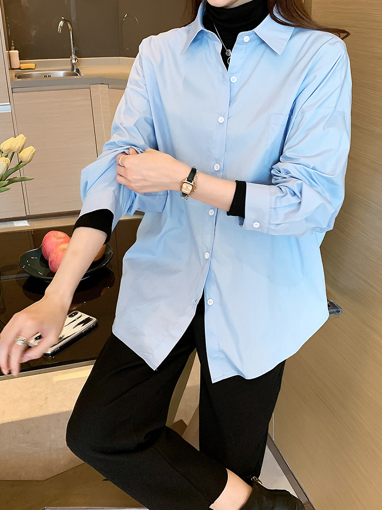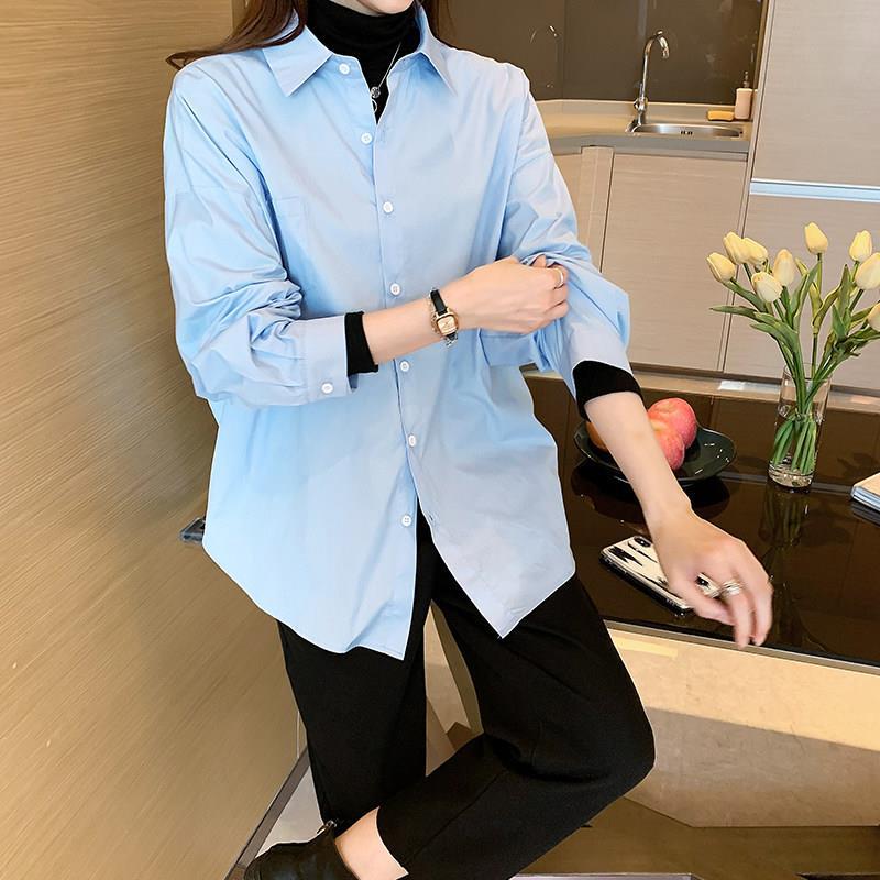 화이트 셔츠 여성 내복 2025 봄 새로운 한국 스타일 디자인 센스 니쉬 외국 스타일 탑 올 매치 긴 소매 셔츠스토어 가기