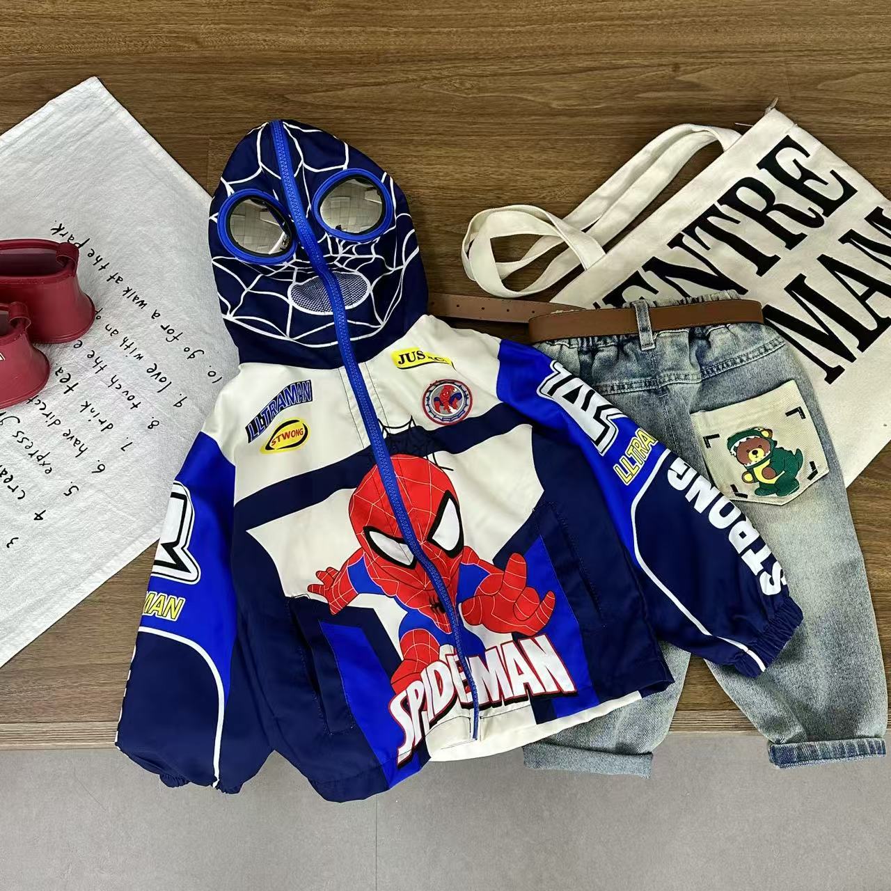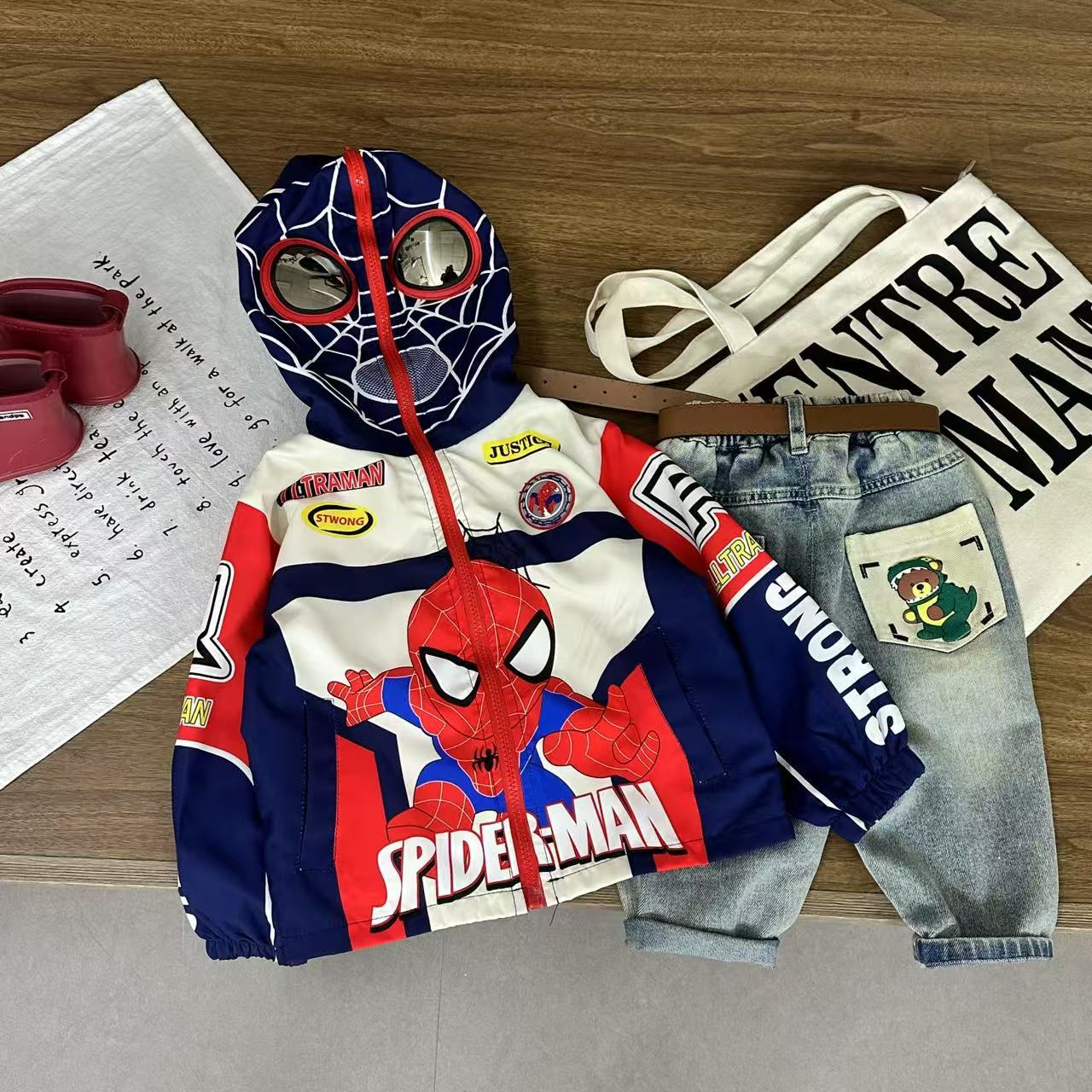 소년 스파이더 맨 코트 봄과 가을 코트 25 새로운 도착 잘 생긴 만화 어린이 안경 후드 재킷