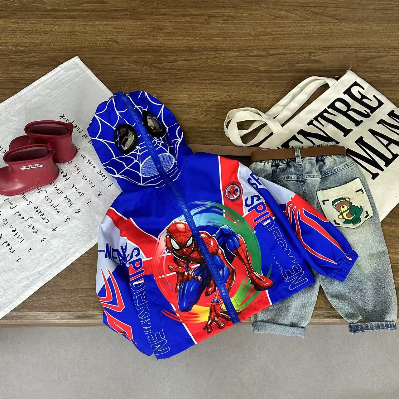 소년 스파이더 맨 코트 봄과 가을 코트 25 새로운 도착 잘 생긴 만화 어린이 안경 후드 재킷스토어 가기