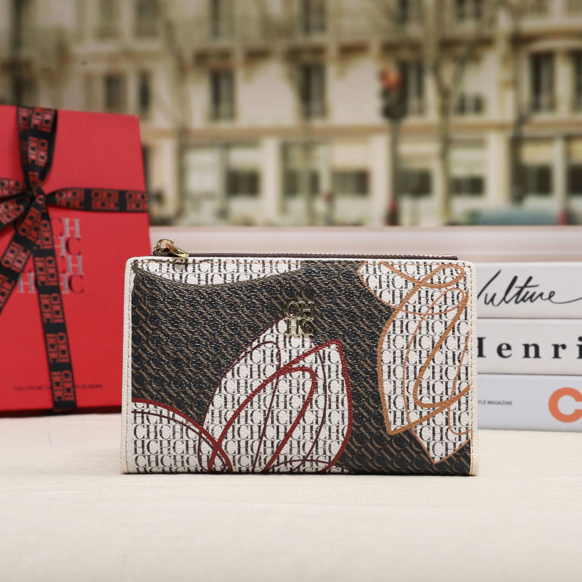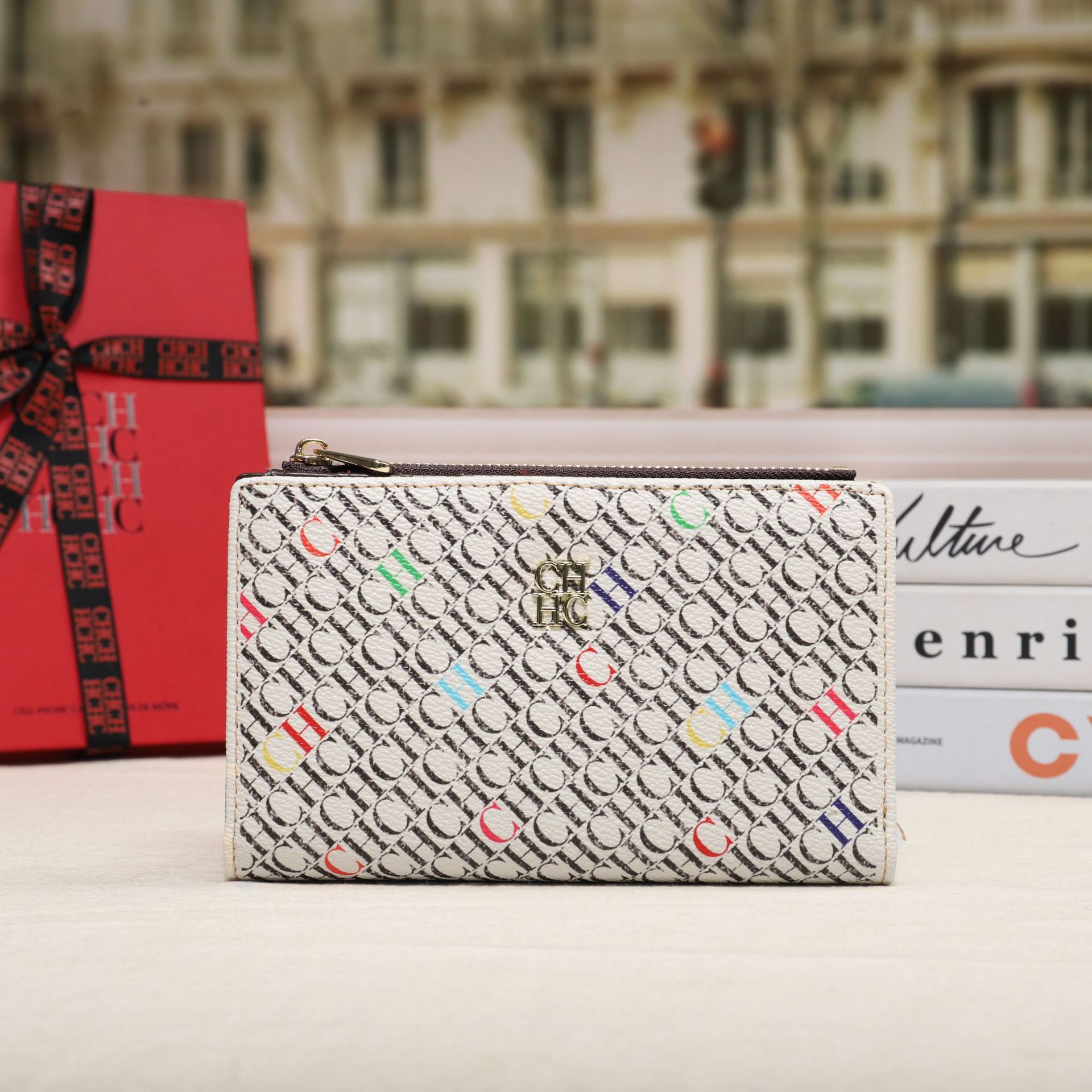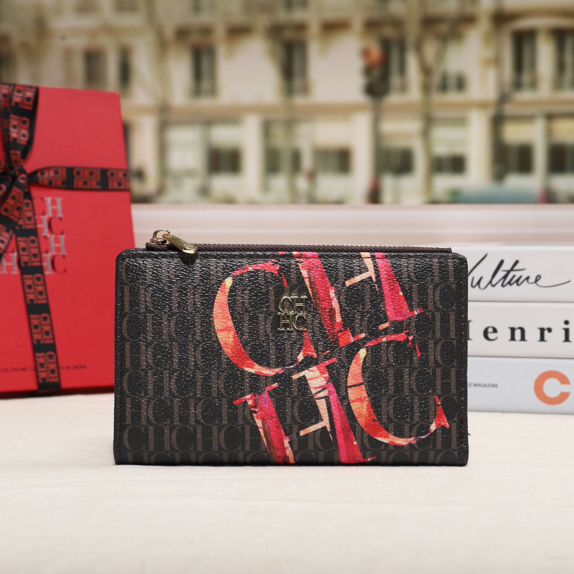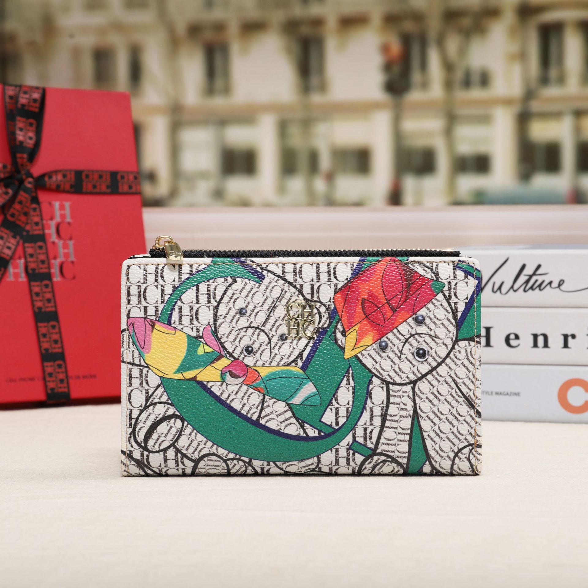 CHHC 지갑 여성의 2024 새로운 패션 동전 지갑 작은 빛 럭셔리 인쇄 틈새 디자인 멀티 카드 슬롯 카드 가방