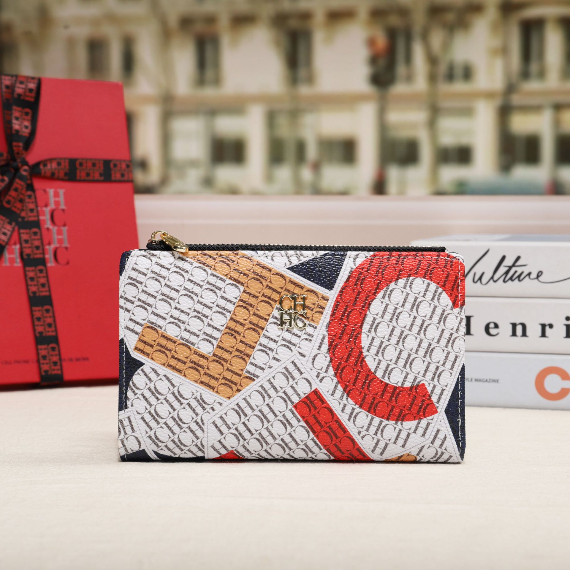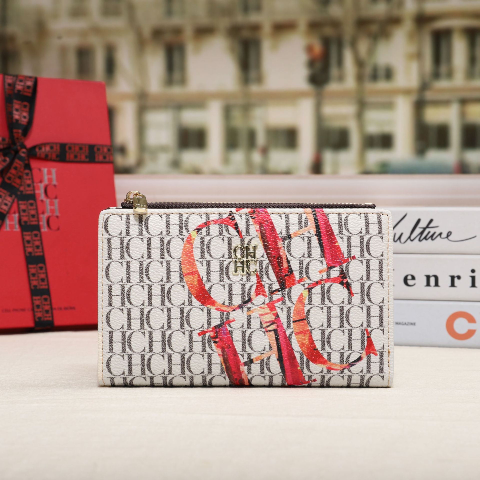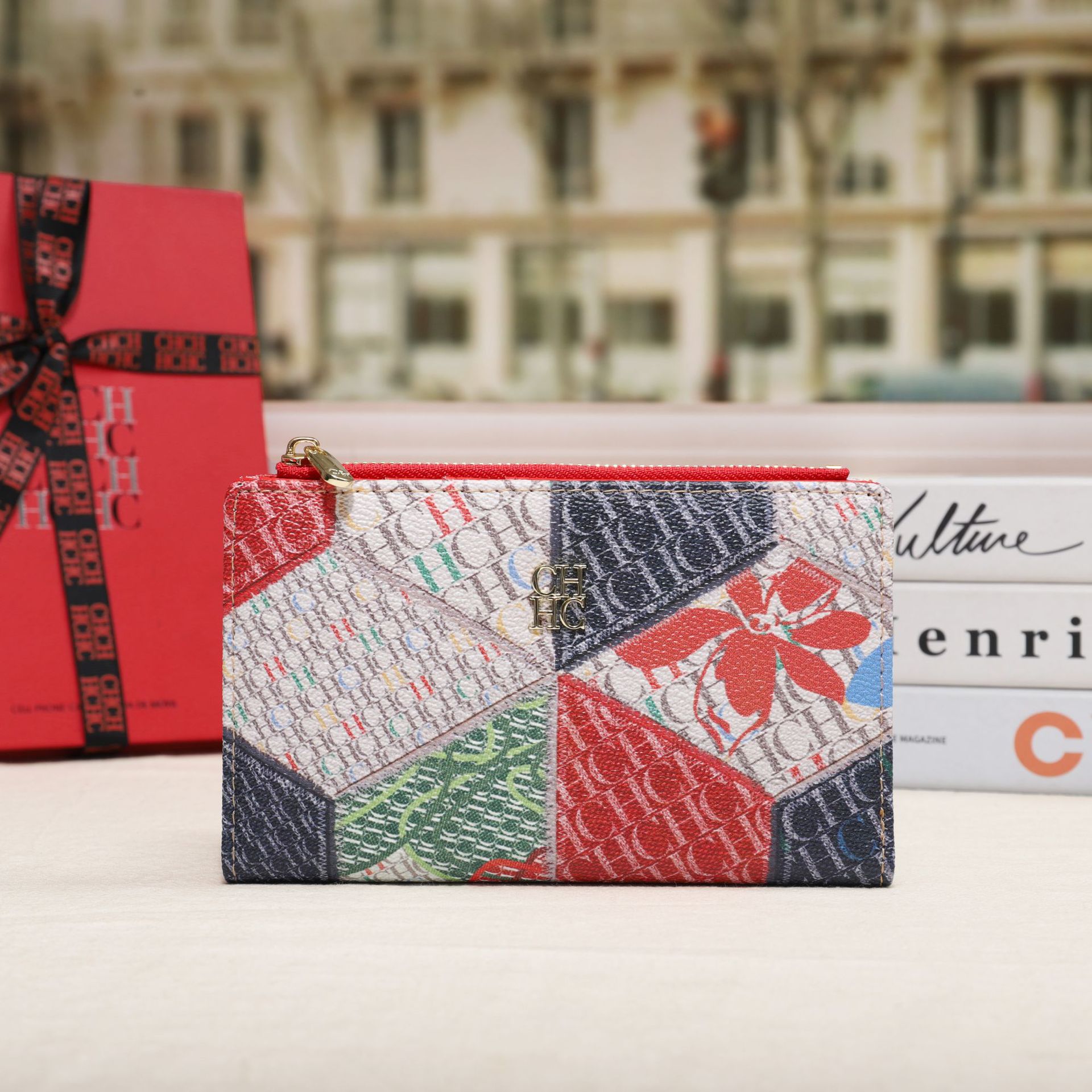 CHHC 지갑 여성의 2024 새로운 패션 동전 지갑 작은 빛 럭셔리 인쇄 틈새 디자인 멀티 카드 슬롯 카드 가방
