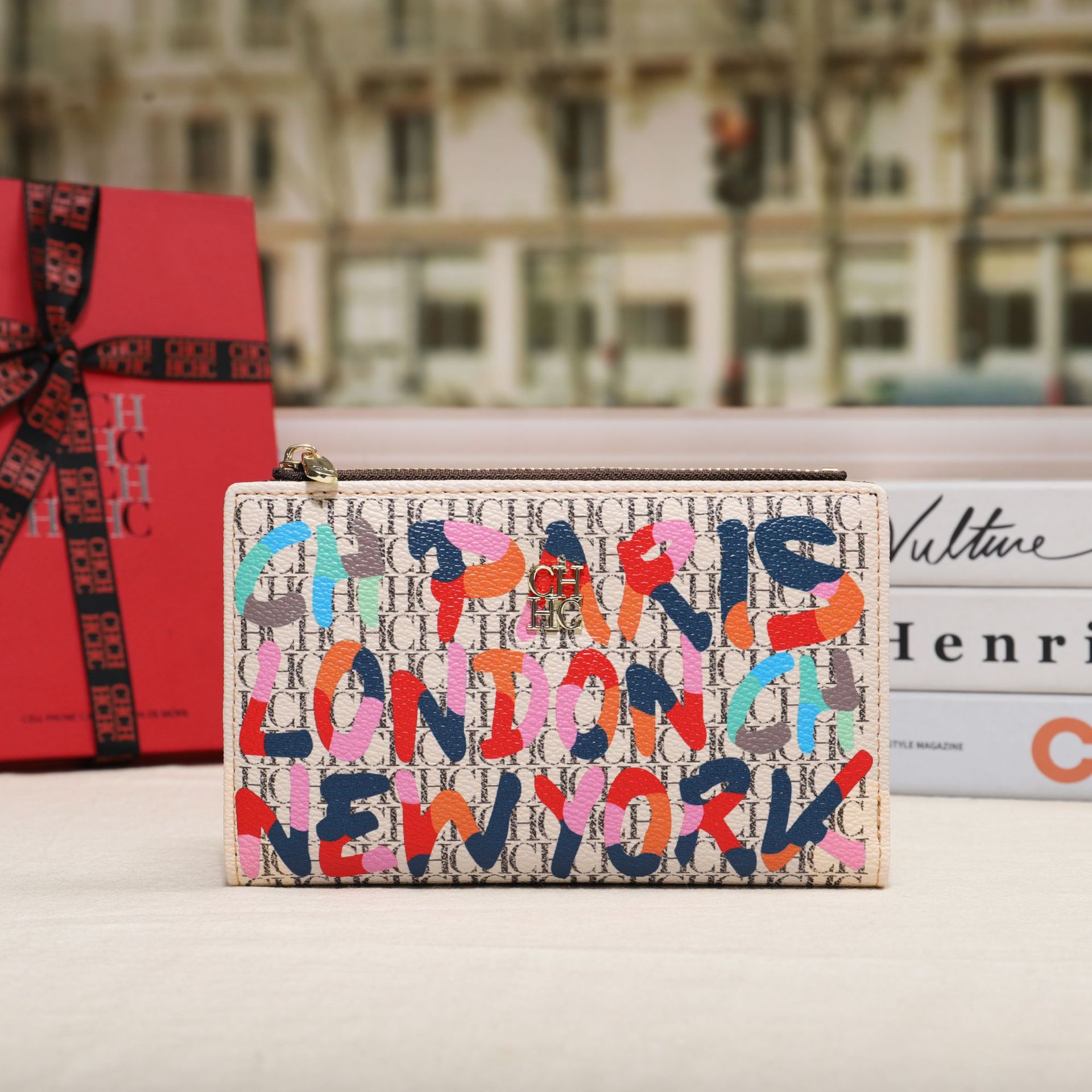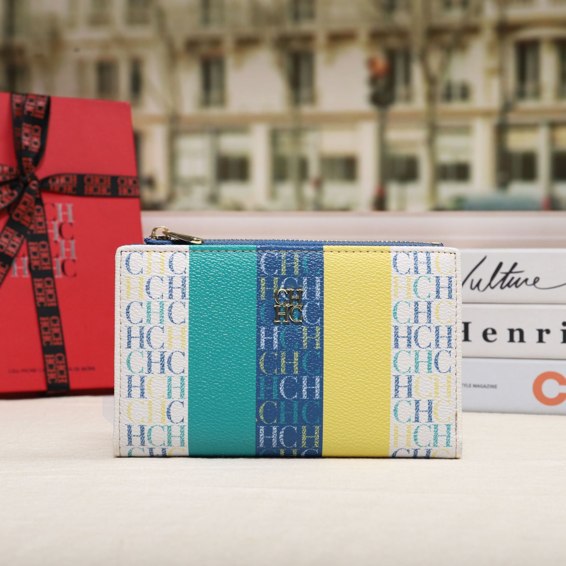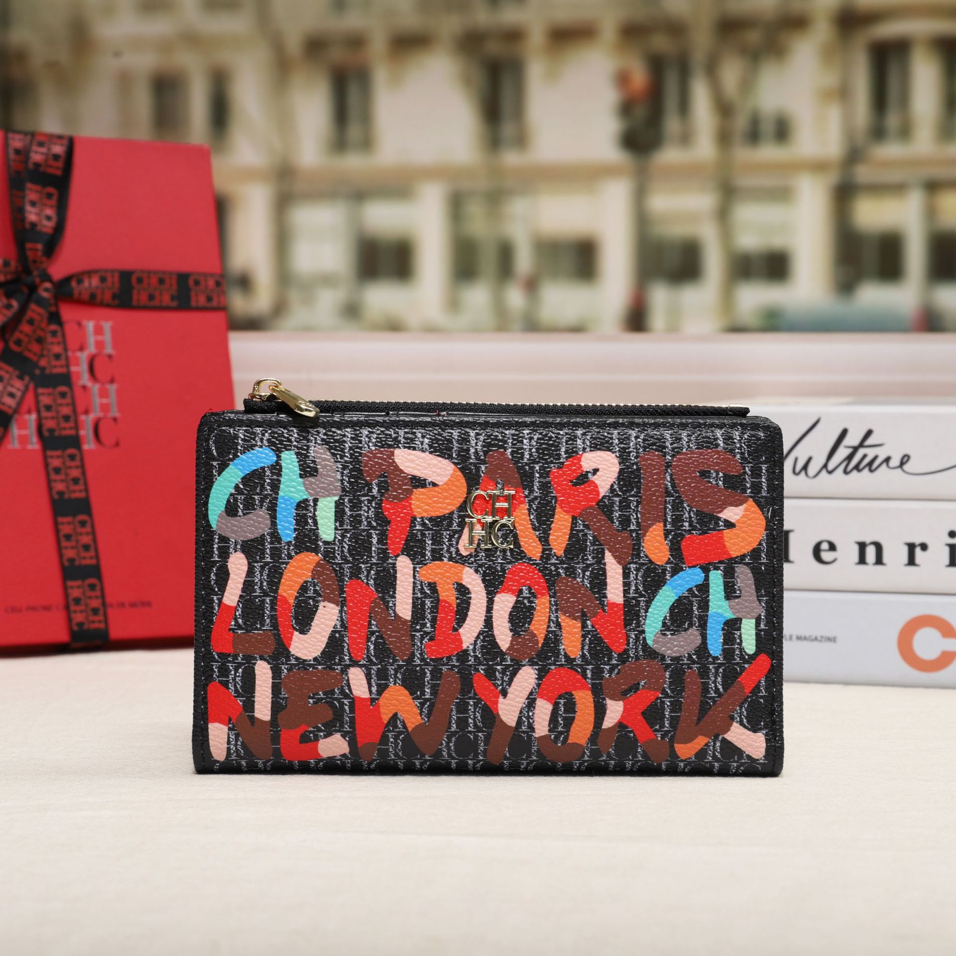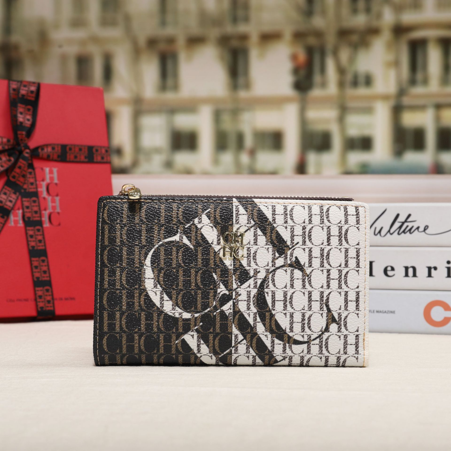 CHHC 지갑 여성의 2024 새로운 패션 동전 지갑 작은 빛 럭셔리 인쇄 틈새 디자인 멀티 카드 슬롯 카드 가방