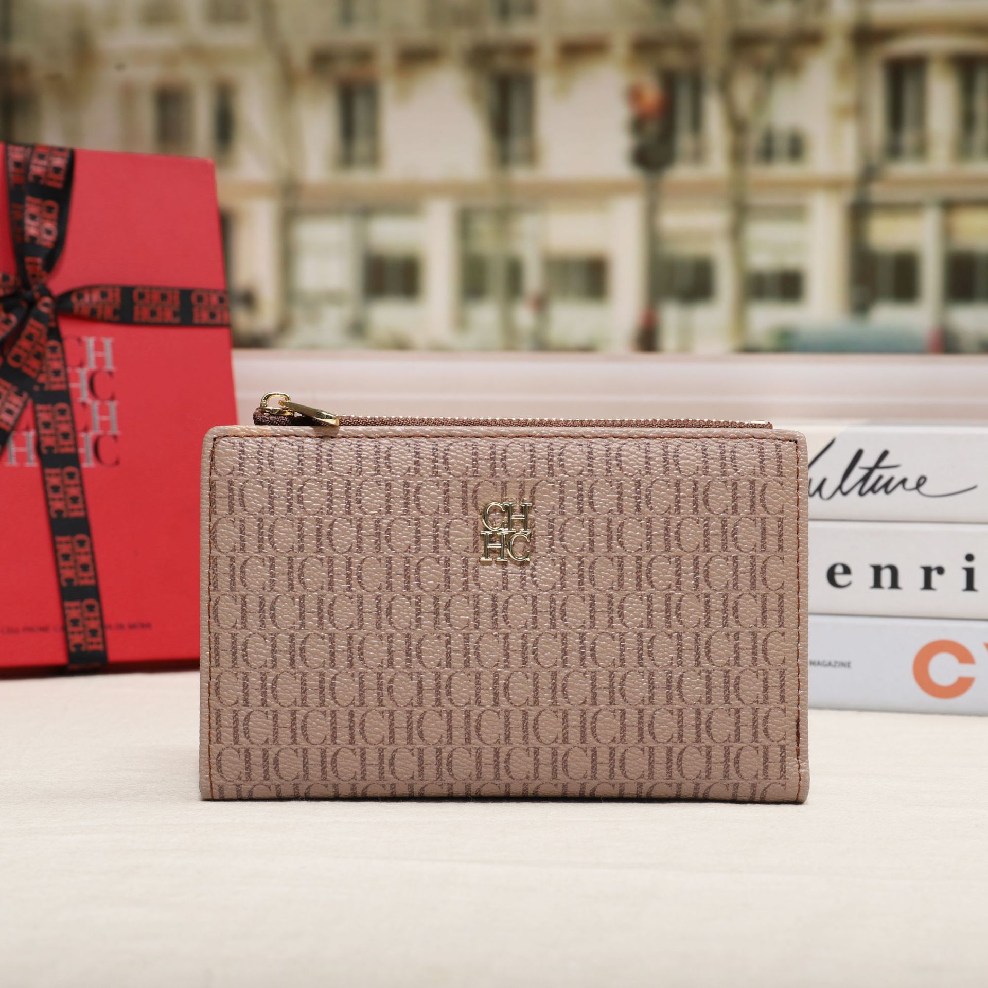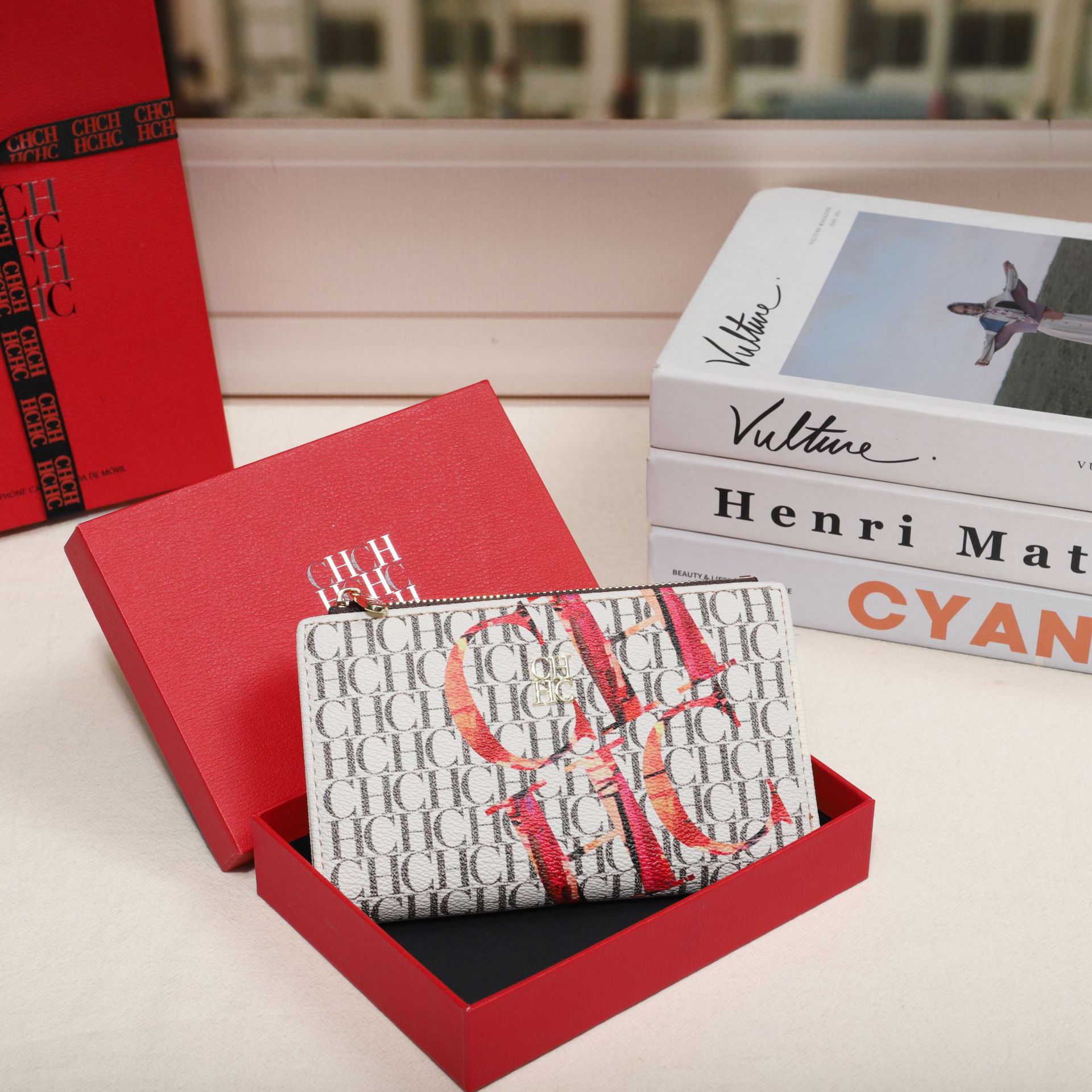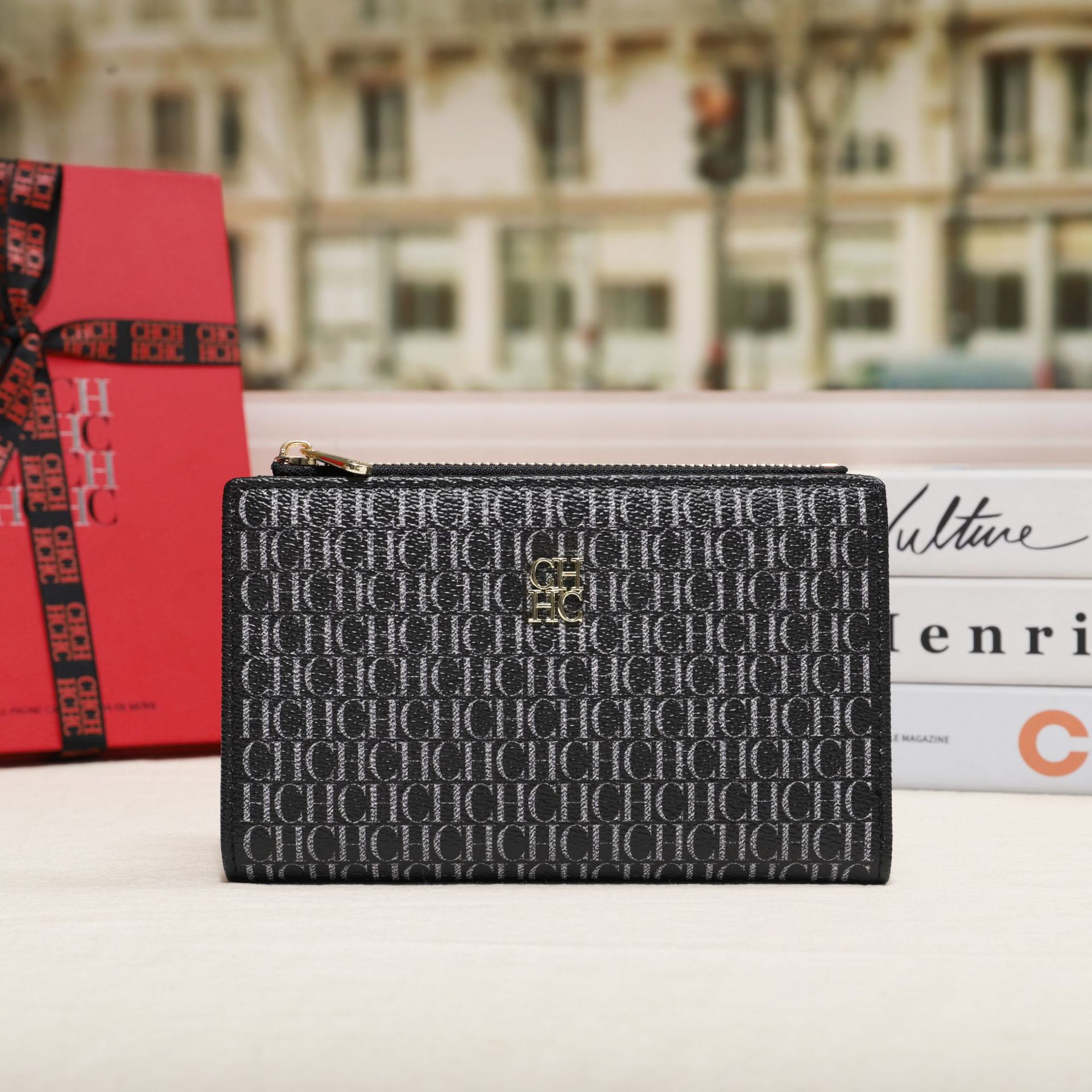 CHHC 지갑 여성의 2024 새로운 패션 동전 지갑 작은 빛 럭셔리 인쇄 틈새 디자인 멀티 카드 슬롯 카드 가방스토어 가기