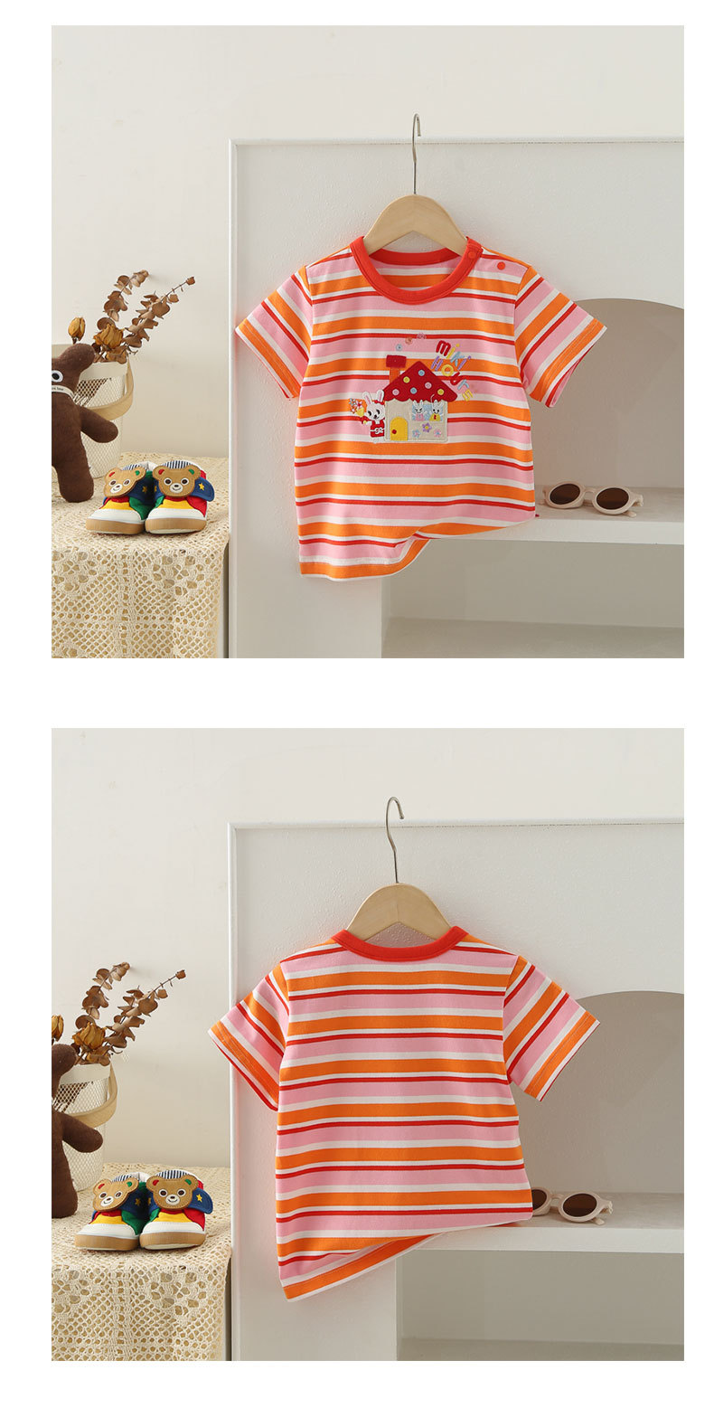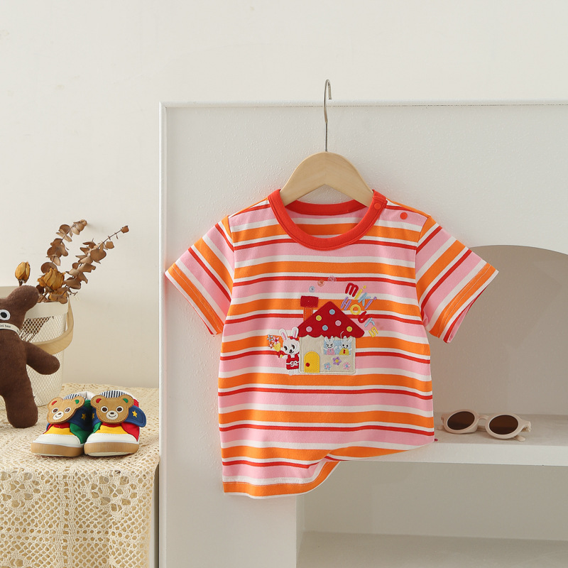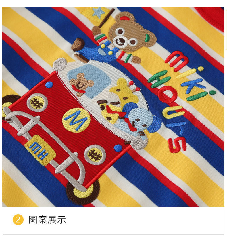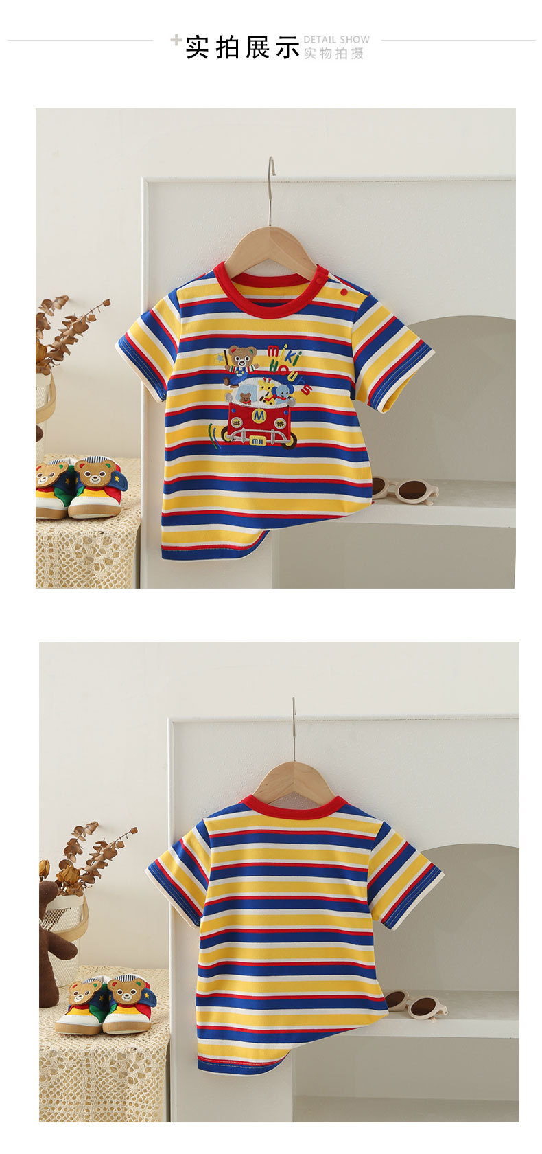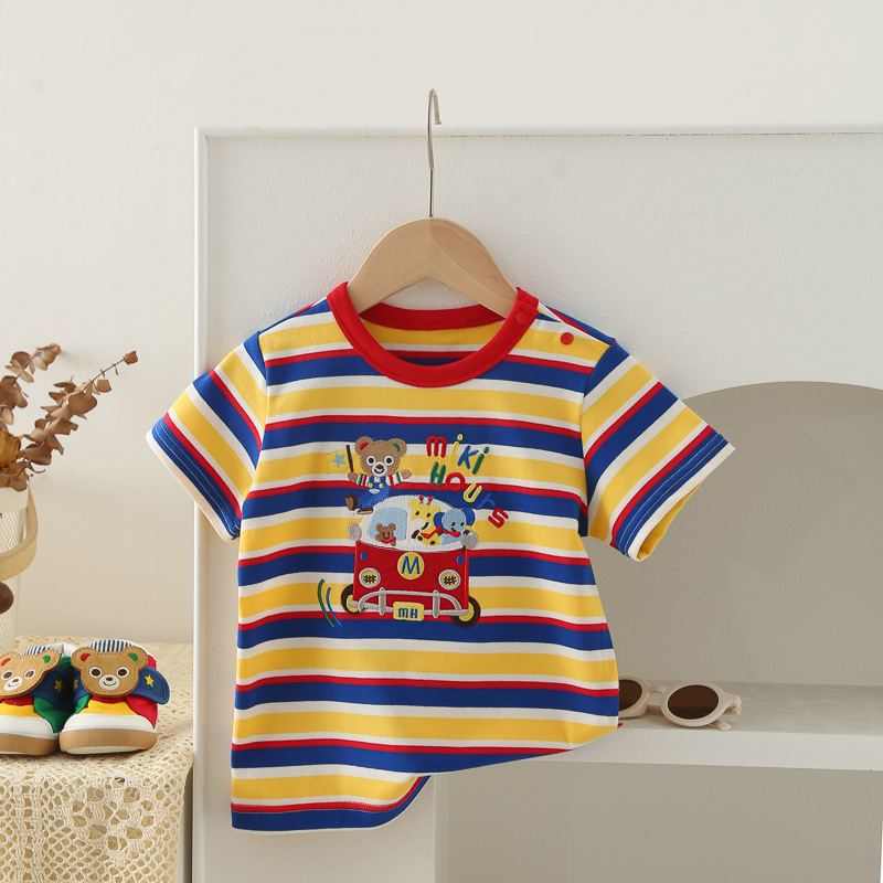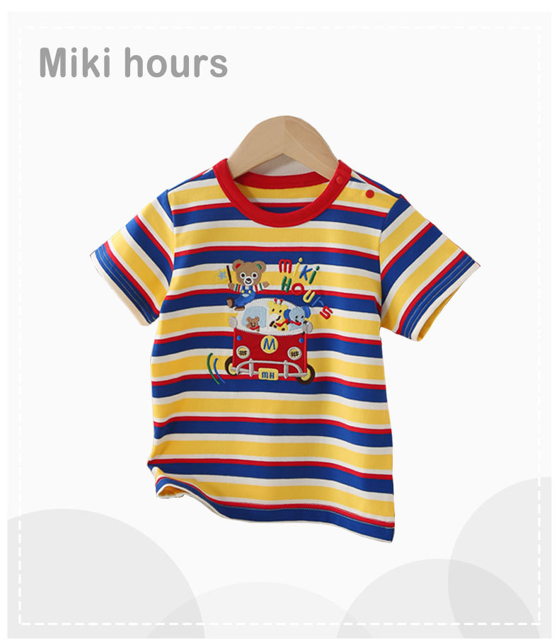 미키 일본 어린이 줄무늬 반팔 티셔츠 소년 소녀 여름 면 반소매 탑 트렌디 아동베이스 셔츠스토어 가기