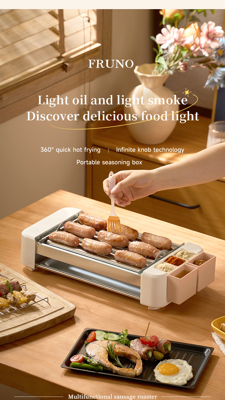 • 6관 소시지 그릴(그릴 + 오일 트레이 + 프라이팬 + 바베큐 그릴 + 양념 상자 1개가 포함된 호스트)✦★