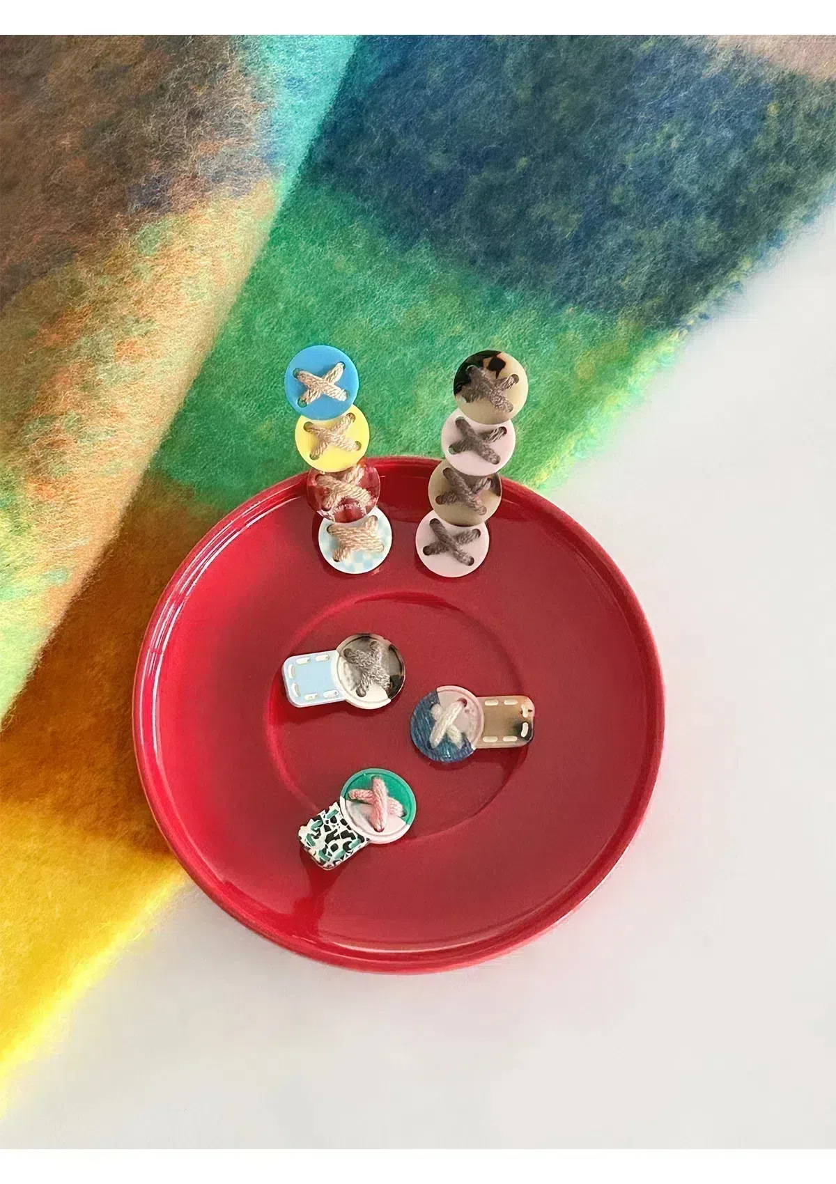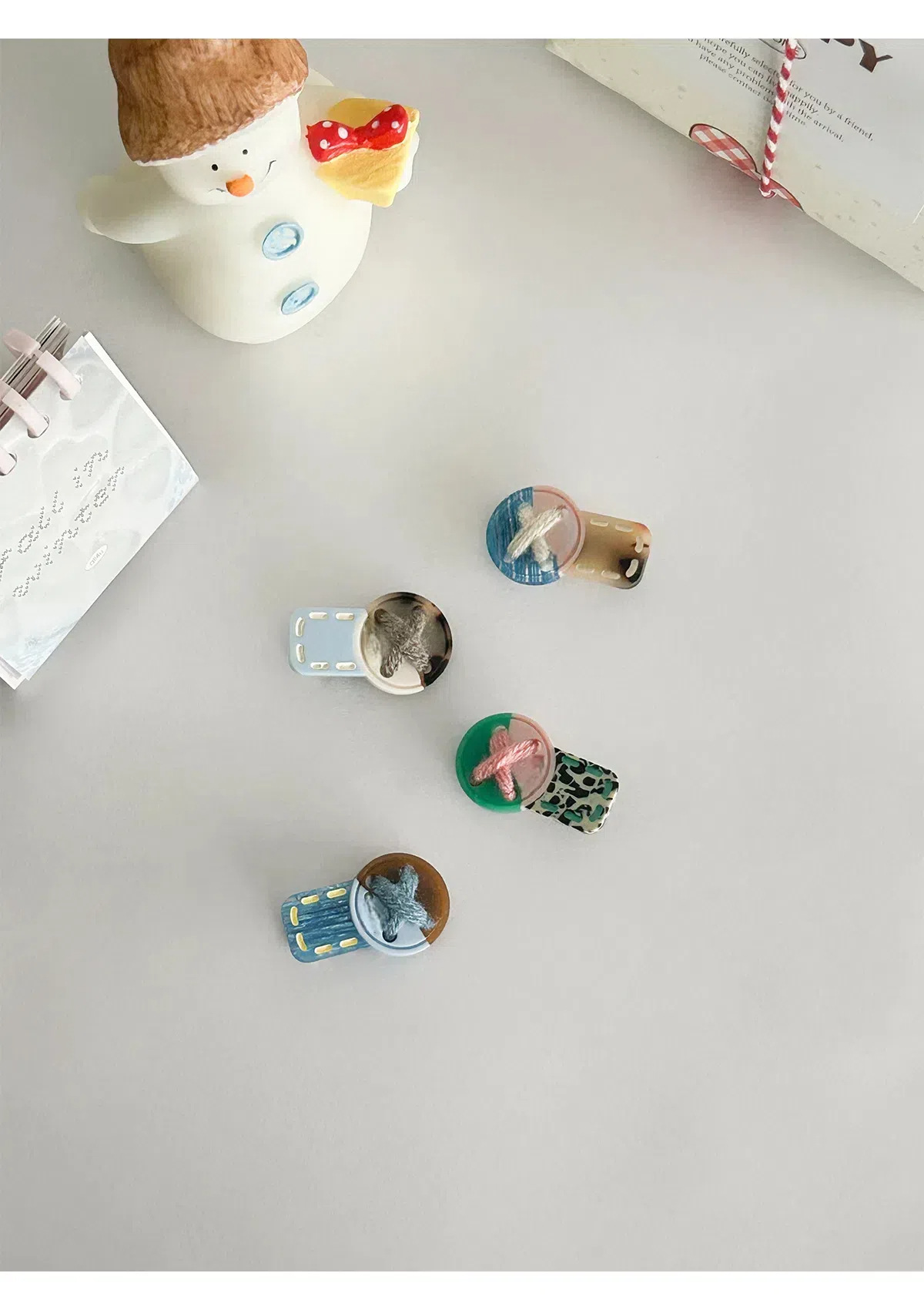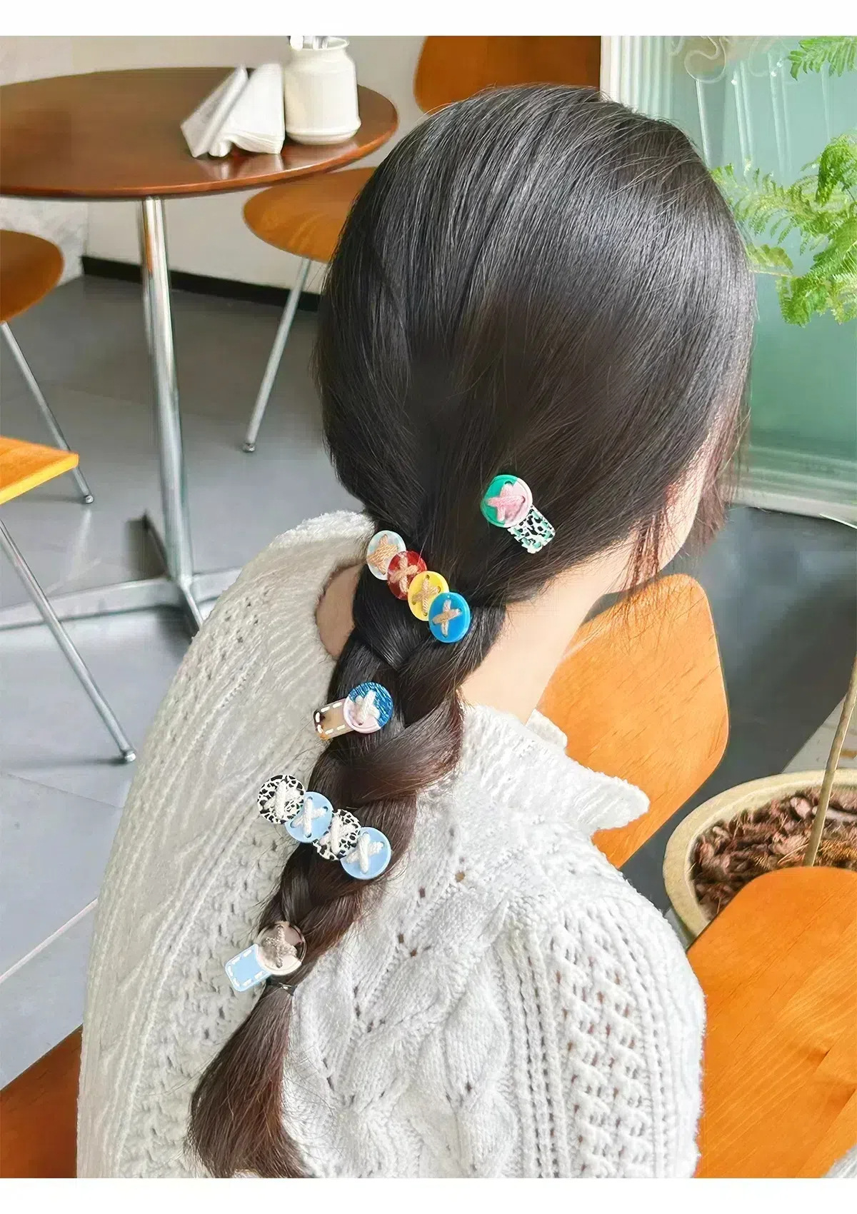 한국의 새로운 스타일의 창조적 인 버튼 양모 아세테이트 헤어 클립 달콤한 소녀 올 매치 하이 엔드 오리 빌 클립 사이드 클립 헤어 액세서리