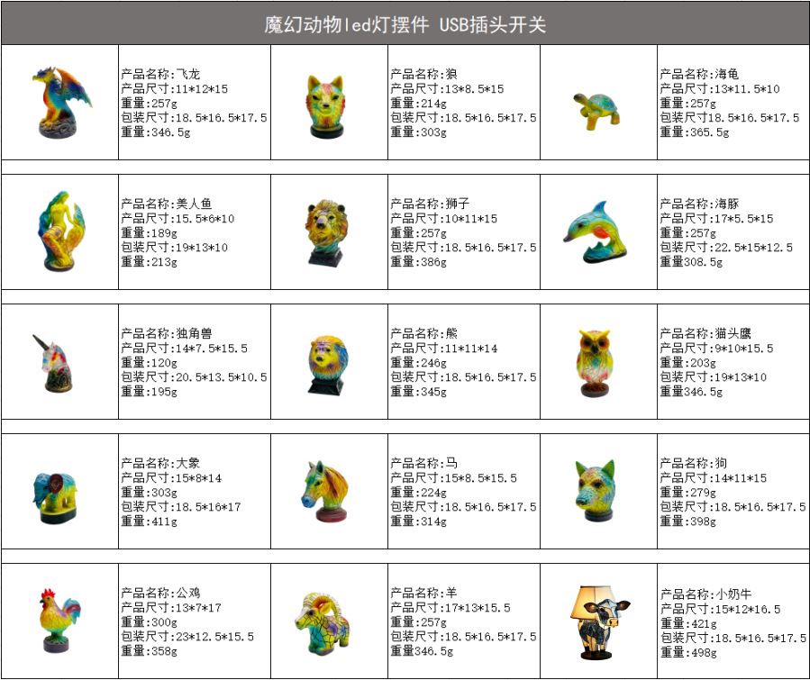 국경 새로운 마법의 환상적인 동물 테이블 램프 장식품 수지 동상 창조적 인 usb 플러그 스위치 조명 장식품스토어 가기