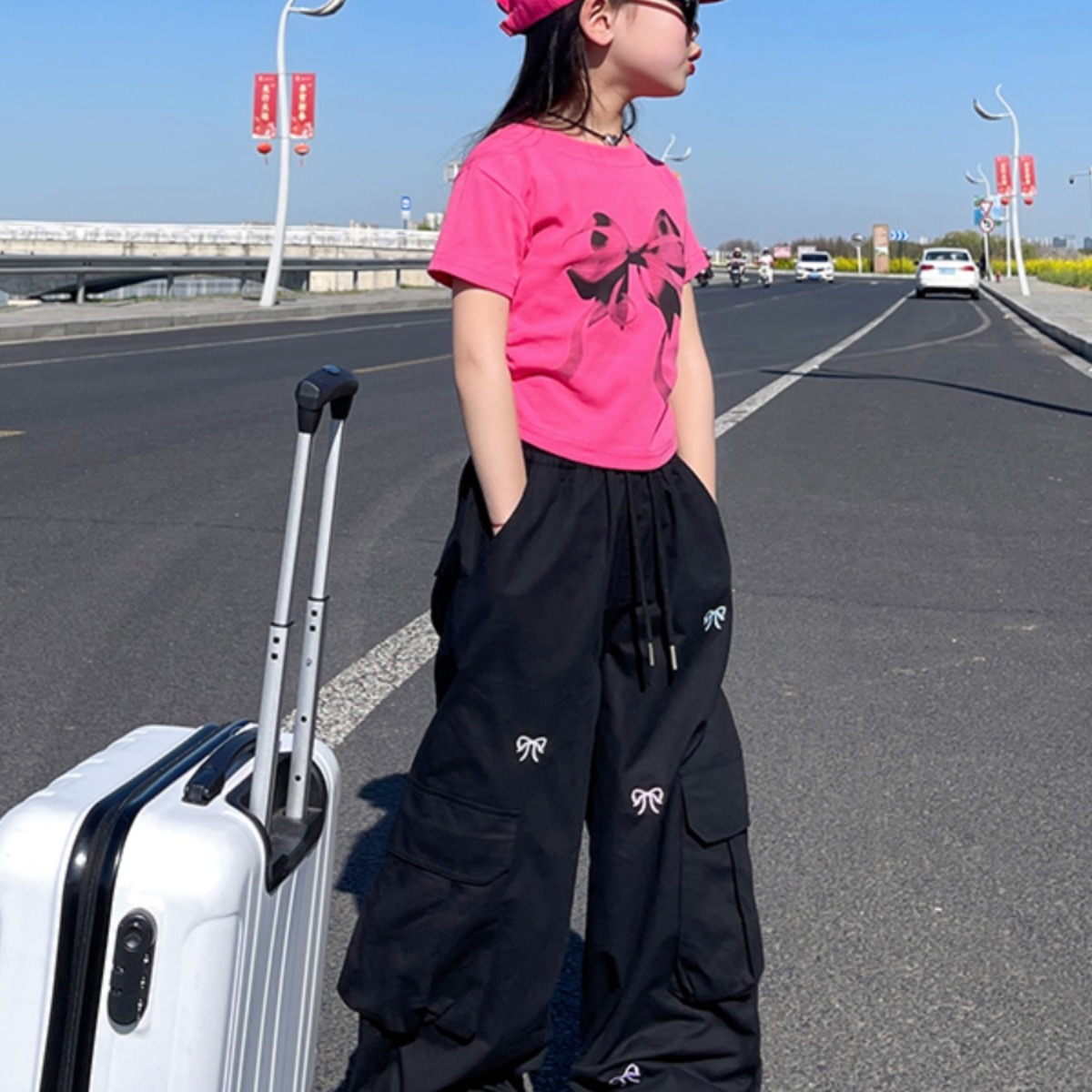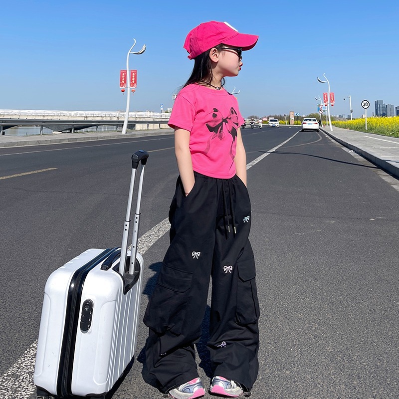 새로운 소녀 바지 여름 얇은 2025 새로운 어린이 캐주얼 바지 큰 어린이 얇은 작업 바지 소녀스토어 가기