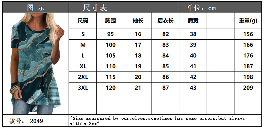 2024 국경을 넘는 새로운 여성 EBAY 핫 셀러 라운드 넥 캐주얼 민족 스타일 복고풍 프린트 반팔 티셔츠
