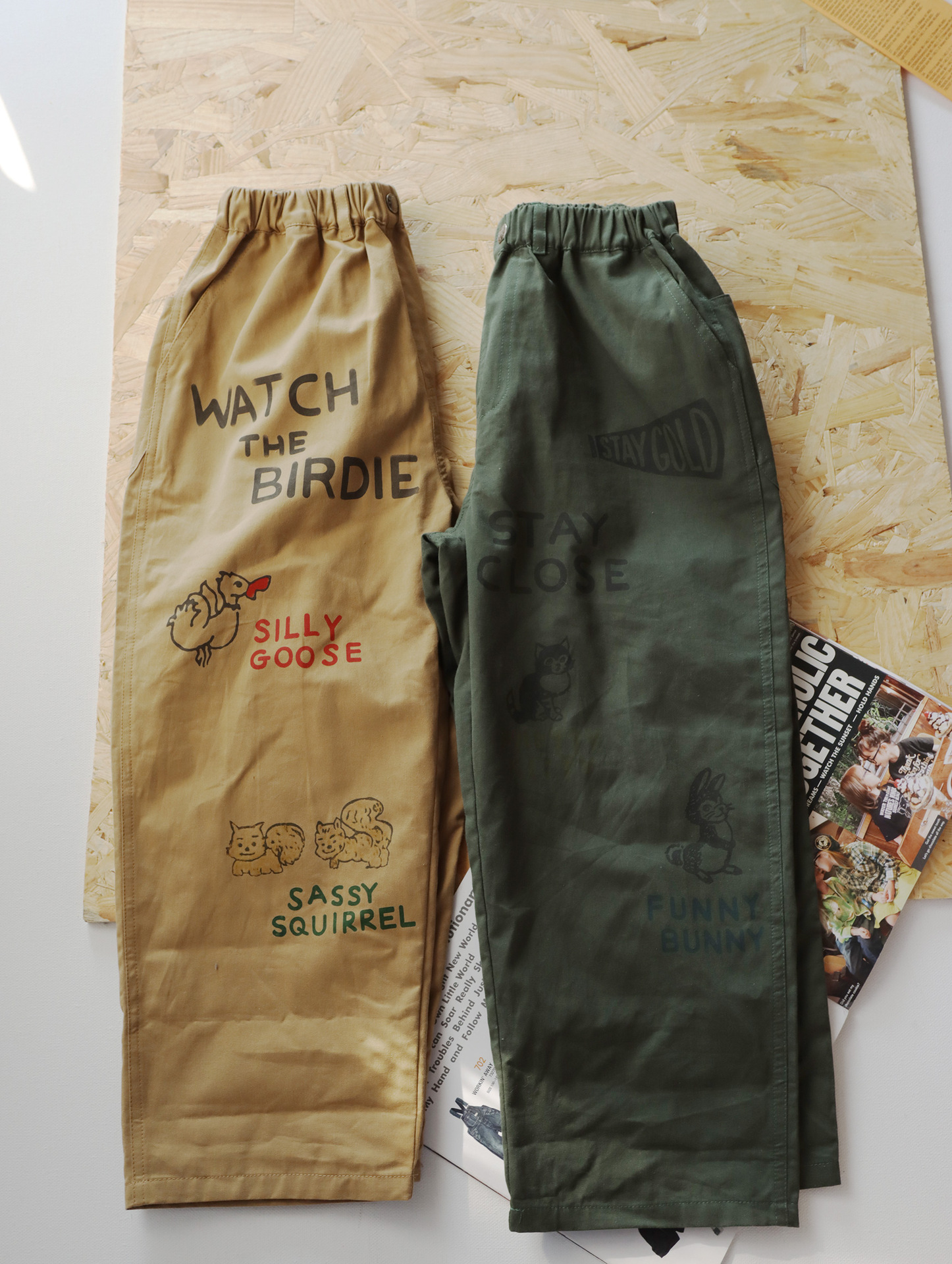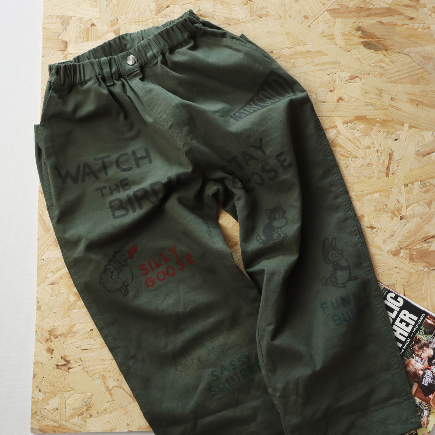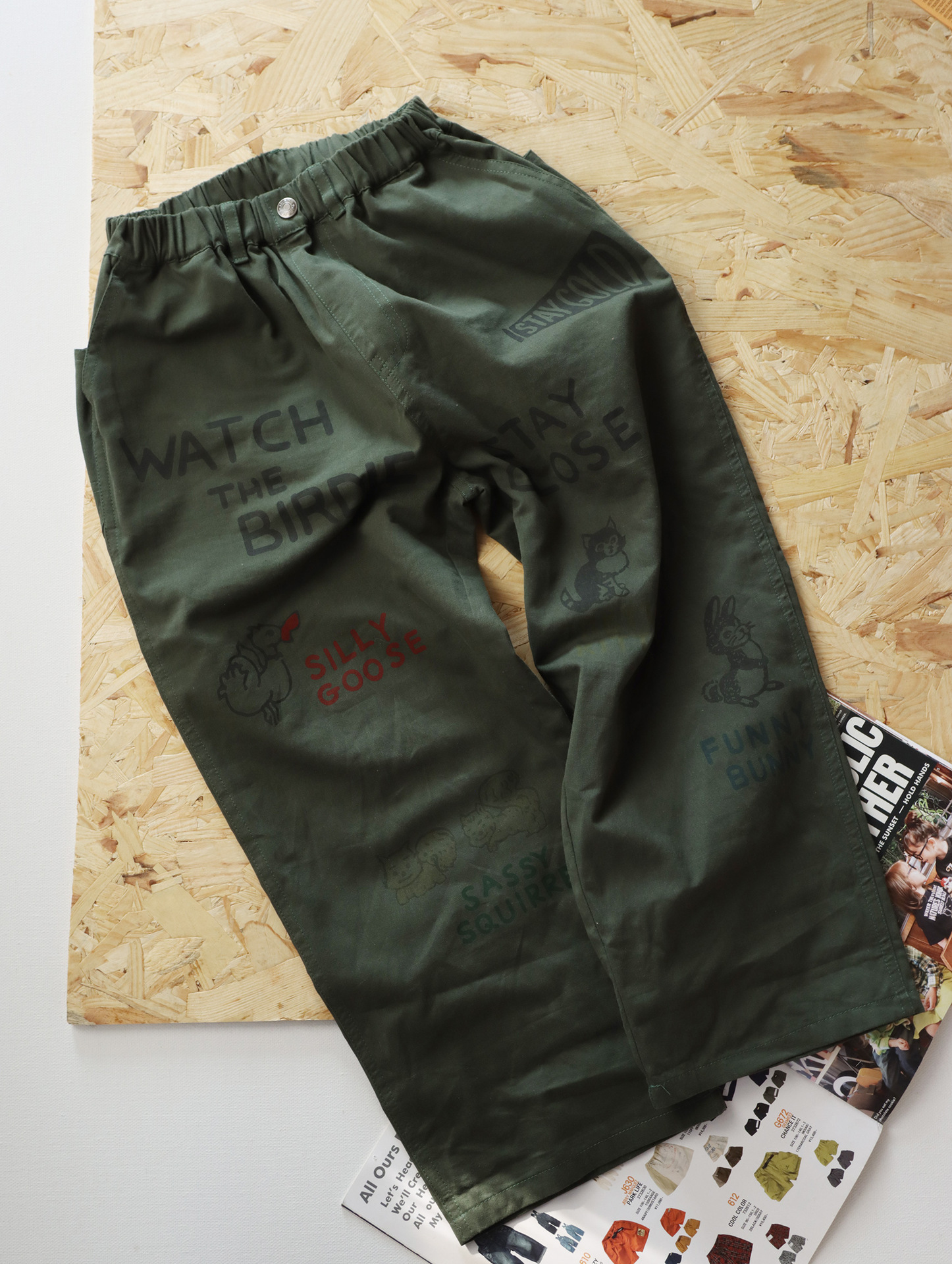 • 카키색 작은 동물 루즈 팬츠