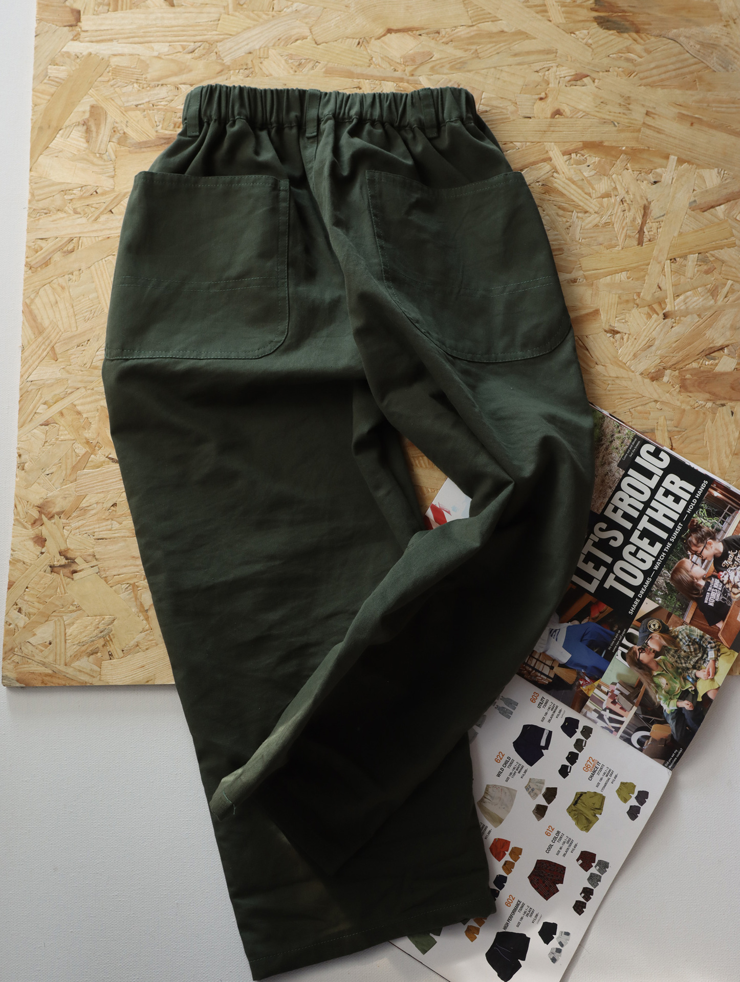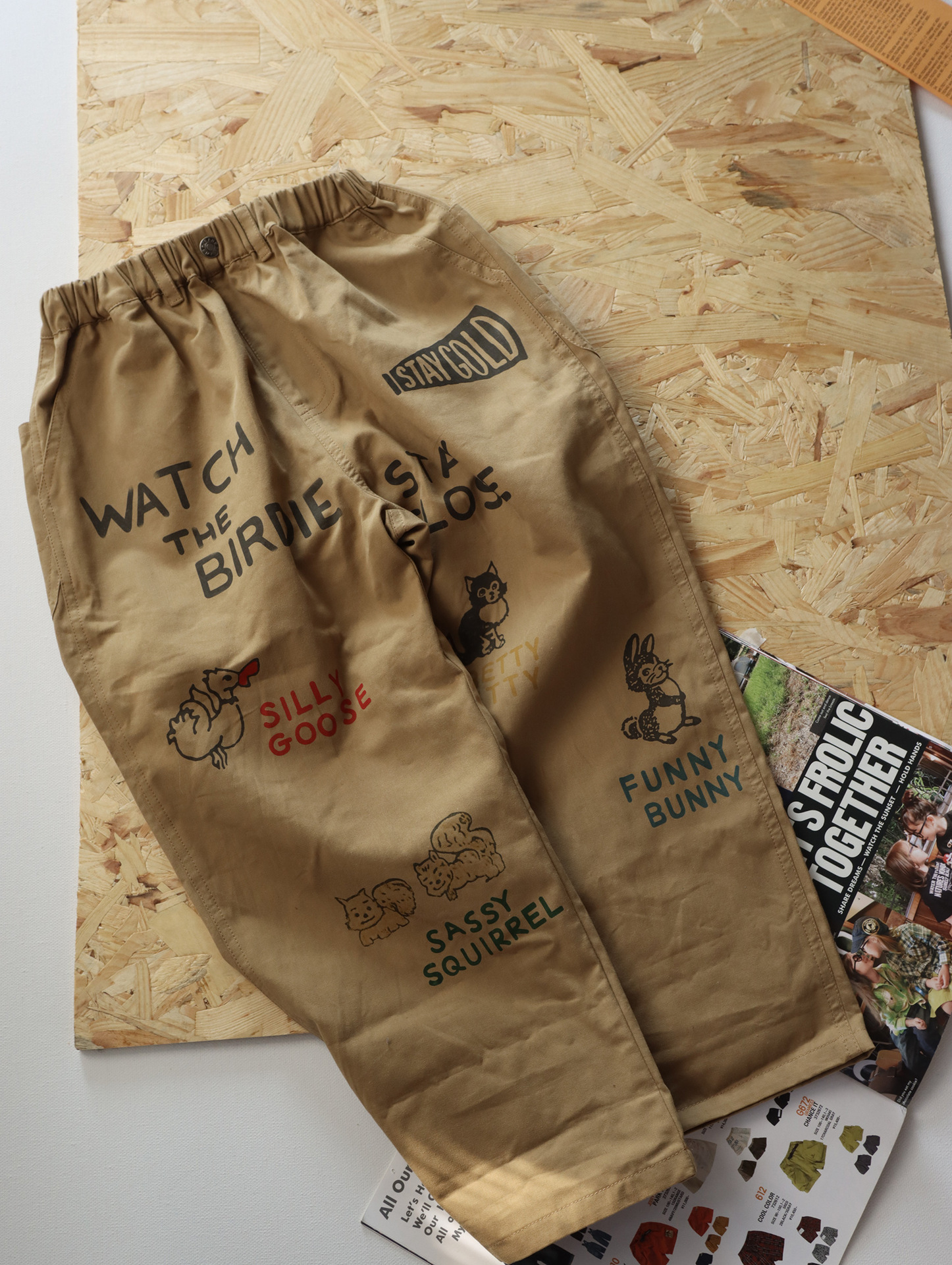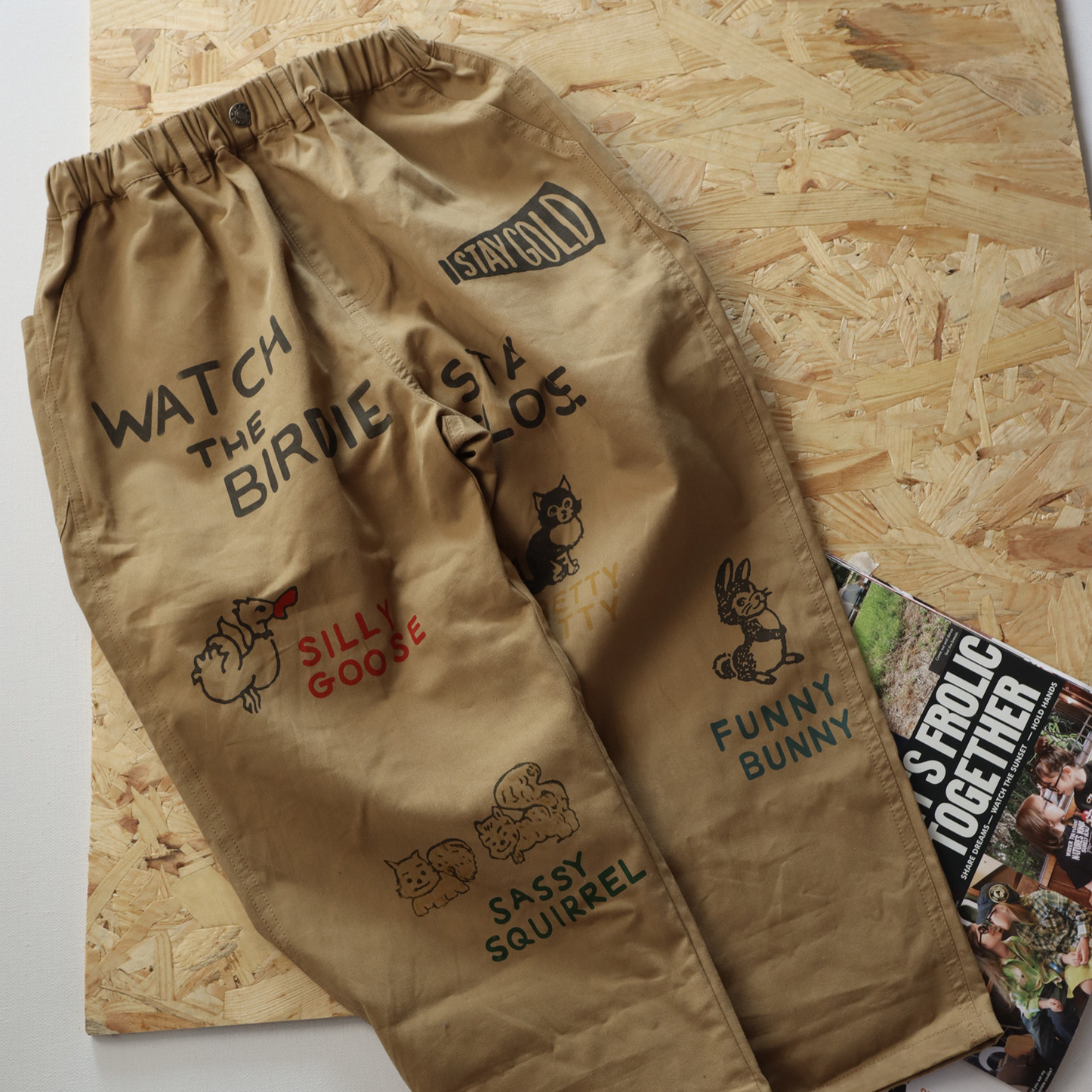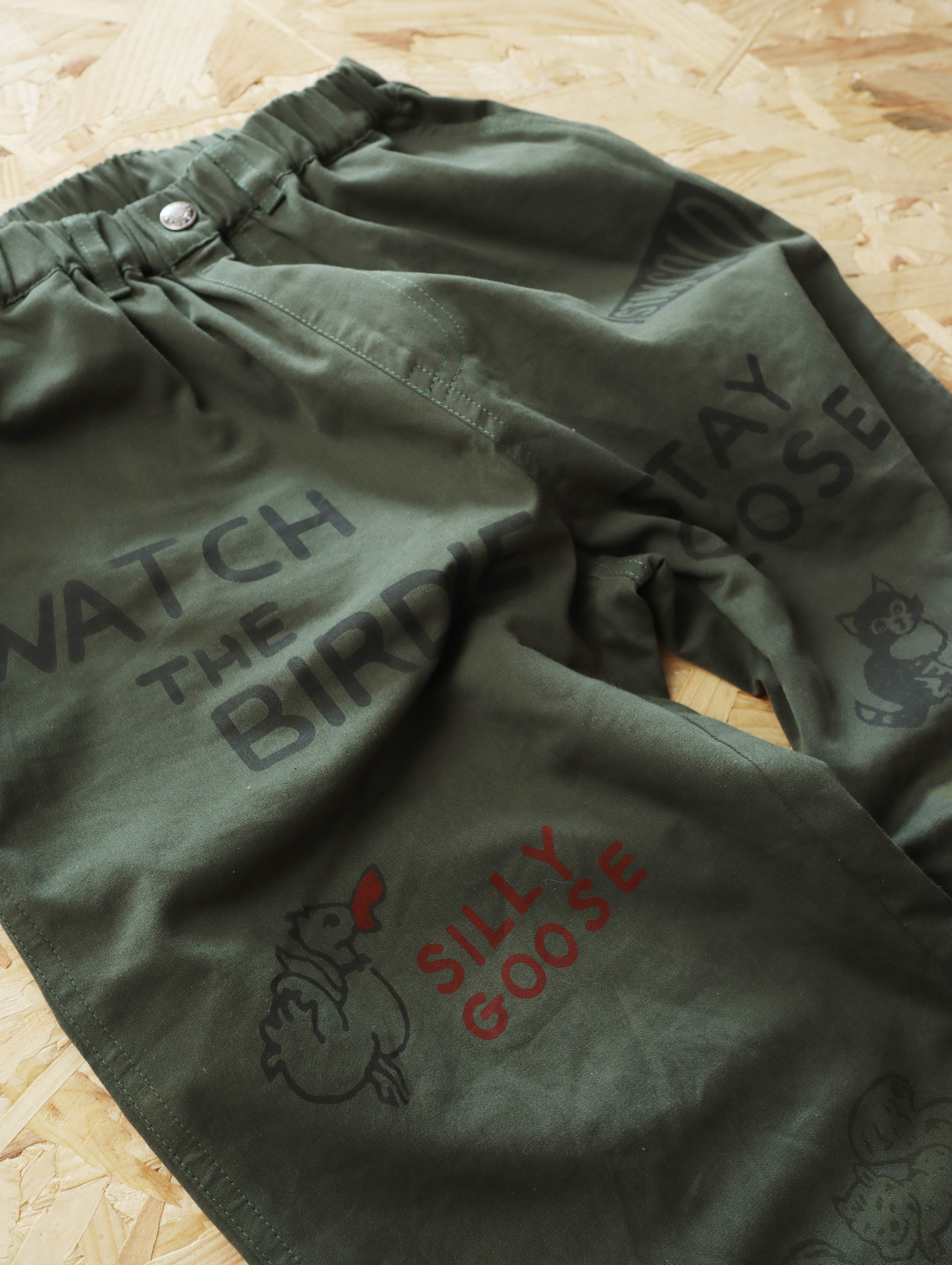 • 카키색 작은 동물 루즈 팬츠