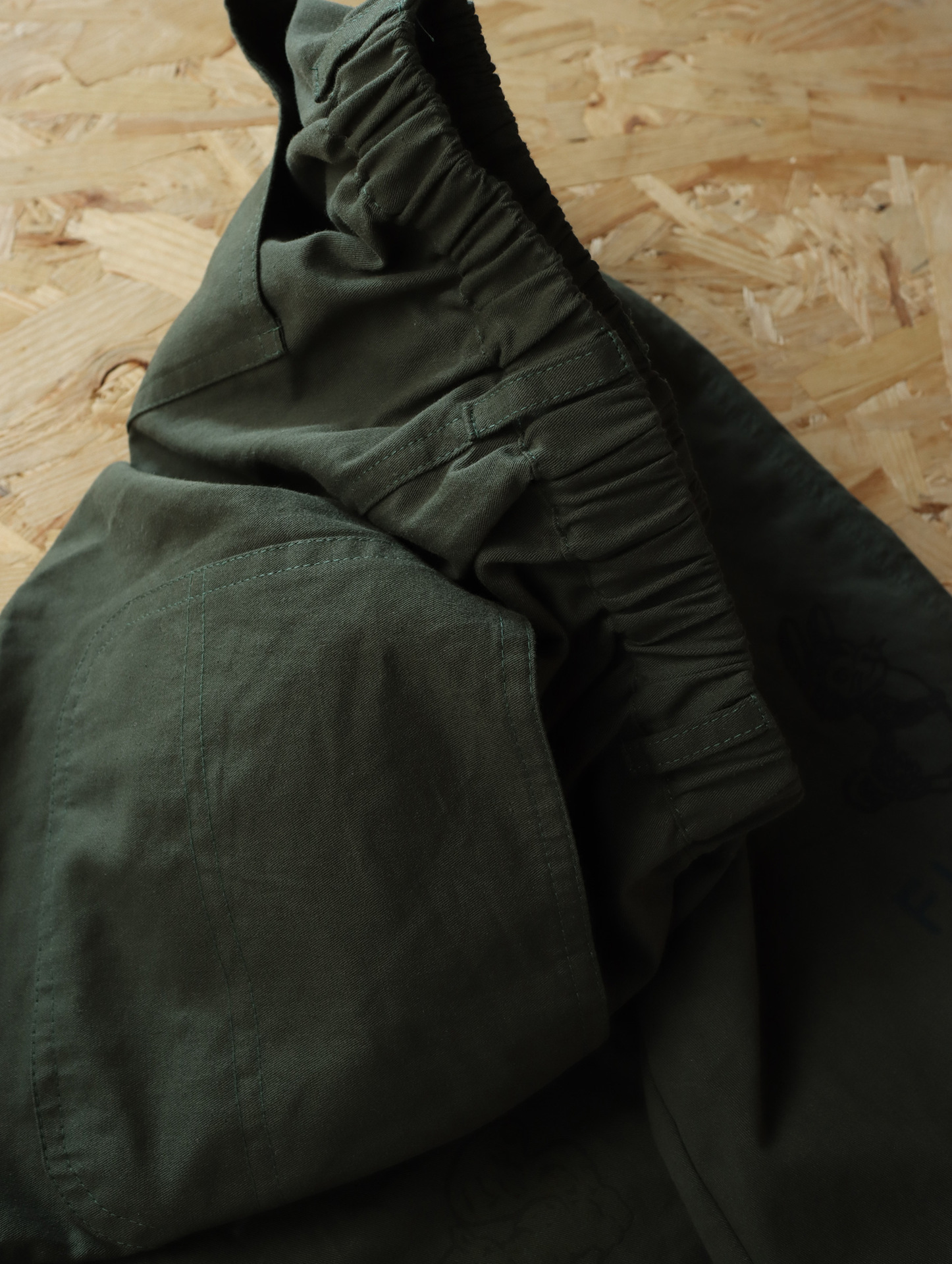 • 짙은 녹색 작은 동물의 헐렁한 바지