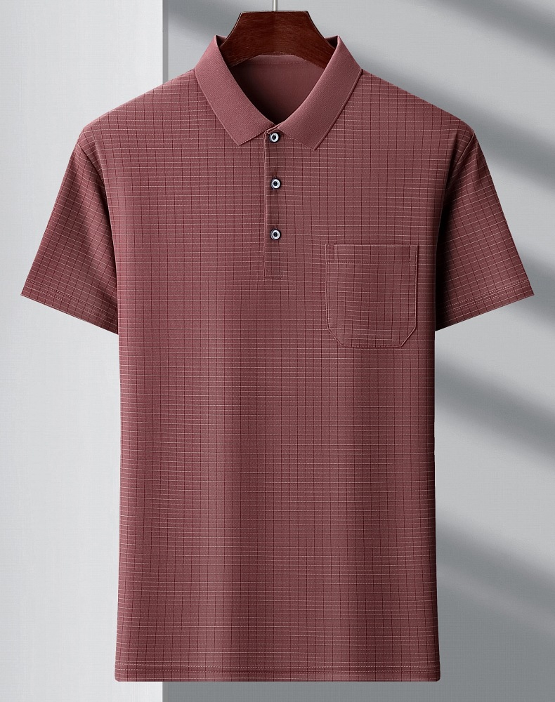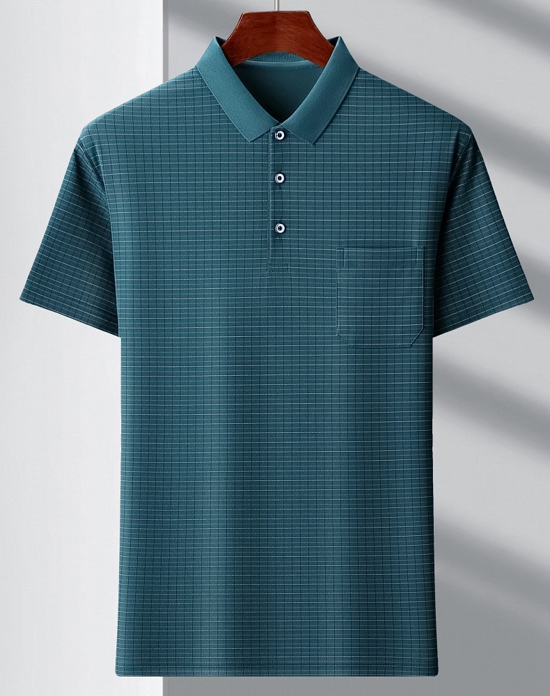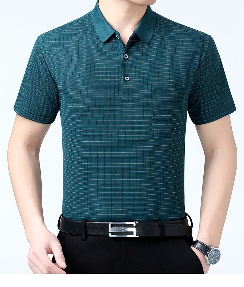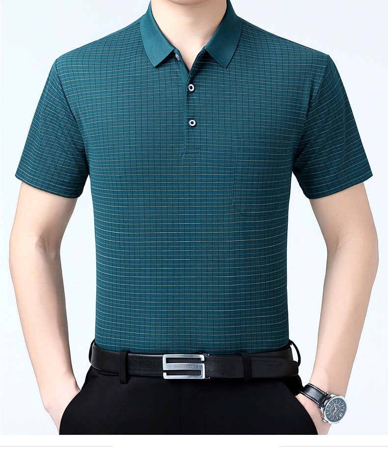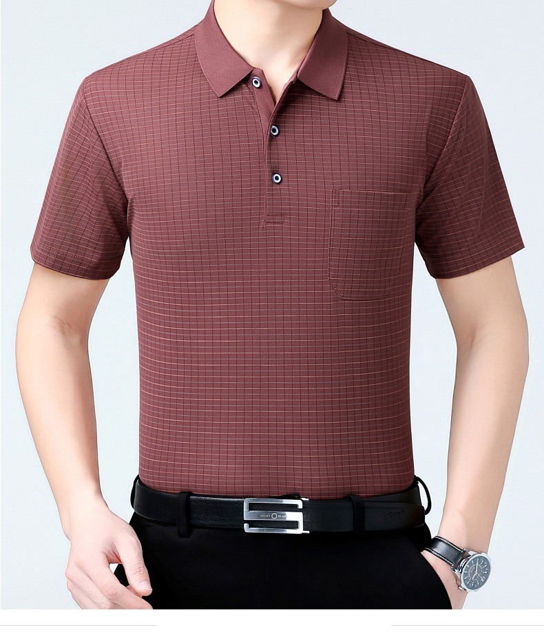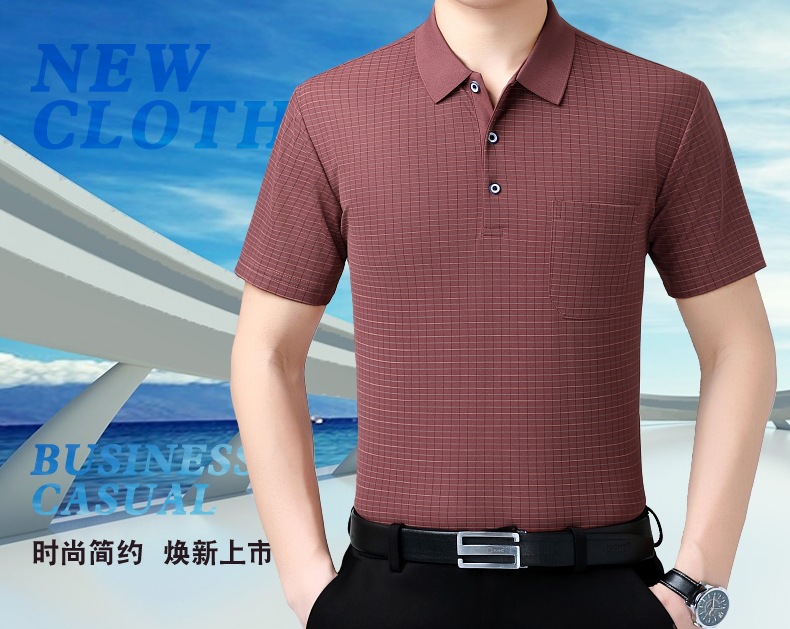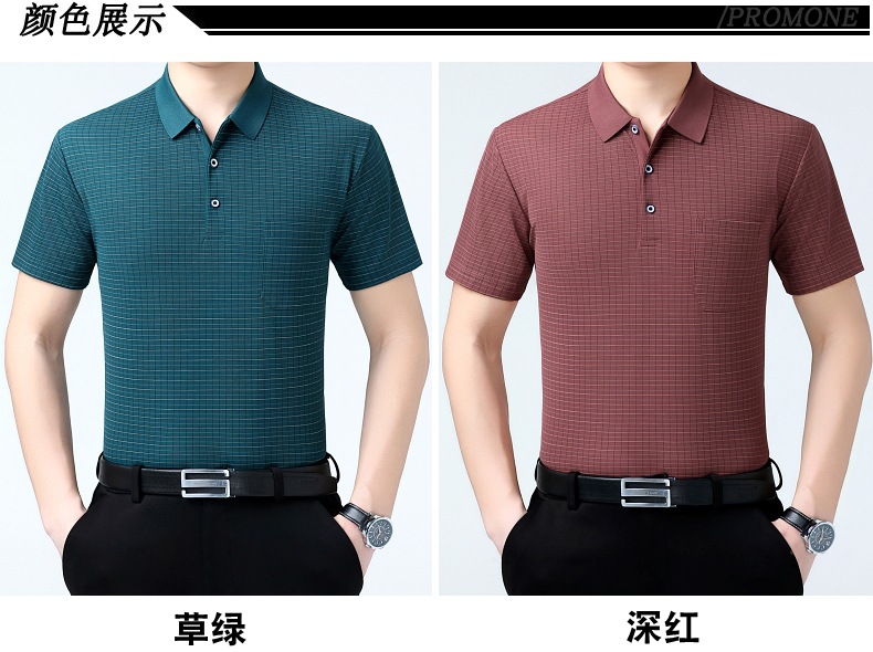 하이 엔드 브랜드 여름 새로운 통기성 멀 베리 실크 남성 중년 반팔 탑 비즈니스 캐주얼 티셔츠 폴로 셔츠