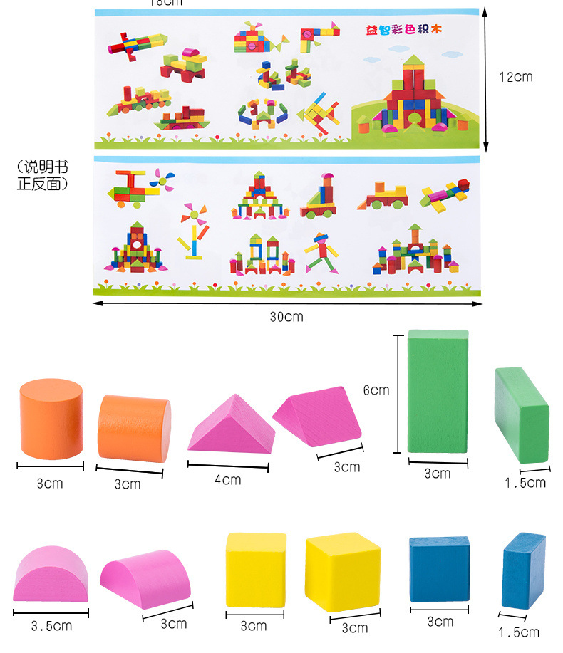 유아용 나무 색상 원목 블록 장난감 대형 조립형 1학년 기하학 도형 교구