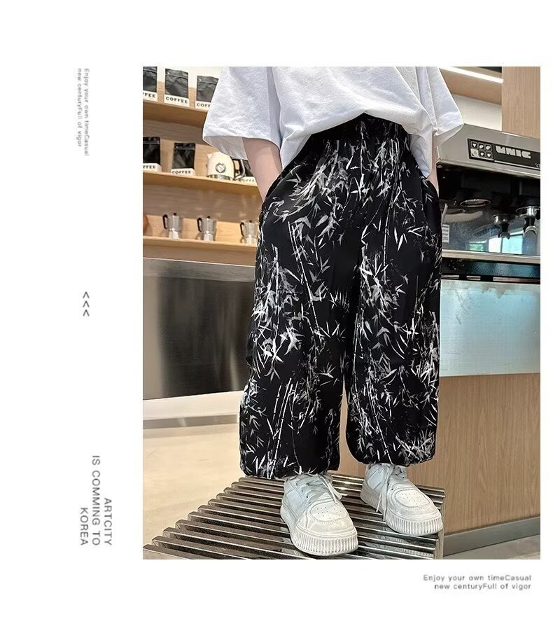 어린이 모기 방지 바지 소년 여름 얇은 2025 새로운 새로운 중국 여름 느슨한 바지 캐주얼 아이스 실크 바지