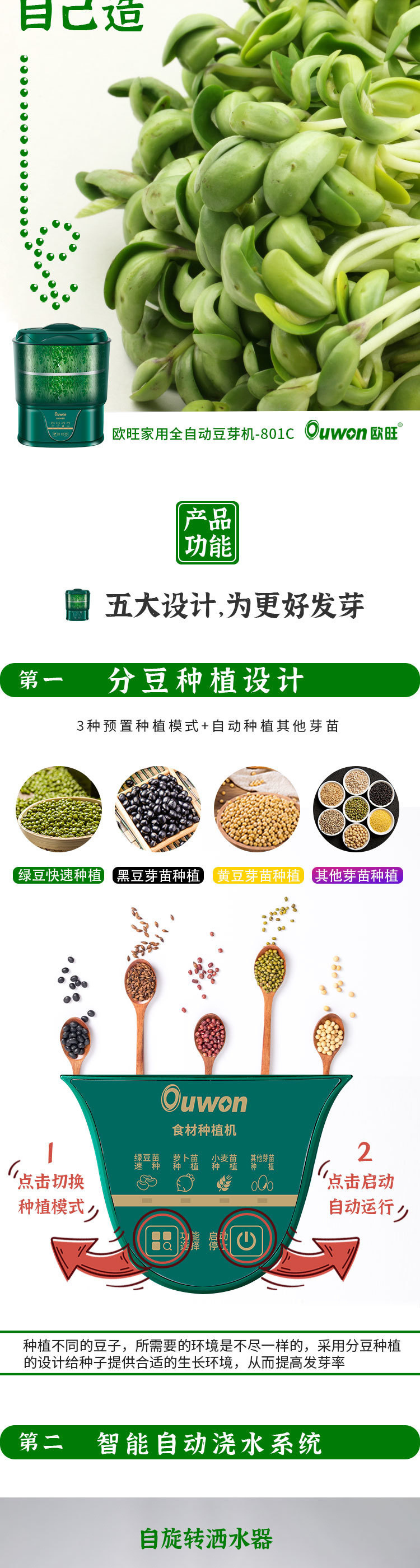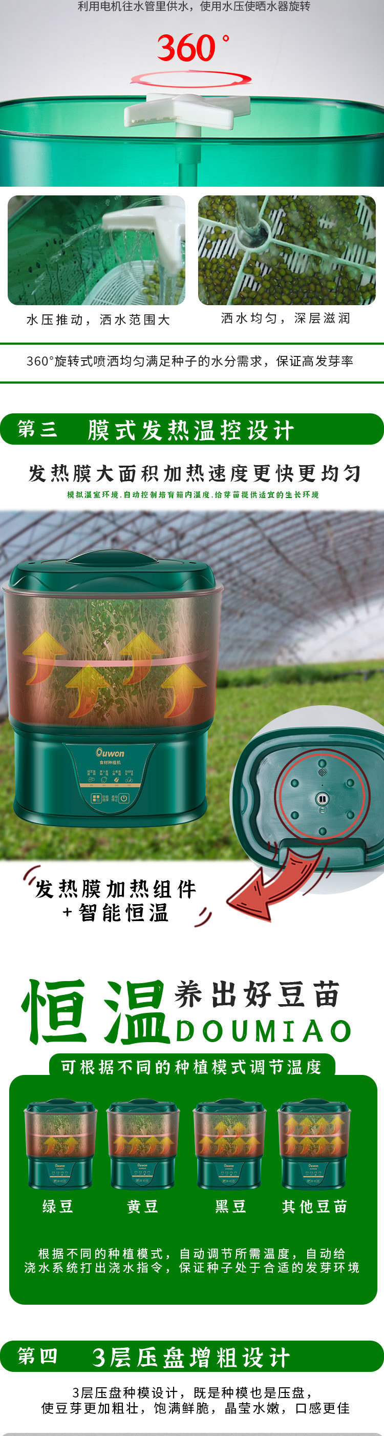 Ouwang 다기능 콩나물 기계 자동 가정용 지능형 3 층 생 콩나물 땅콩 도구 유물 대용량
