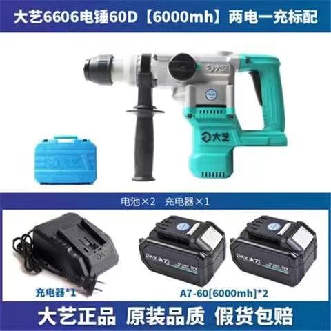 Danyi Brushless 충전식 전기 망치 6606 중장비 이중 목적 콘크리트 천공 벽 구멍 고출력 리튬 스퀘어 핸들 4 전기 곡괭이