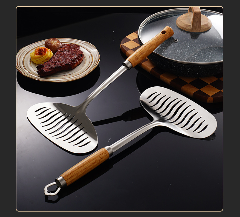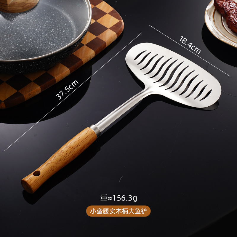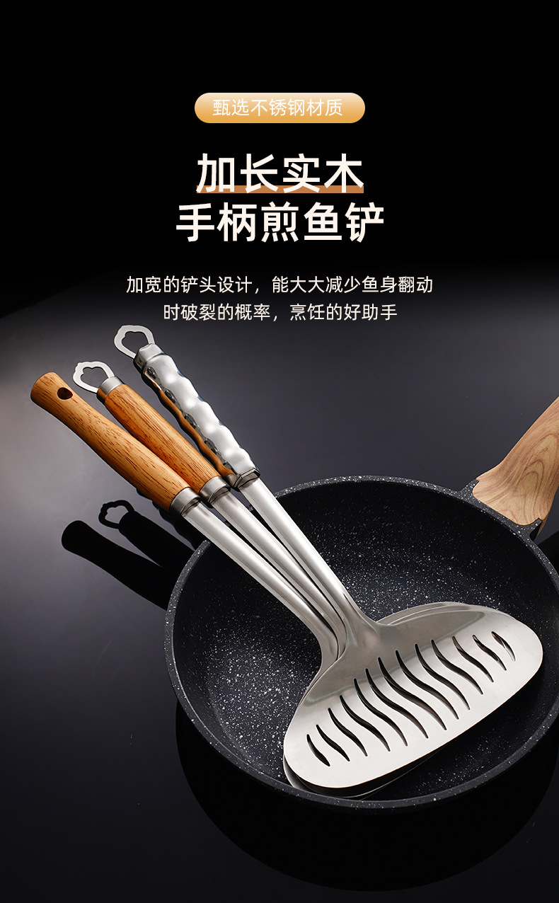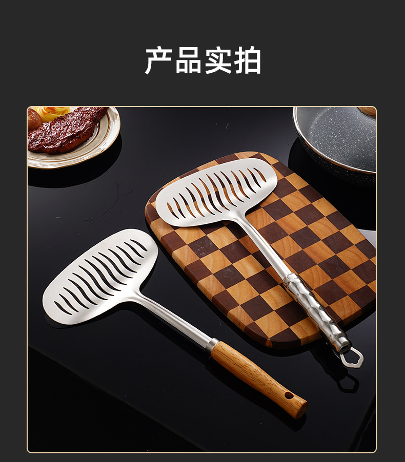 나무 손잡이 스테인리스 생선 튀긴 삽 튀긴 스테이크 튀김 가정용 다기능 주방 팬케이크 도구 플립 생선 튀김