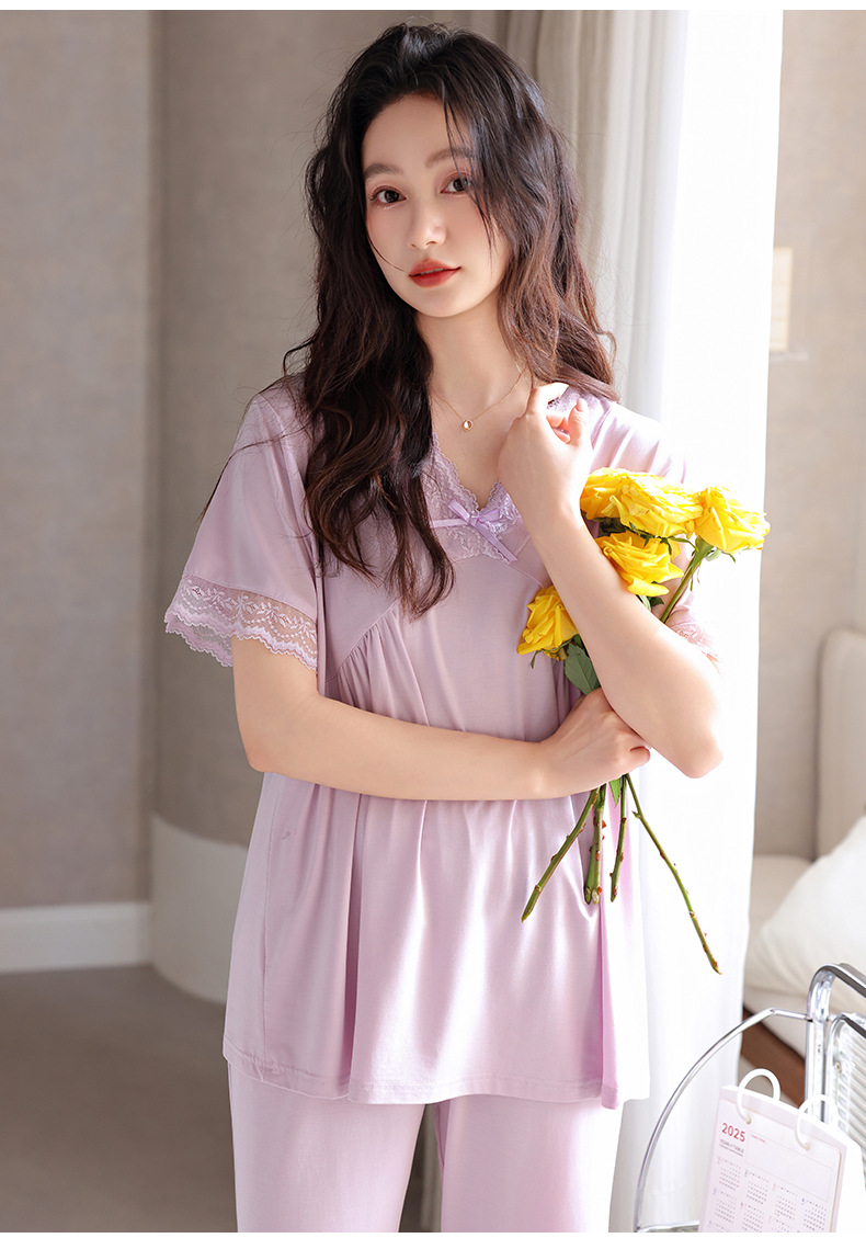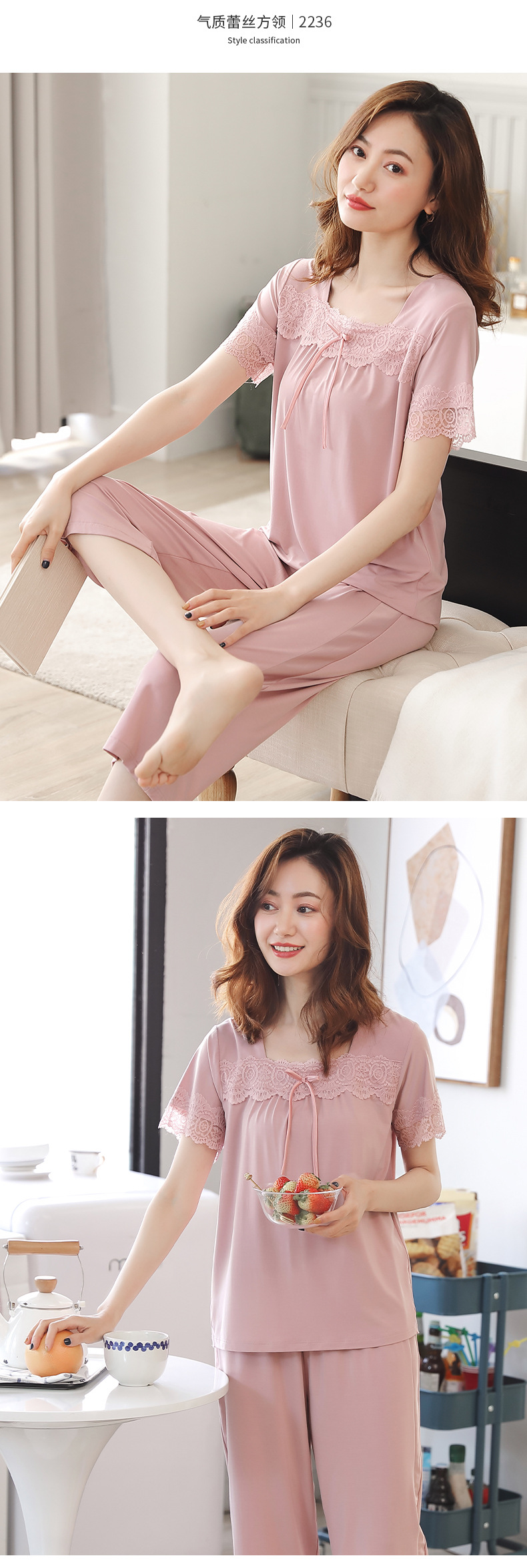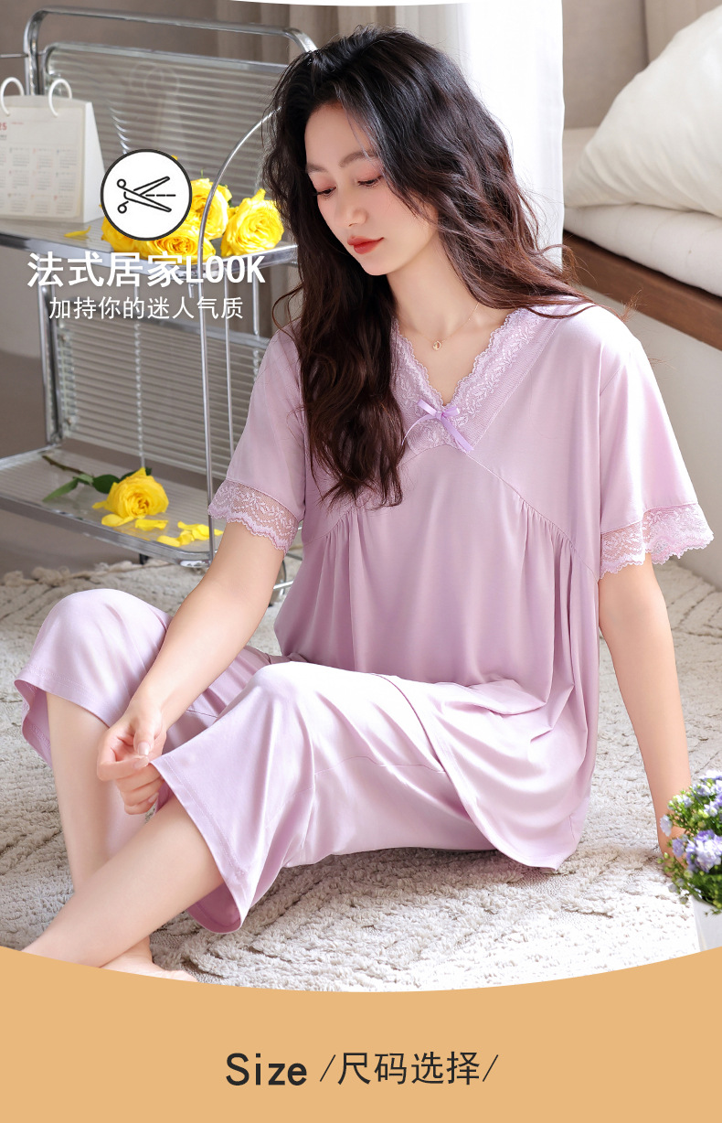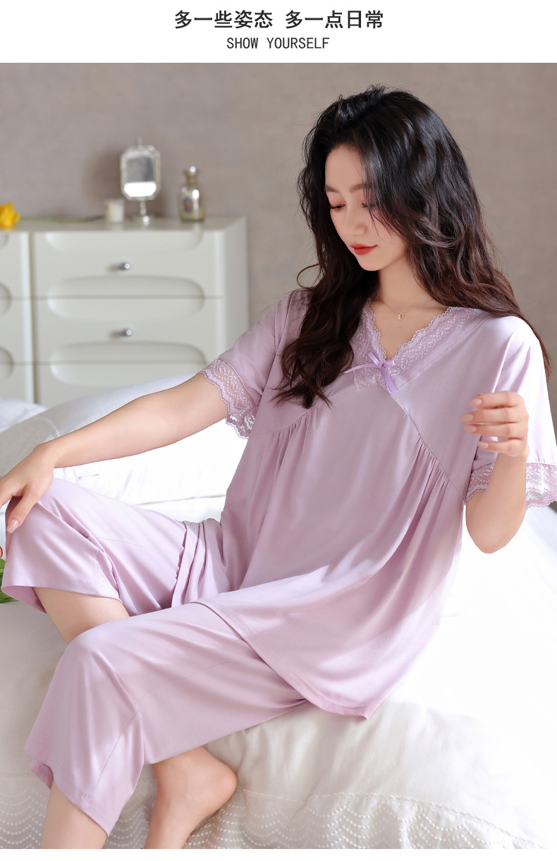 잠옷 여성 여름 모달 반팔 자른 바지 여성 여름 2025 신식 중년 어머니 집 옷스토어 가기