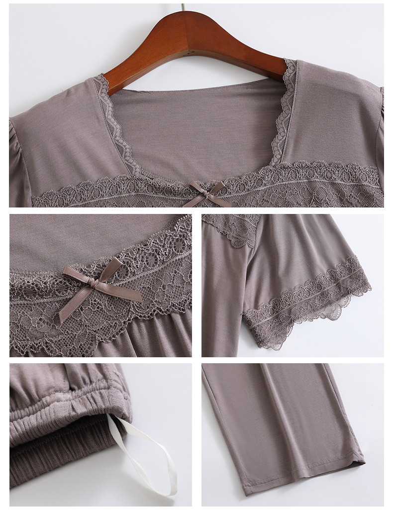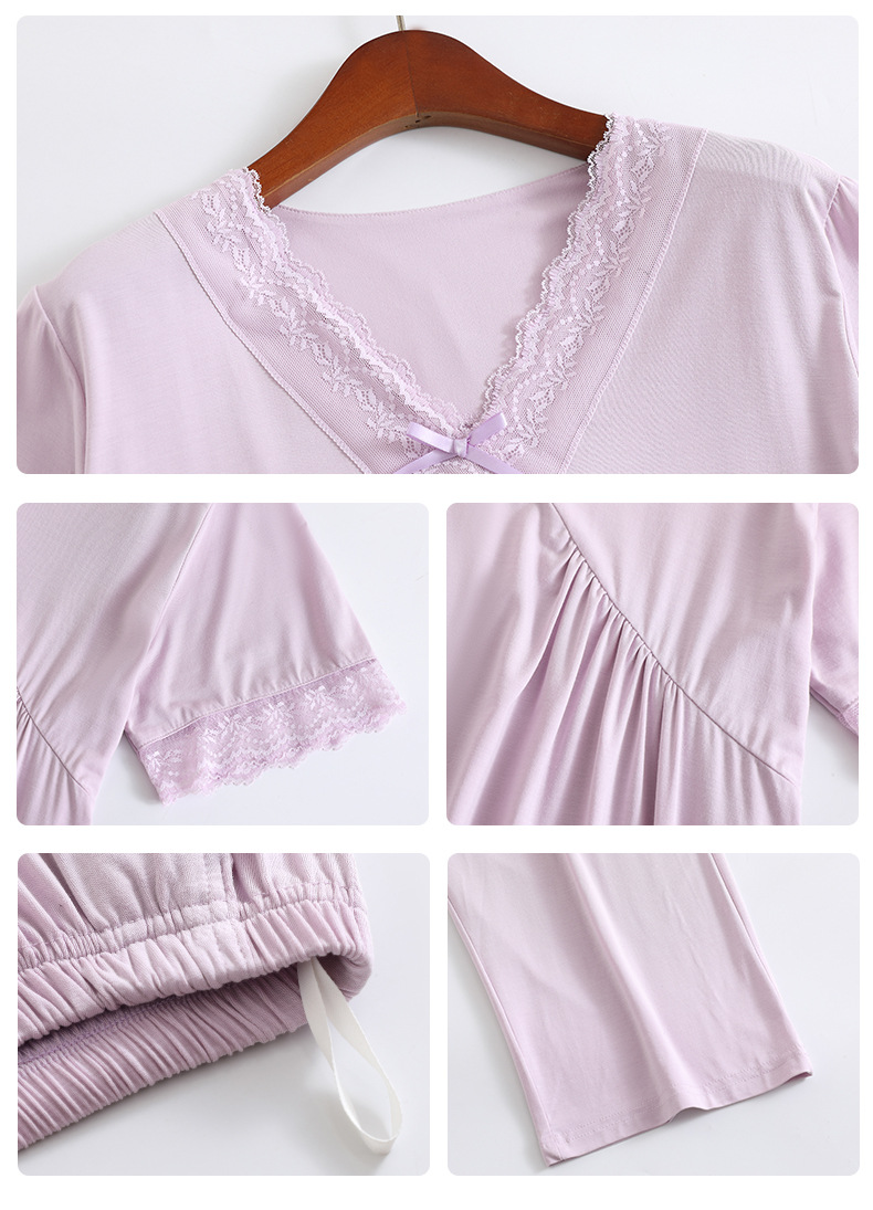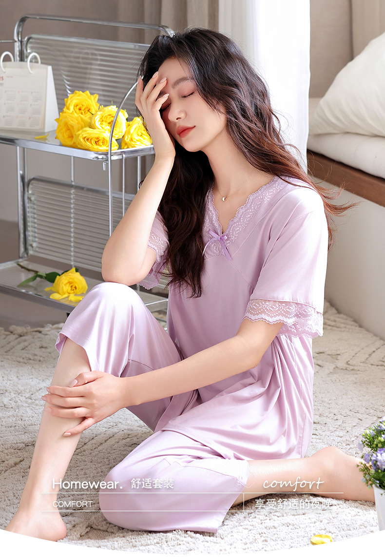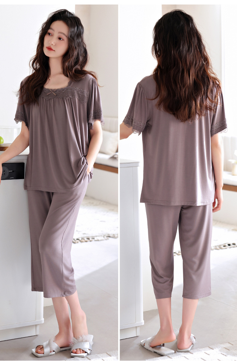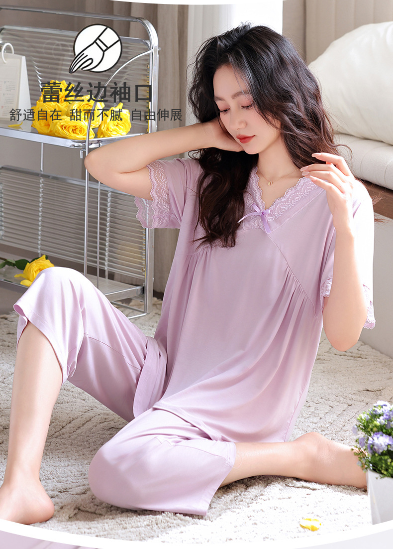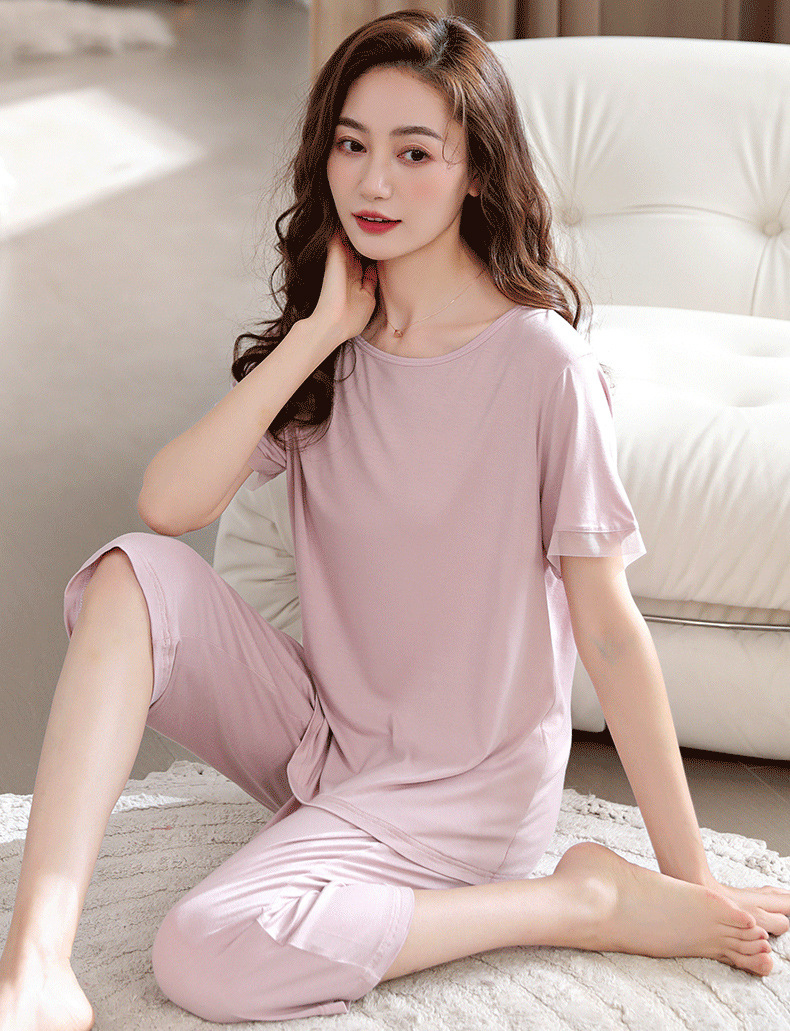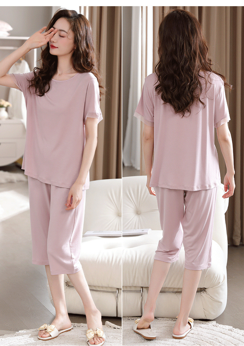 잠옷 여성 여름 모달 반팔 자른 바지 여성 여름 2025 신식 중년 어머니 집 옷