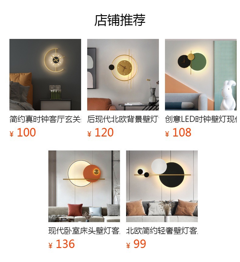 현대 미니멀리스트 침실 소파 배경 램프 북유럽 어린이 멀리 입구 패션 시계 장식 벽 램프스토어 가기