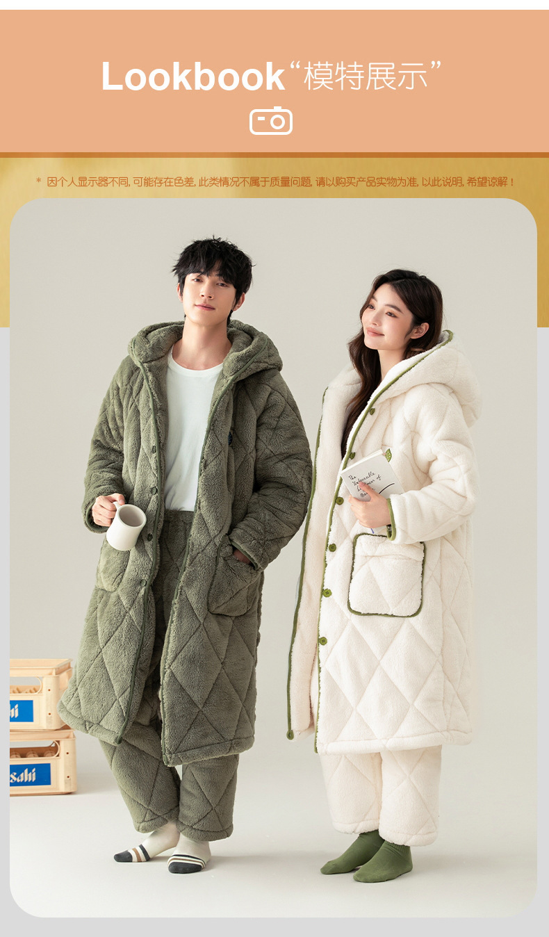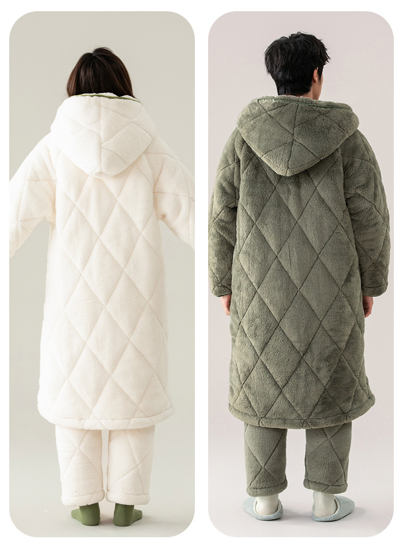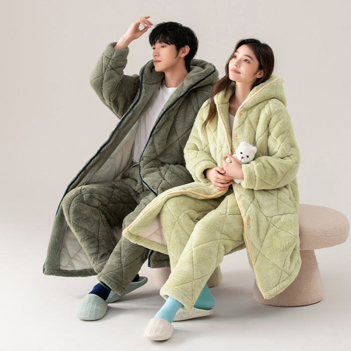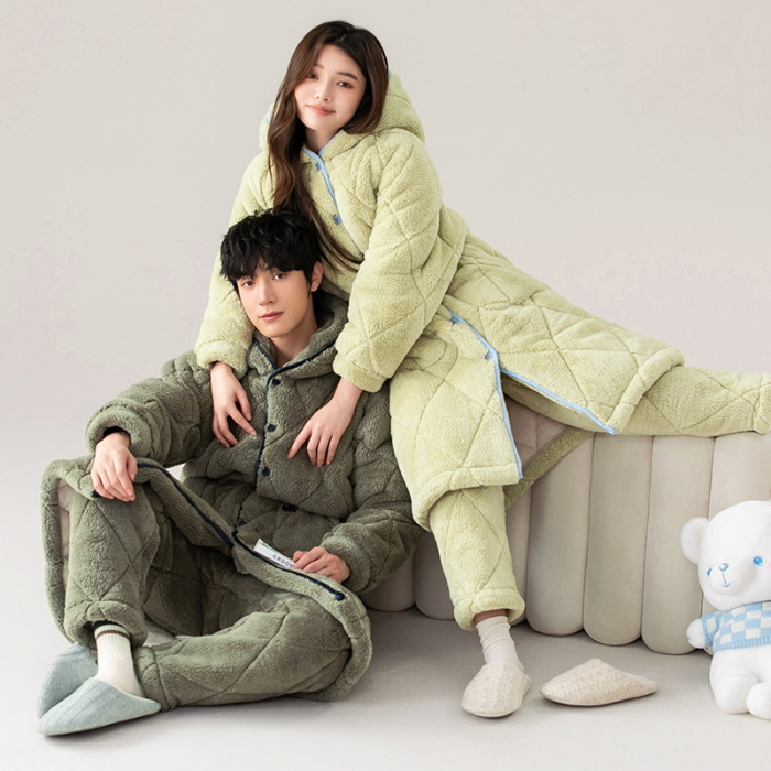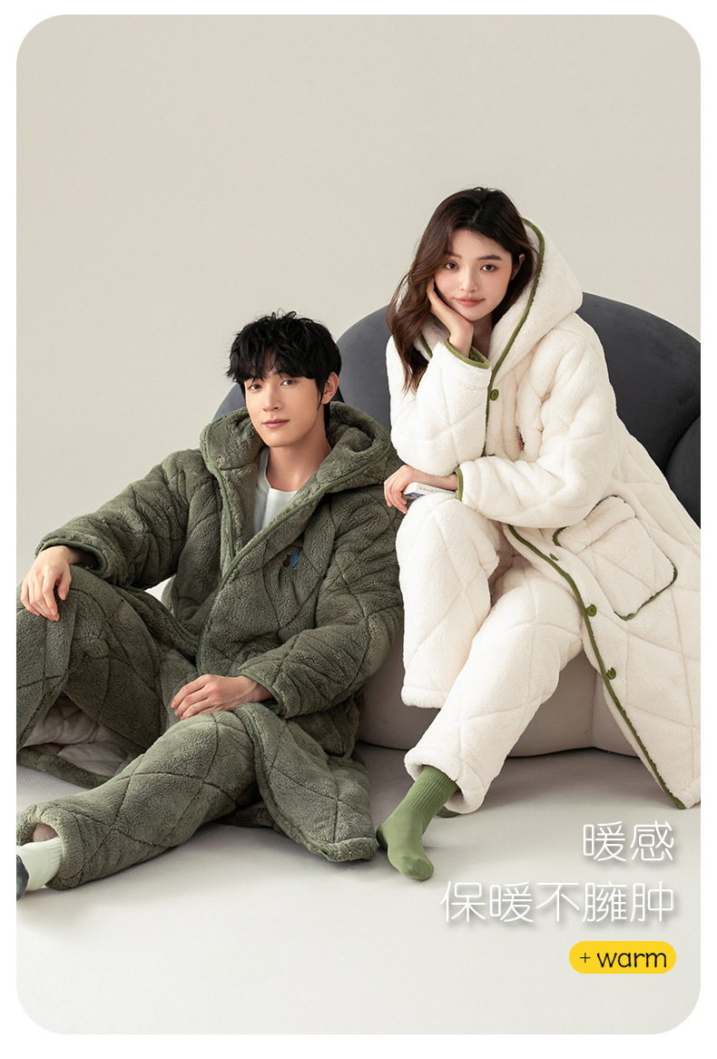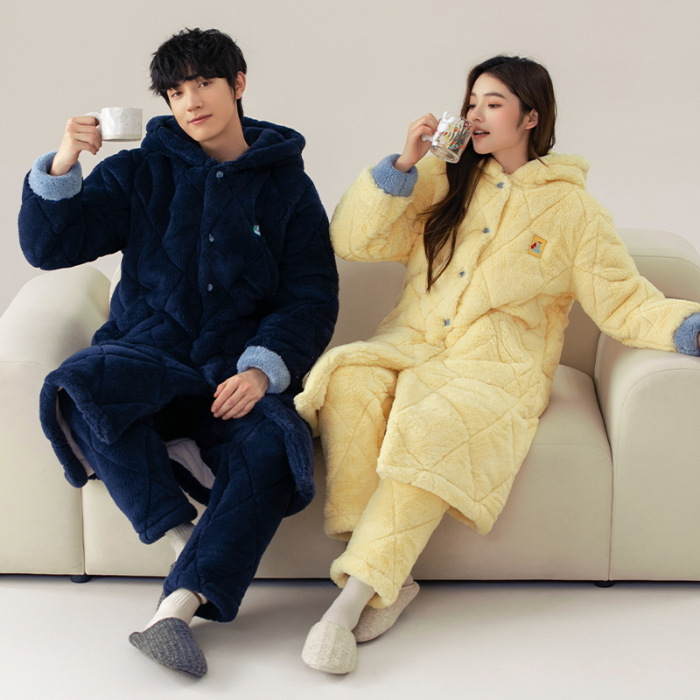 겨울 잠옷 여자 3 층 겨울면 패딩 커플 따뜻한 기모 두꺼운 새 후드 남성용 홈 의류 로브 세트