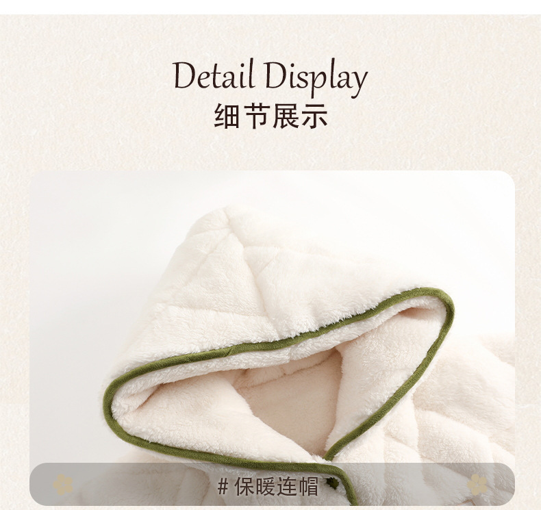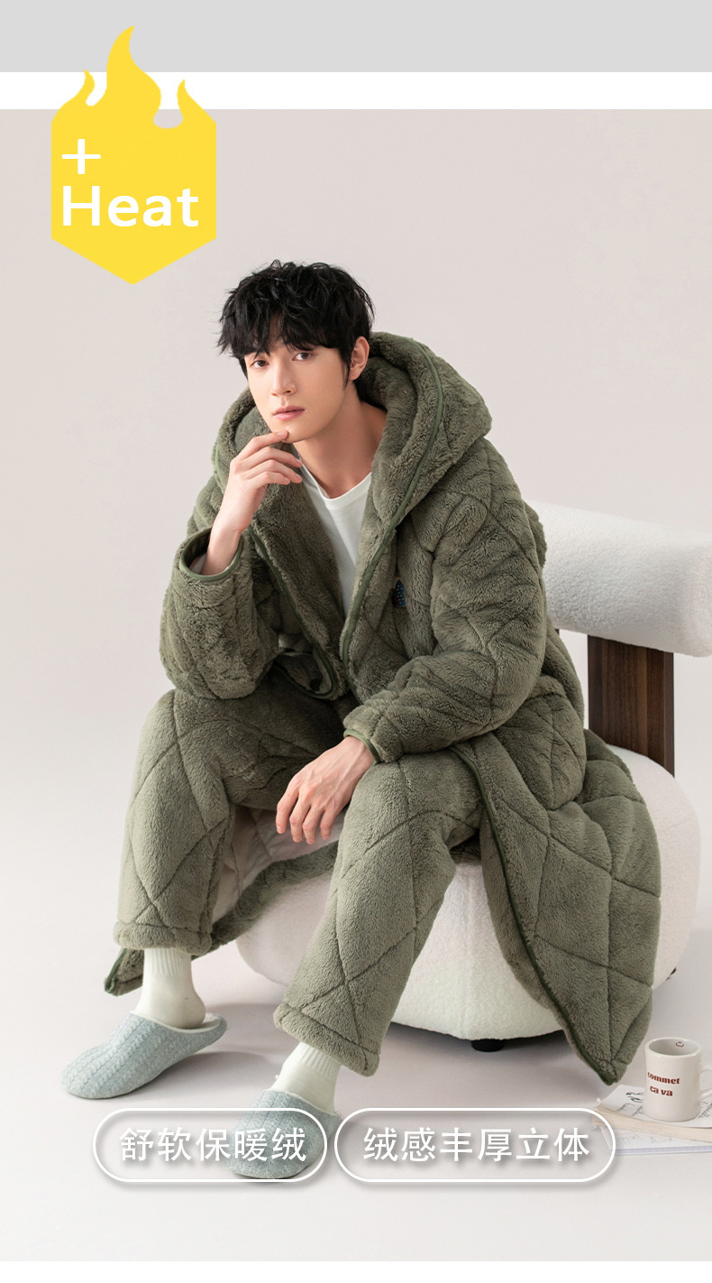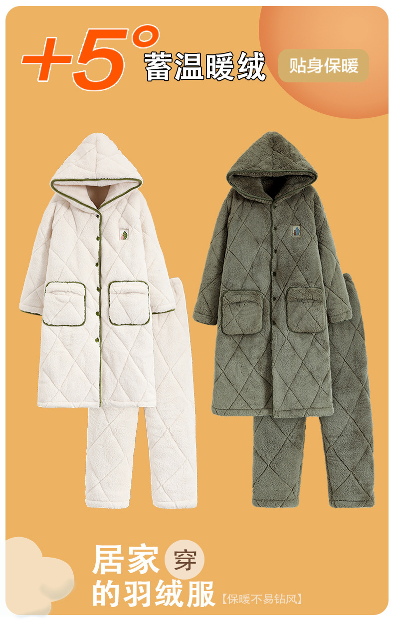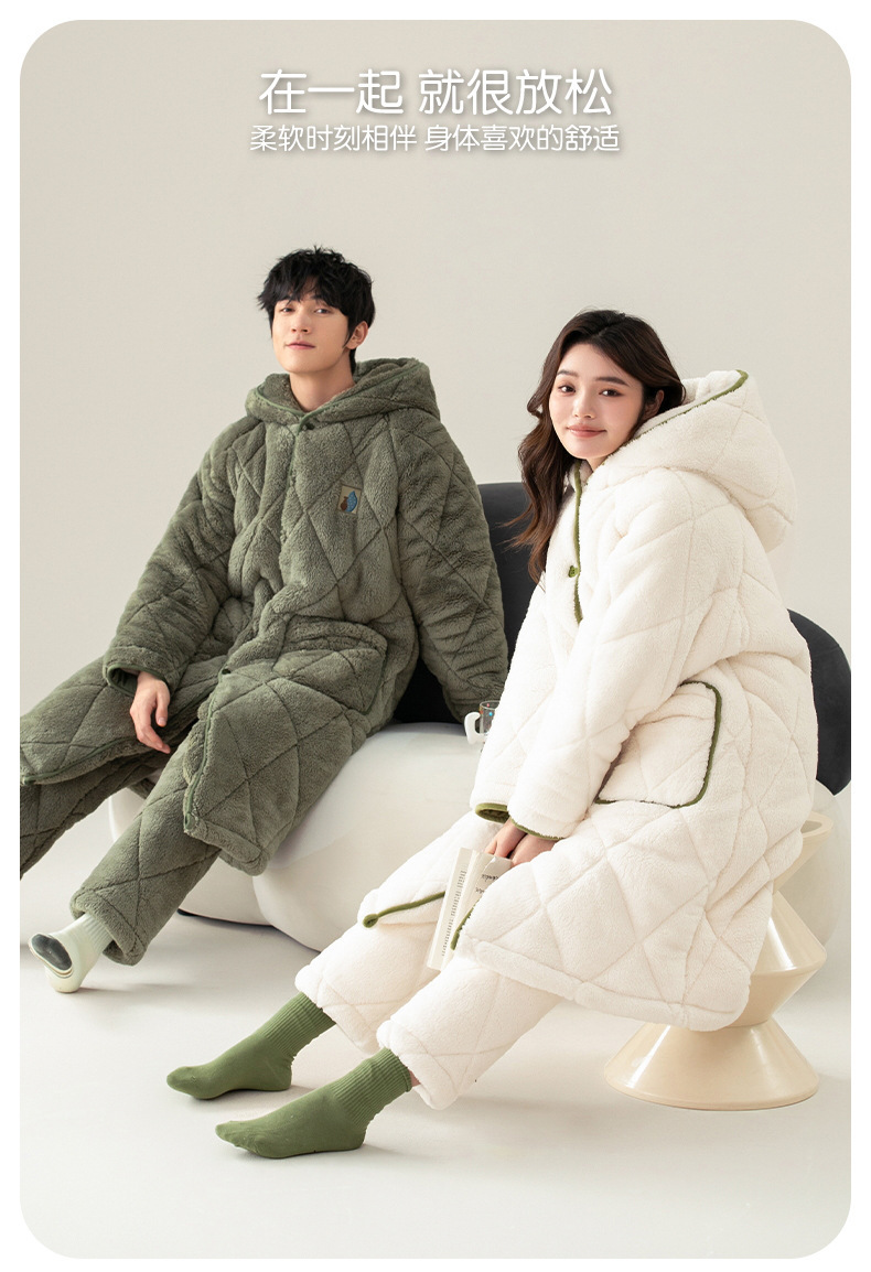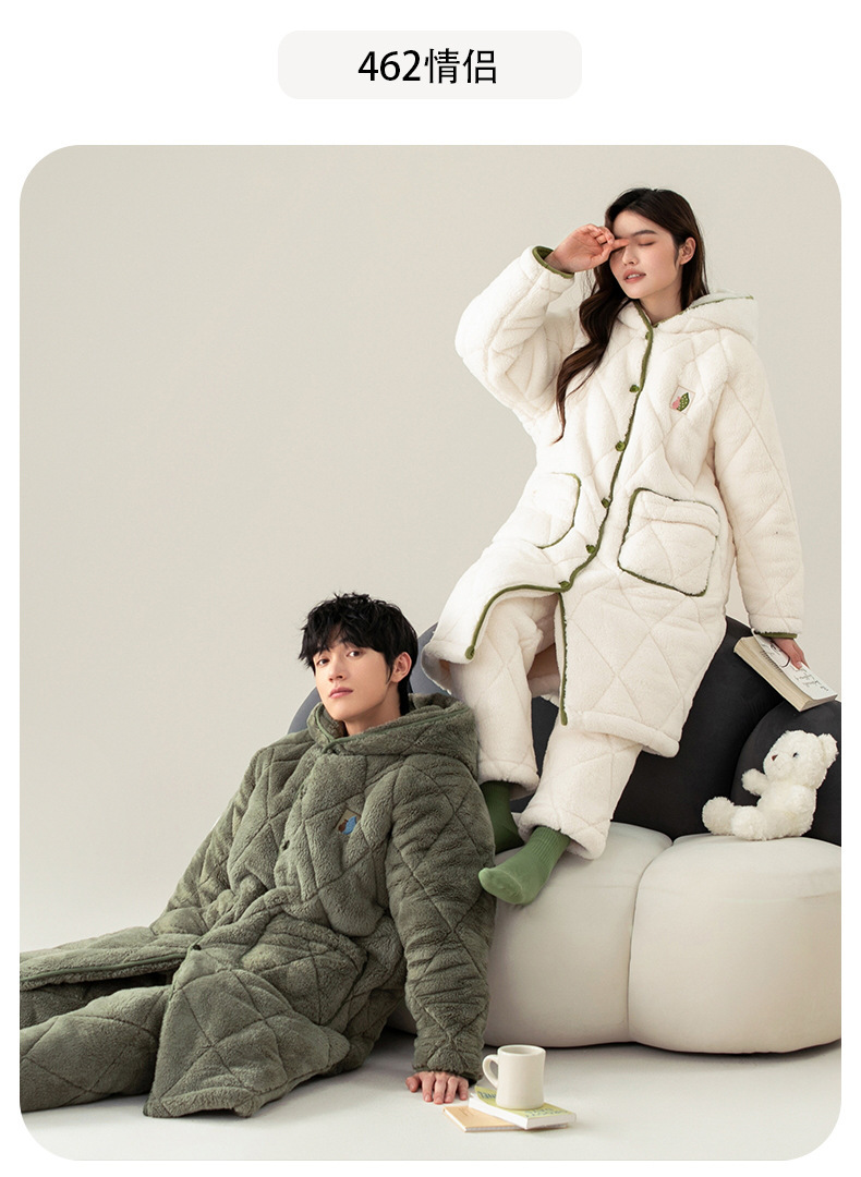 겨울 잠옷 여자 3 층 겨울면 패딩 커플 따뜻한 기모 두꺼운 새 후드 남성용 홈 의류 로브 세트