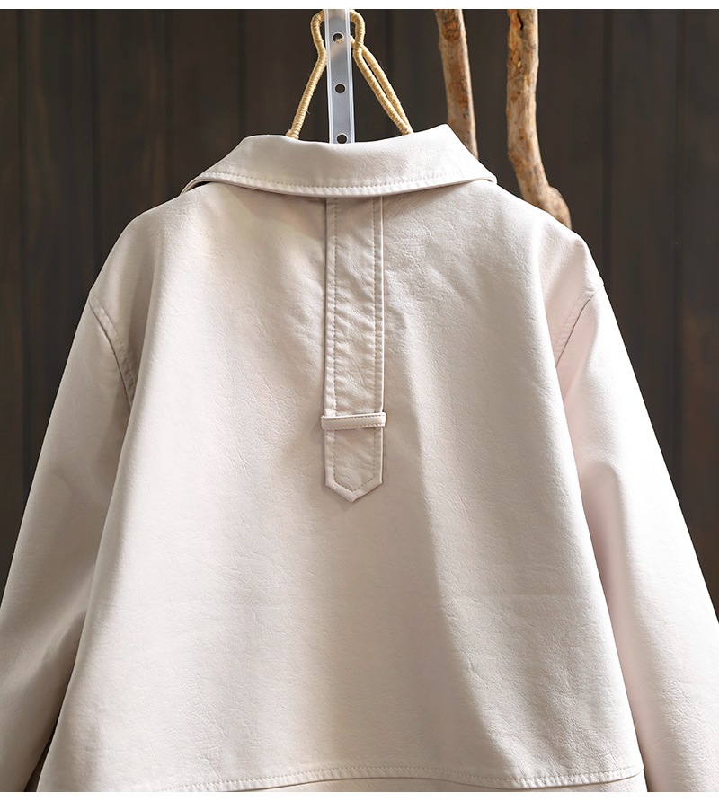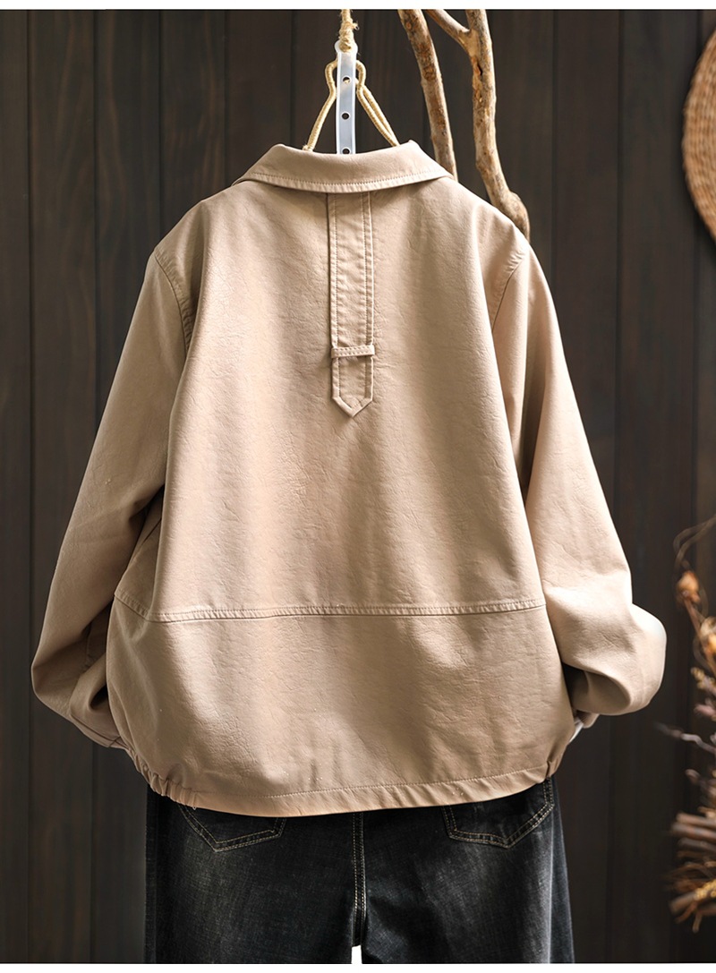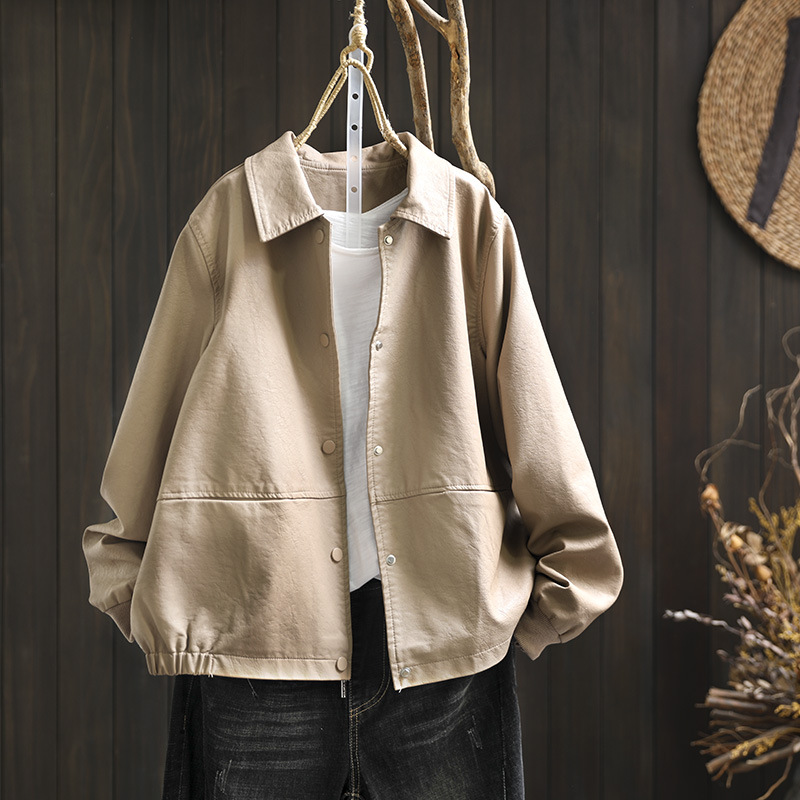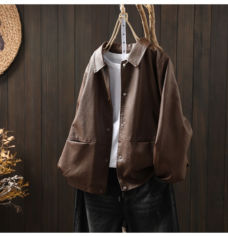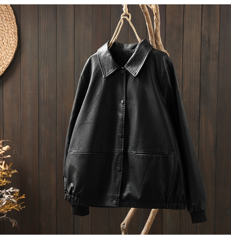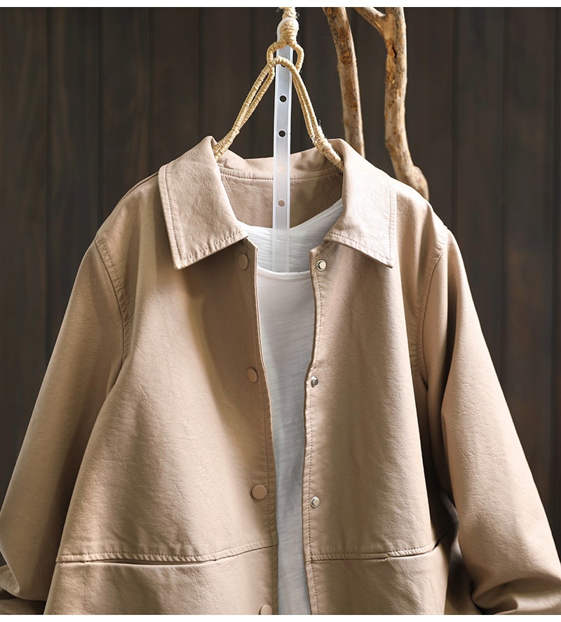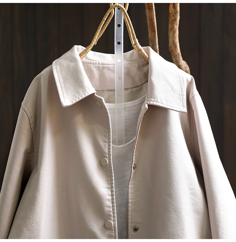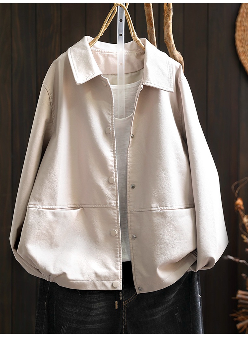 단색 간단한 PU 가죽 코트 여성의 2025 봄 새로운 옷깃 느슨한 캐주얼 우아한 재킷 카디건 탑스토어 가기