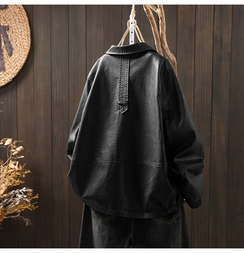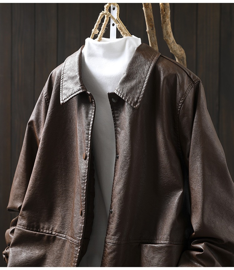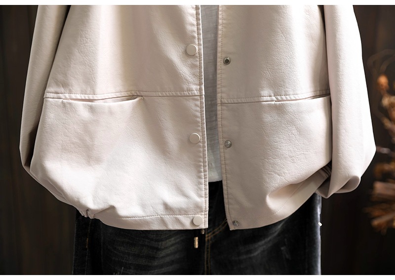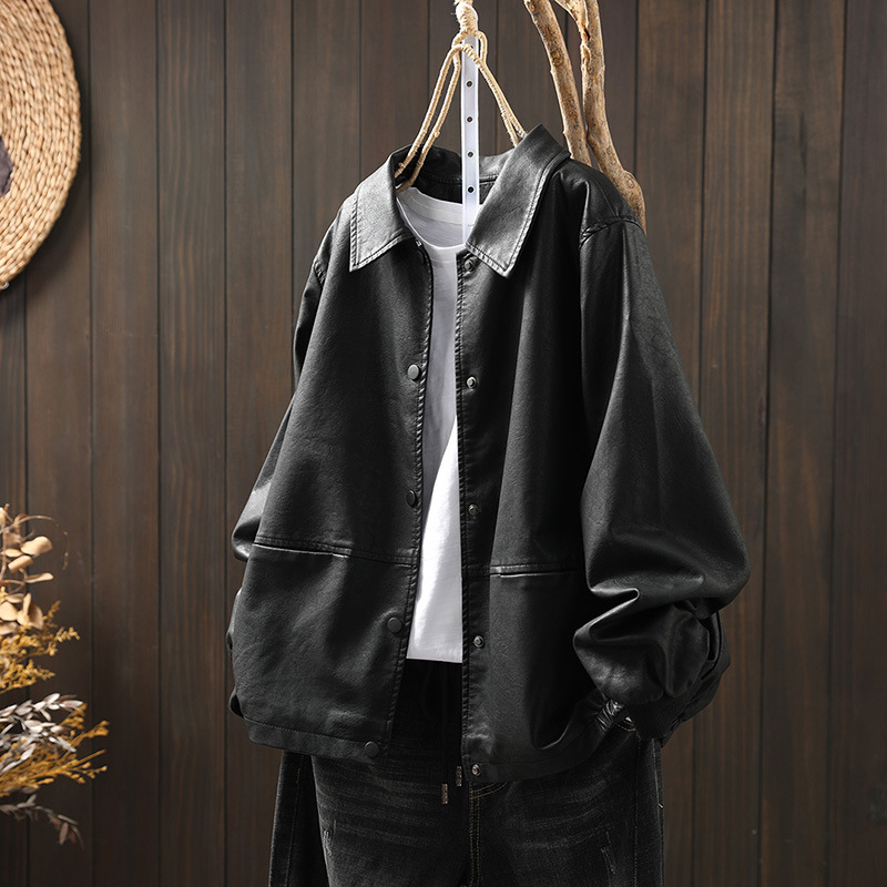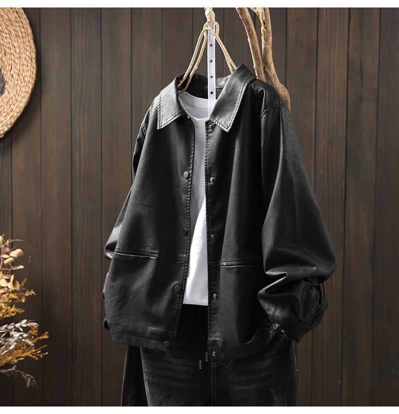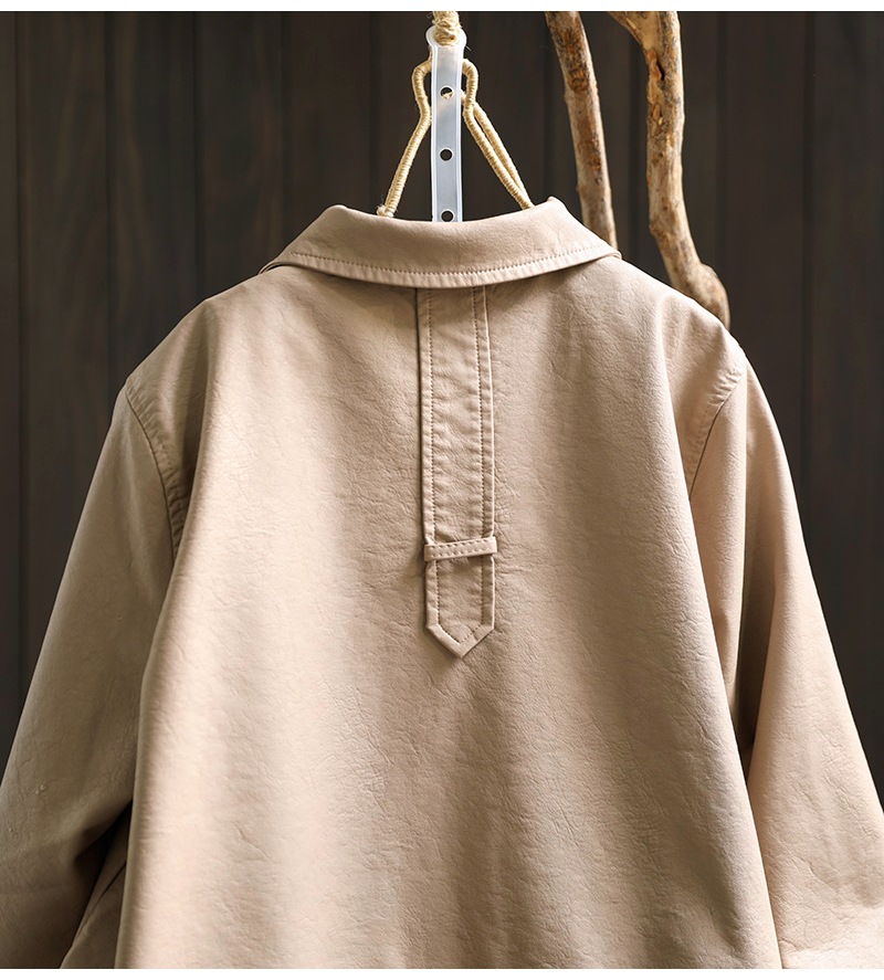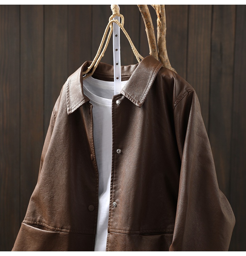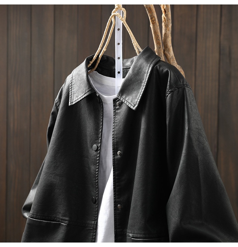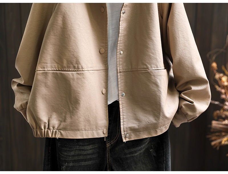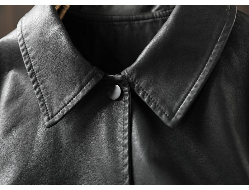 단색 간단한 PU 가죽 코트 여성의 2025 봄 새로운 옷깃 느슨한 캐주얼 우아한 재킷 카디건 탑스토어 가기