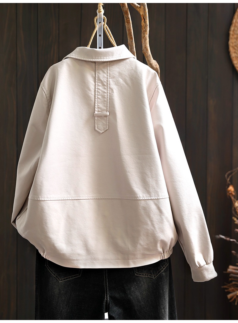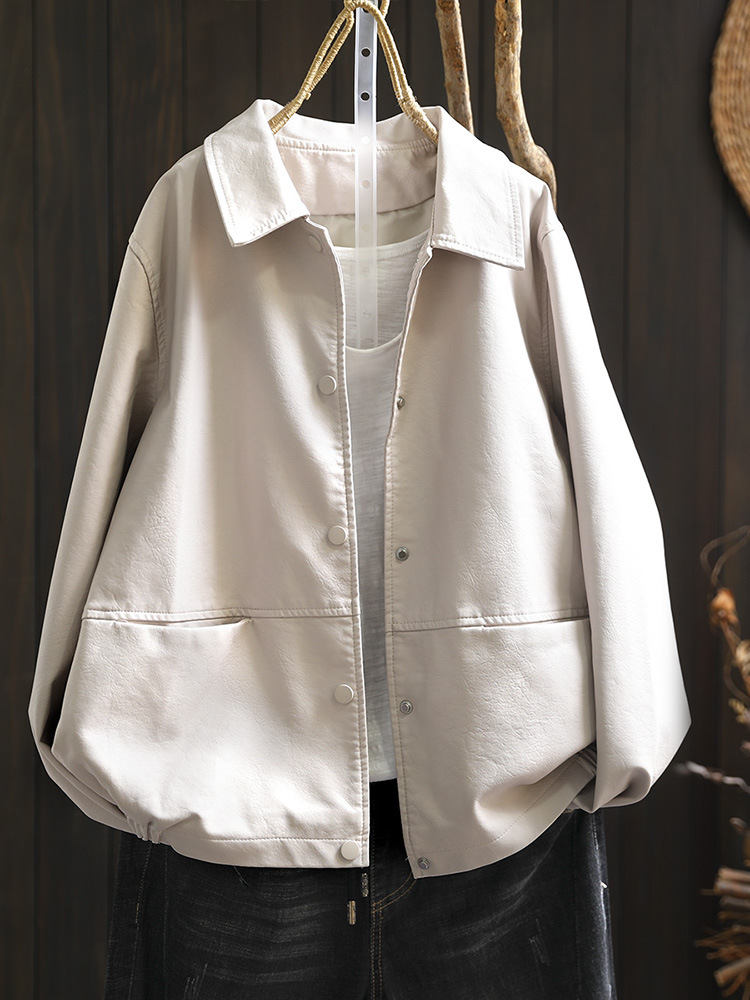 단색 간단한 PU 가죽 코트 여성의 2025 봄 새로운 옷깃 느슨한 캐주얼 우아한 재킷 카디건 탑