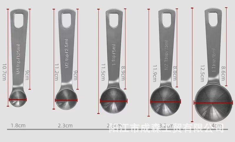 430 스테인레스 스틸 측정 스푼 5 피스 세트 주방 커피 분유 조미료 측정 스푼 세트 측정 스케일 스푼 스푼