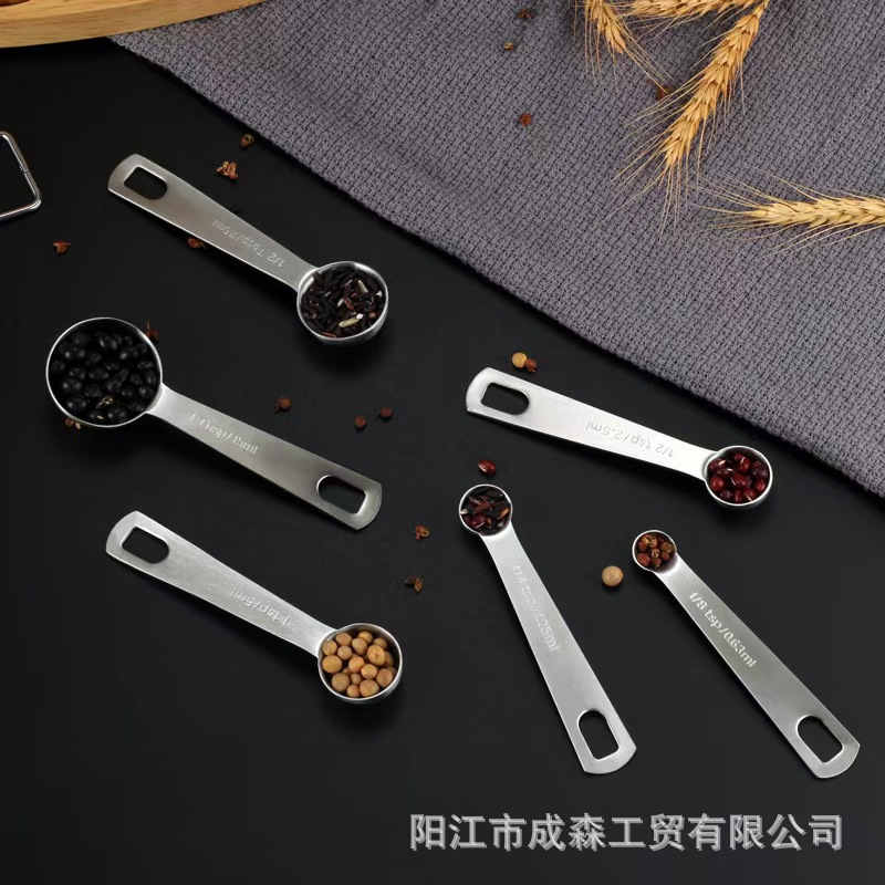 430 스테인레스 스틸 측정 스푼 5 피스 세트 주방 커피 분유 조미료 측정 스푼 세트 측정 스케일 스푼 스푼스토어 가기