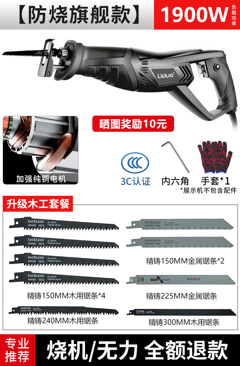 • 모델 [회전/속도 조절/조명] 업그레이드된 표준 패키지 - 무료 정밀 주조 톱날 6개 + 플라스틱