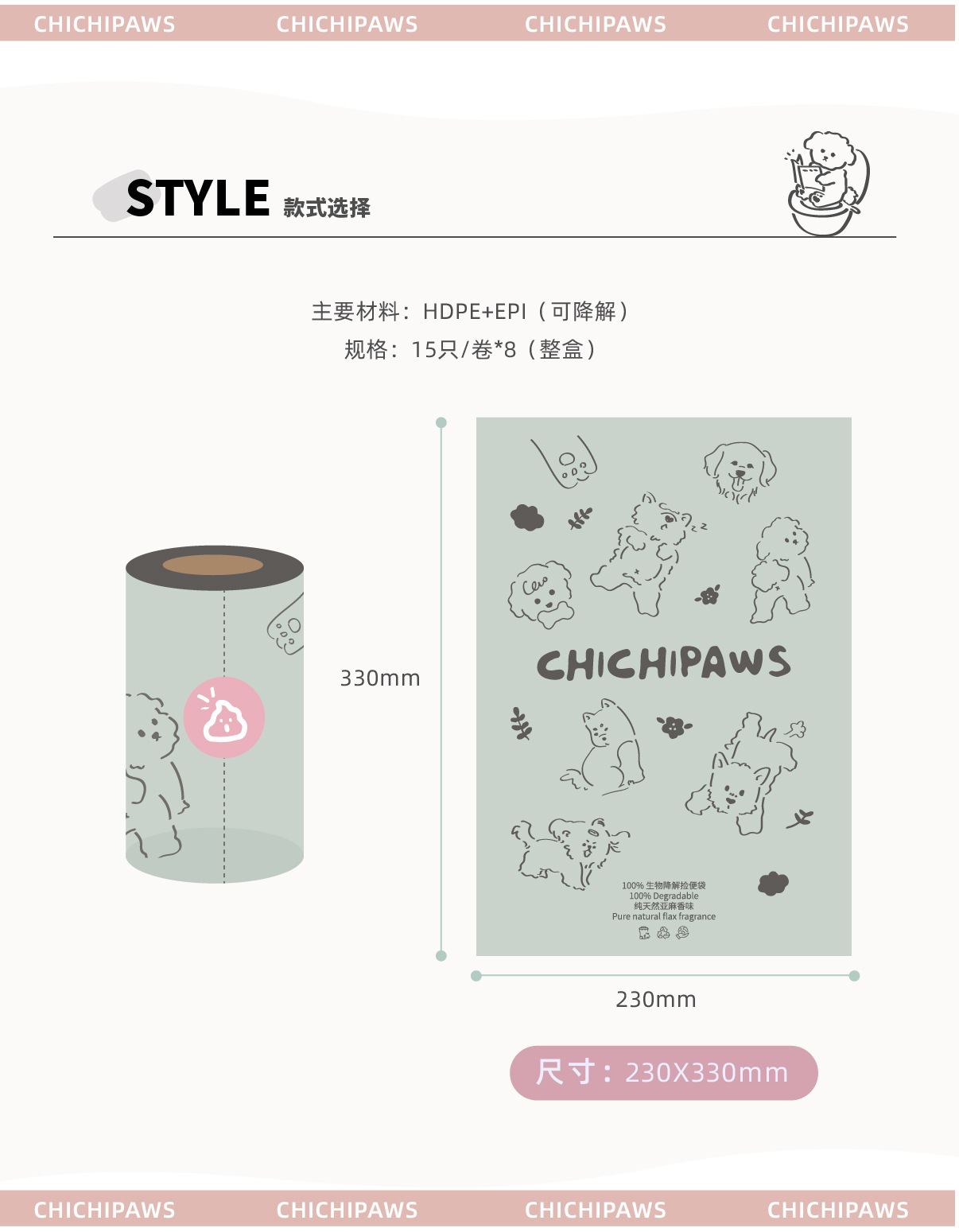치치발 애완 동물 똥 가방 개 똥 가방 고양이 똥 가방 휴대용 개 걷는 분해 가능한 쓰레기 봉투