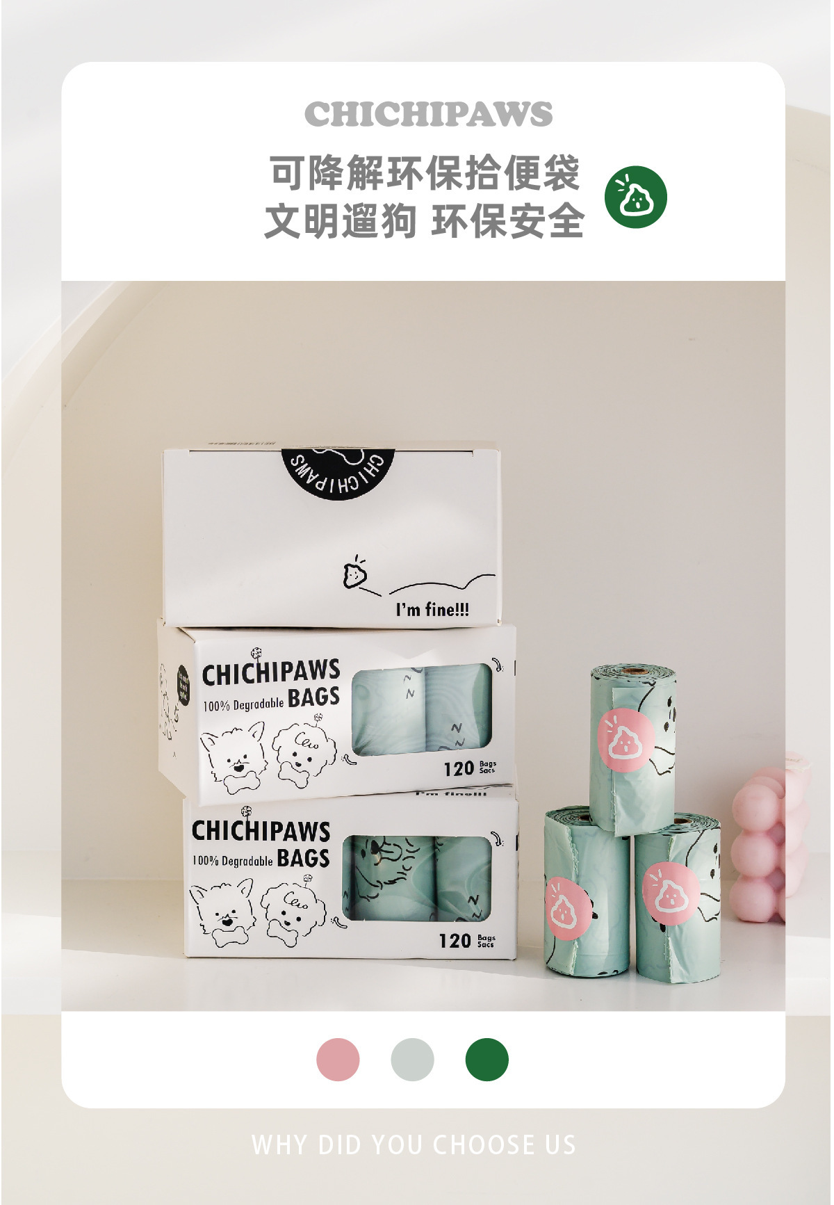 치치발 애완 동물 똥 가방 개 똥 가방 고양이 똥 가방 휴대용 개 걷는 분해 가능한 쓰레기 봉투스토어 가기