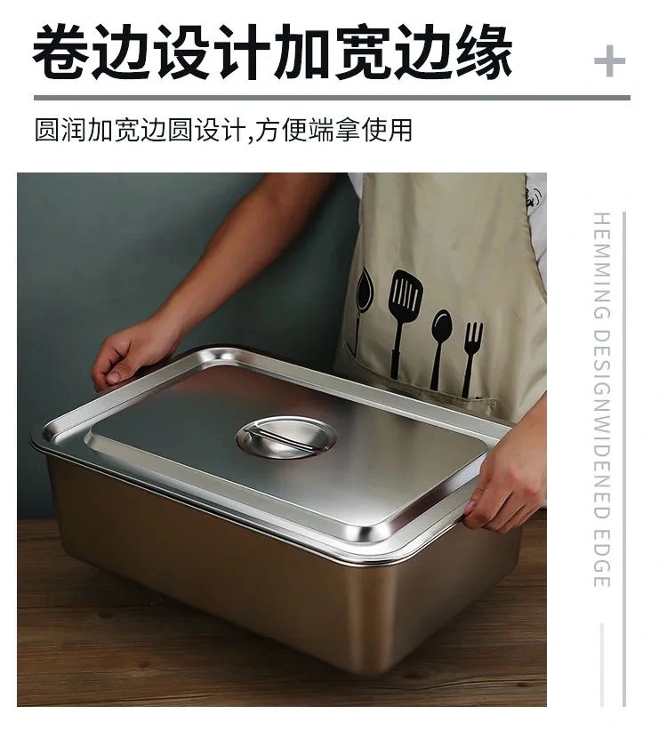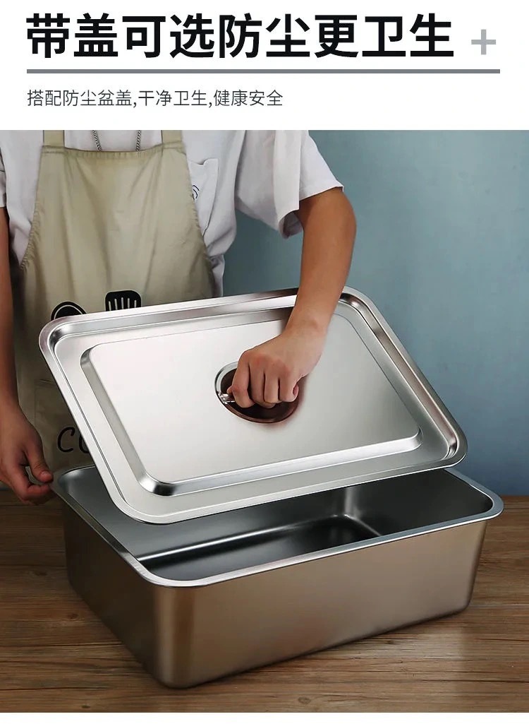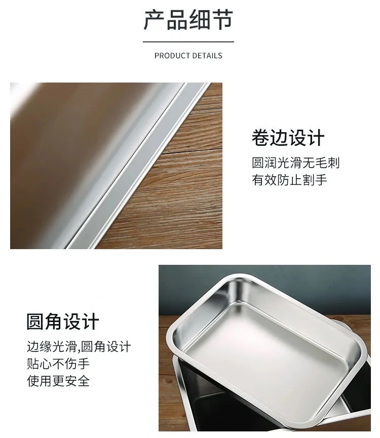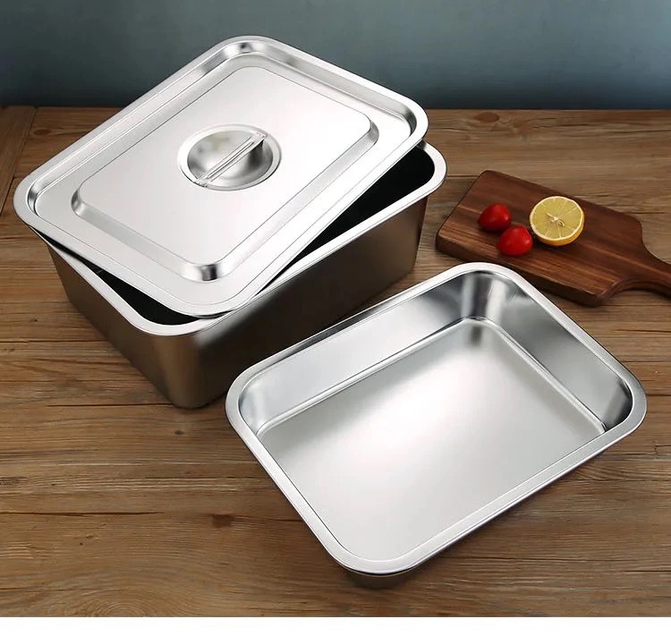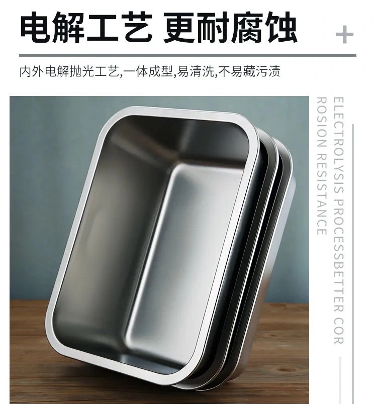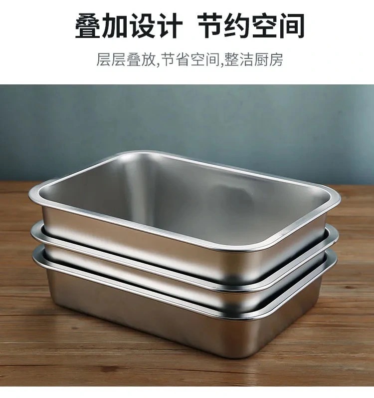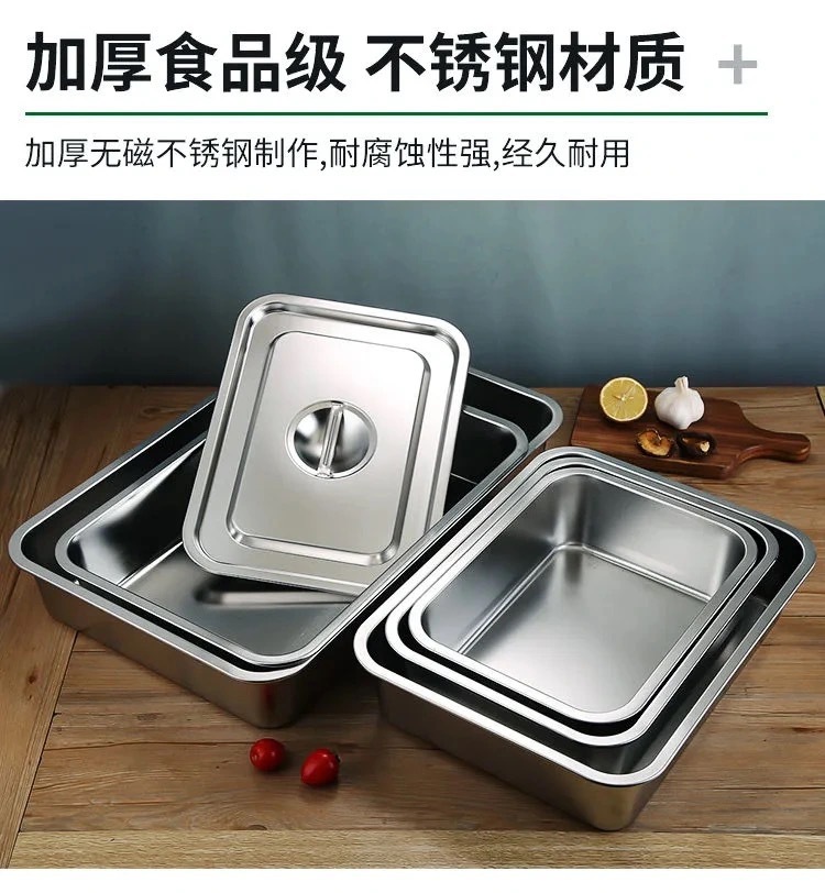 ✅스테인레스 스틸 스퀘어 플레이트 직사각형 트레이 상업용 화이트 스틸 플레이트 상업용 딥 구운 생선 철판 스퀘어 분지 벨트