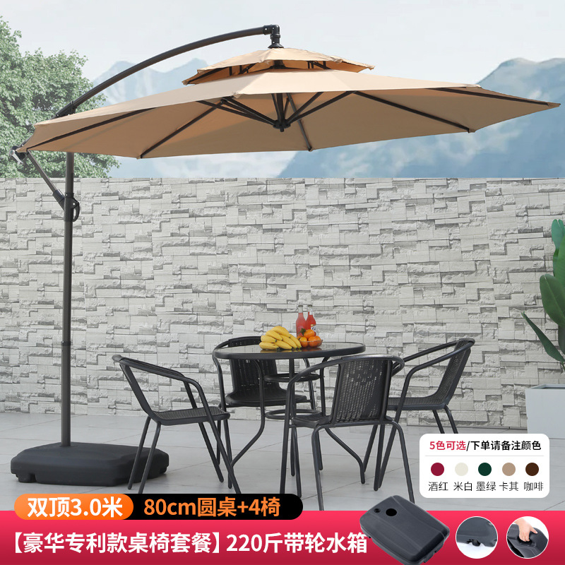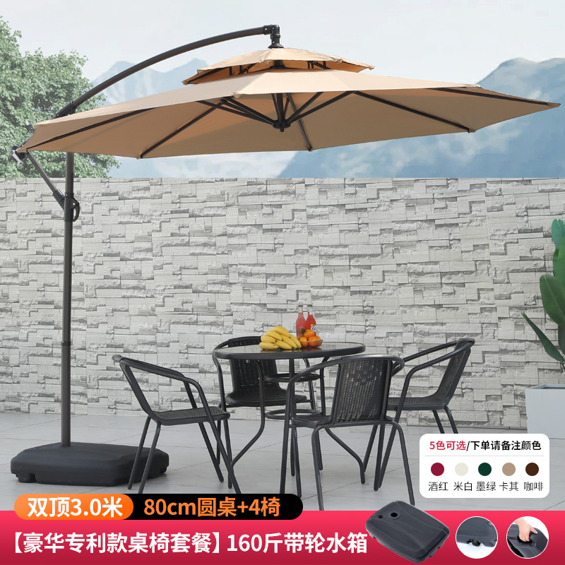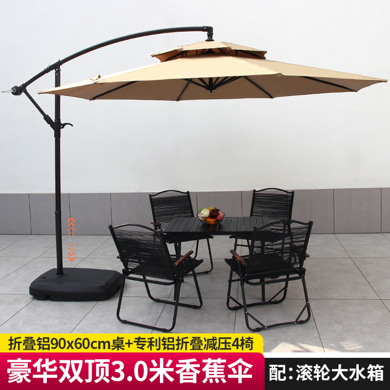 • [럭셔리 특허 테이블과 의자 패키지] 알루미늄 폴 더블탑 3m + 바퀴 달린 물탱크 80kg개 + 80cm 원형 테이블 + 의자 4개