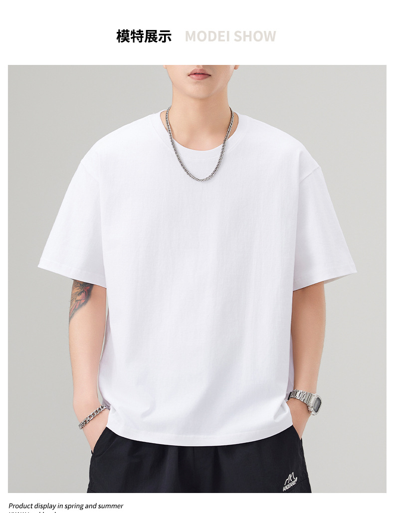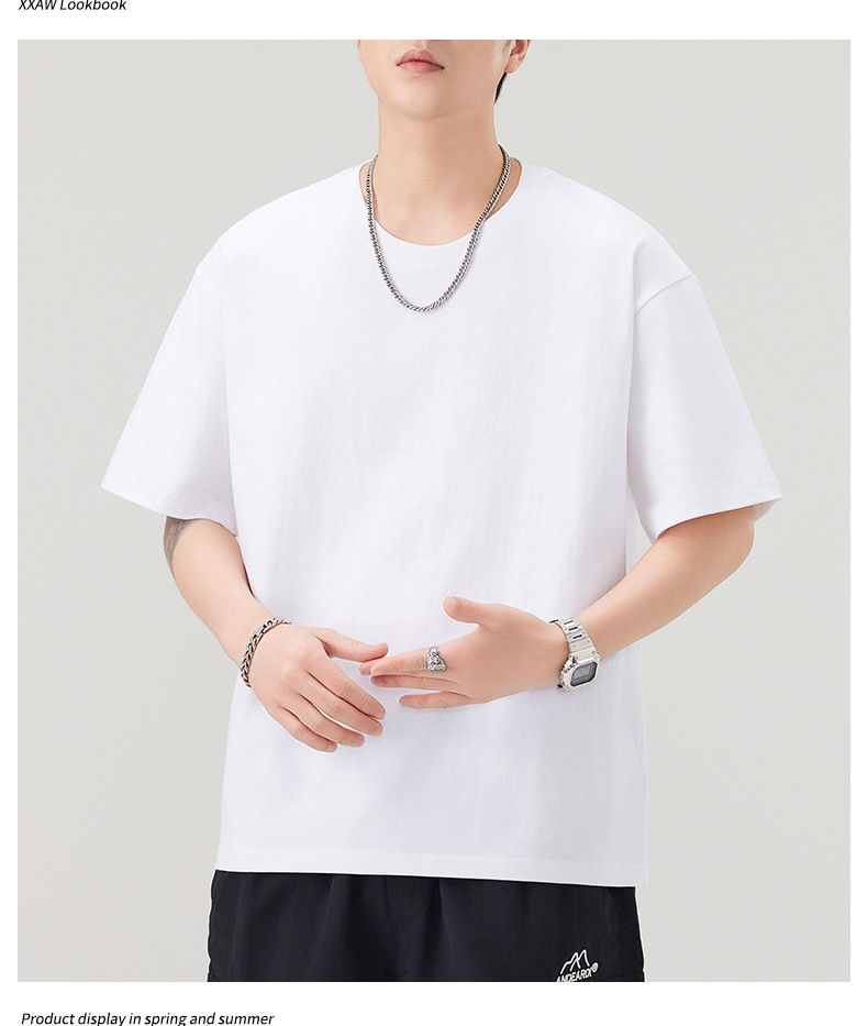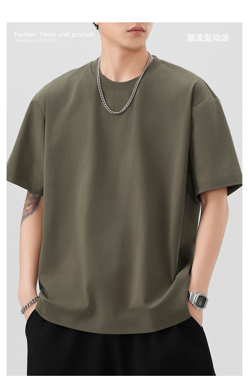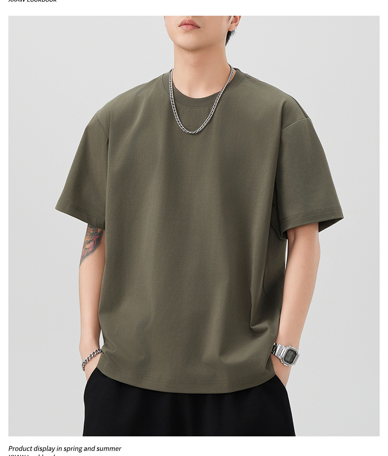 Muqiu 남성복 ∠ 260g 헤비 코튼 반팔 티셔츠 남녀 커플 느슨한 반소매 티셔츠 솔리드 컬러베이스 셔츠스토어 가기