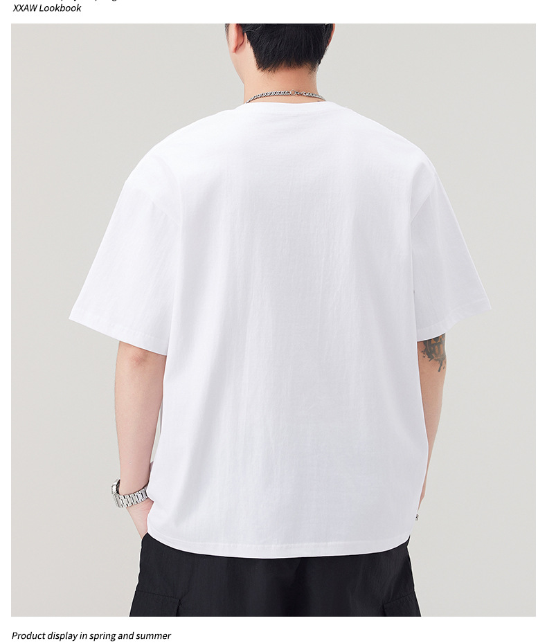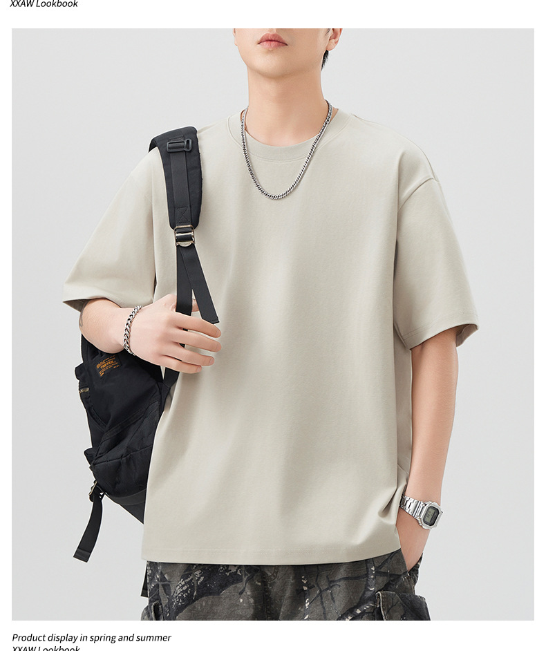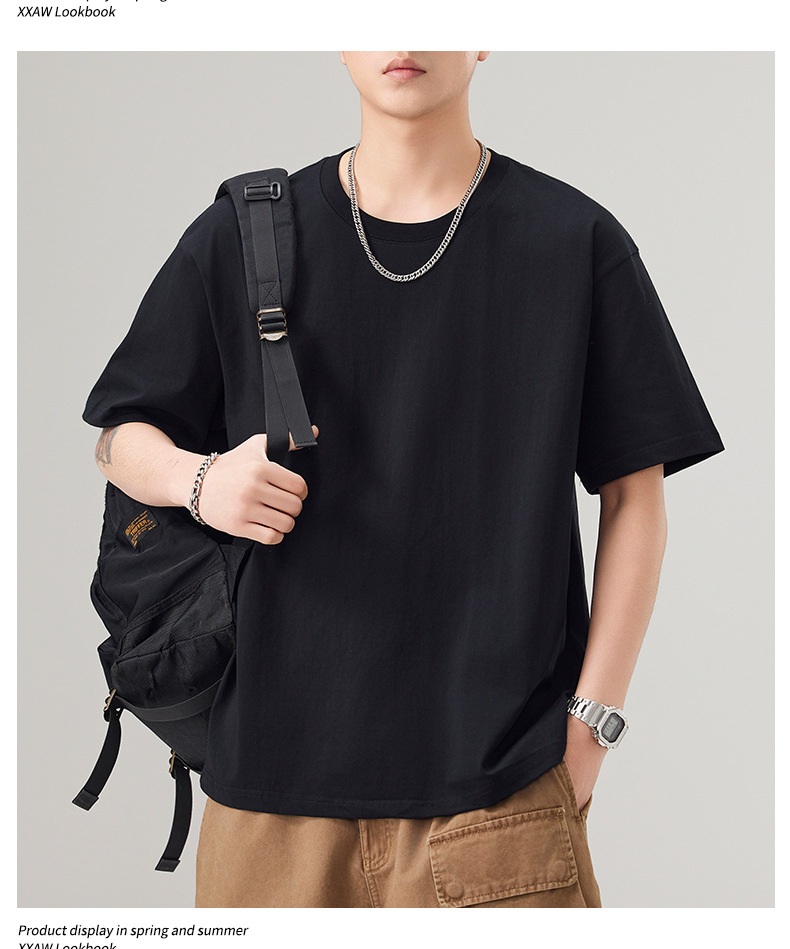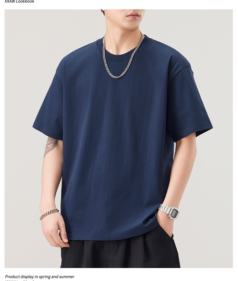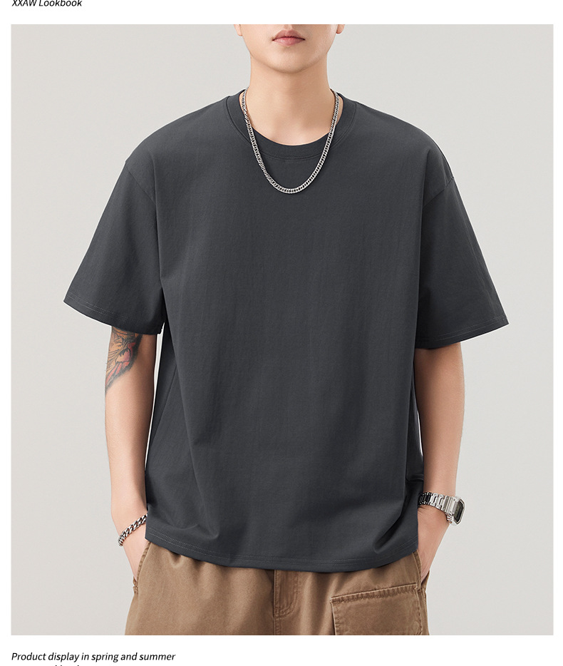Muqiu 남성복 ∠ 260g 헤비 코튼 반팔 티셔츠 남녀 커플 느슨한 반소매 티셔츠 솔리드 컬러베이스 셔츠스토어 가기