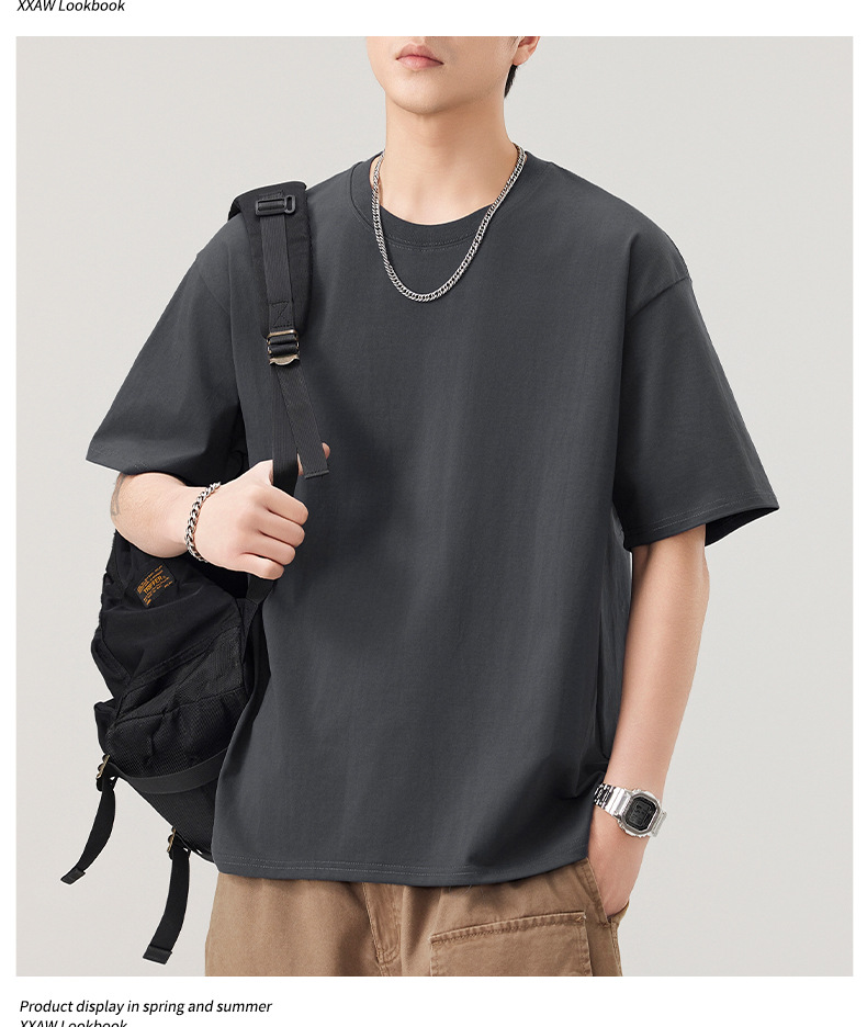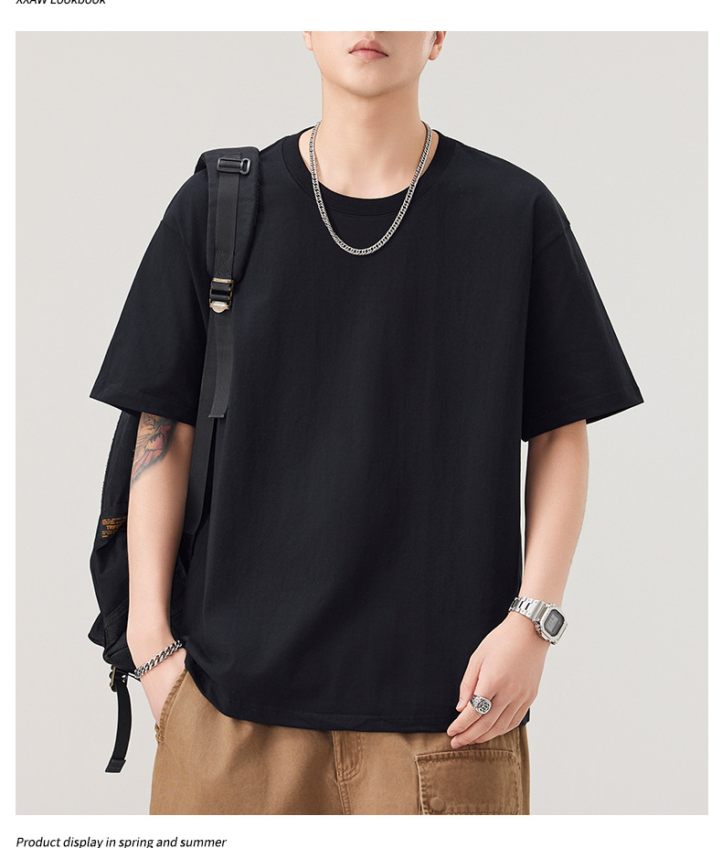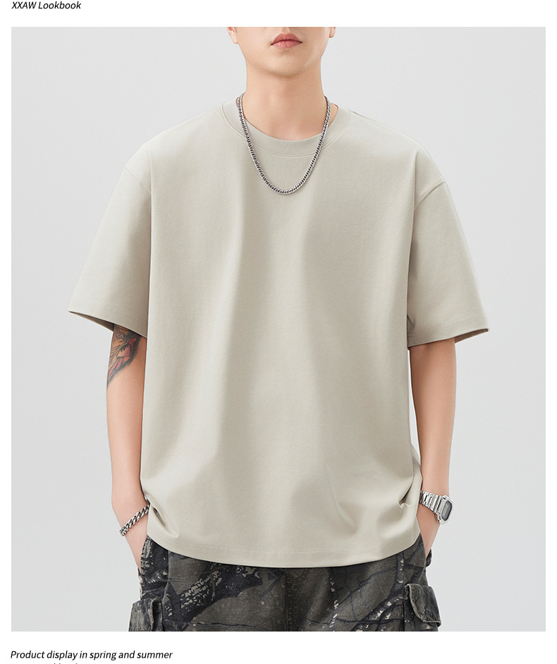 Muqiu 남성복 ∠ 260g 헤비 코튼 반팔 티셔츠 남녀 커플 느슨한 반소매 티셔츠 솔리드 컬러베이스 셔츠