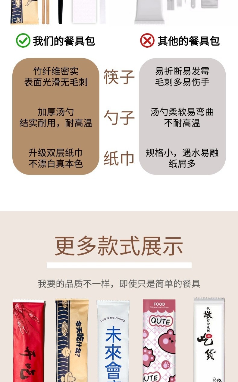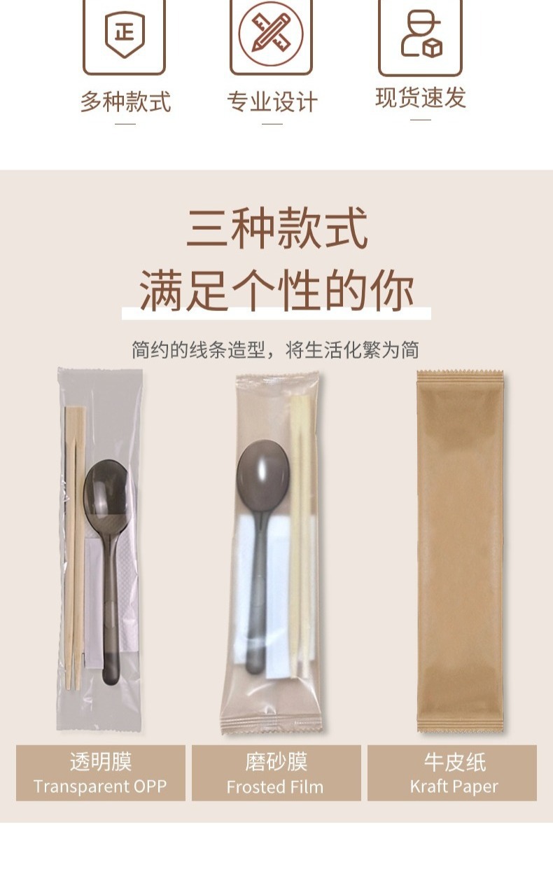 간단한 일회용 젓가락 4 종 세트 하드 스푼 간단한 세트 상업용 테이크 아웃 포장 식사 가방 맞춤형 젓가락
