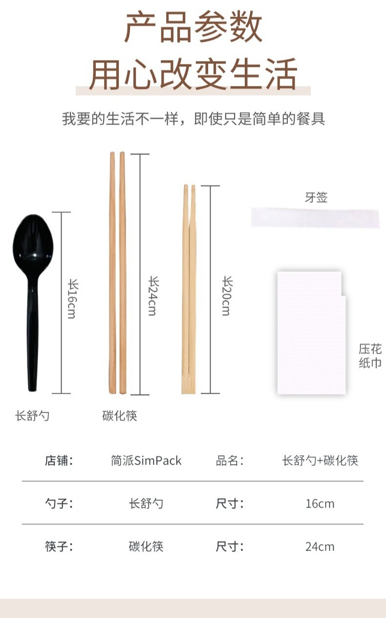 간단한 일회용 젓가락 4 종 세트 하드 스푼 간단한 세트 상업용 테이크 아웃 포장 식사 가방 맞춤형 젓가락스토어 가기