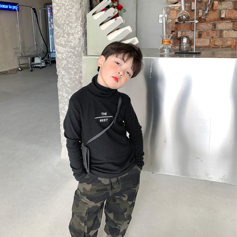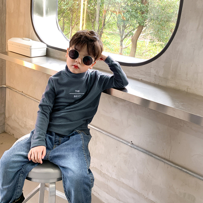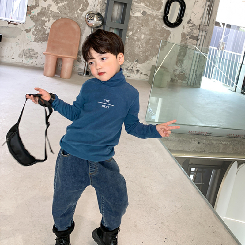 공장 직접 소년 가을 긴 소매 바닥 셔츠 어린이 드 벨벳 티셔츠 어린이 하이 칼라 재킷 머리카락 세대스토어 가기