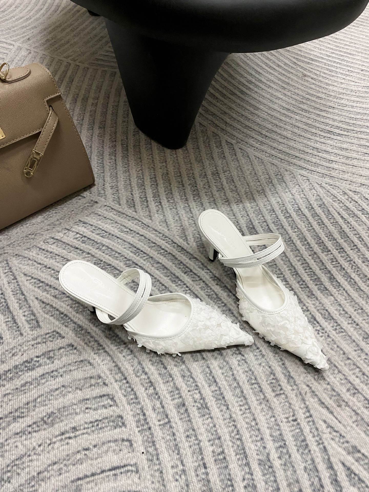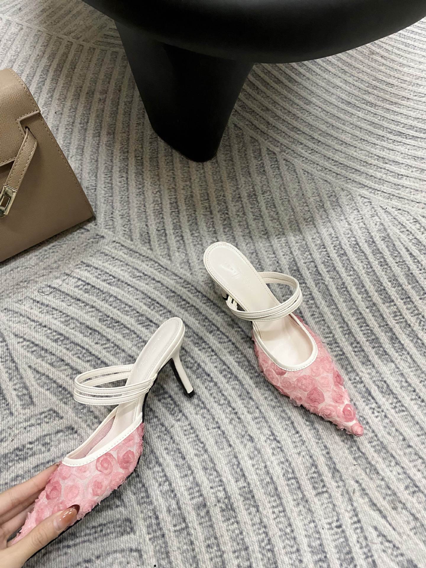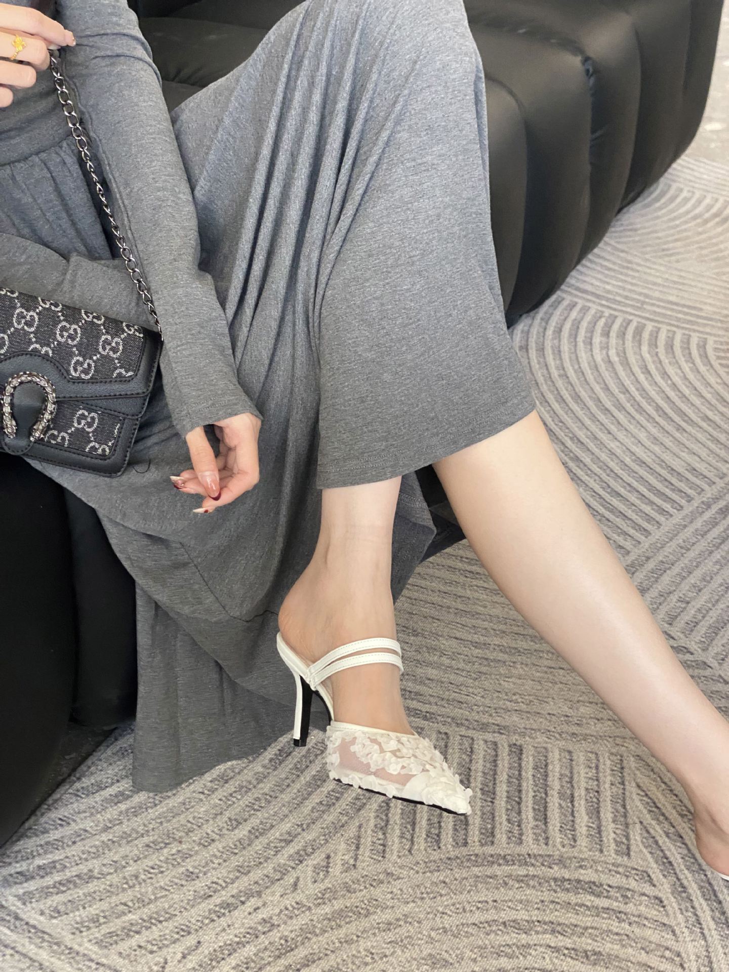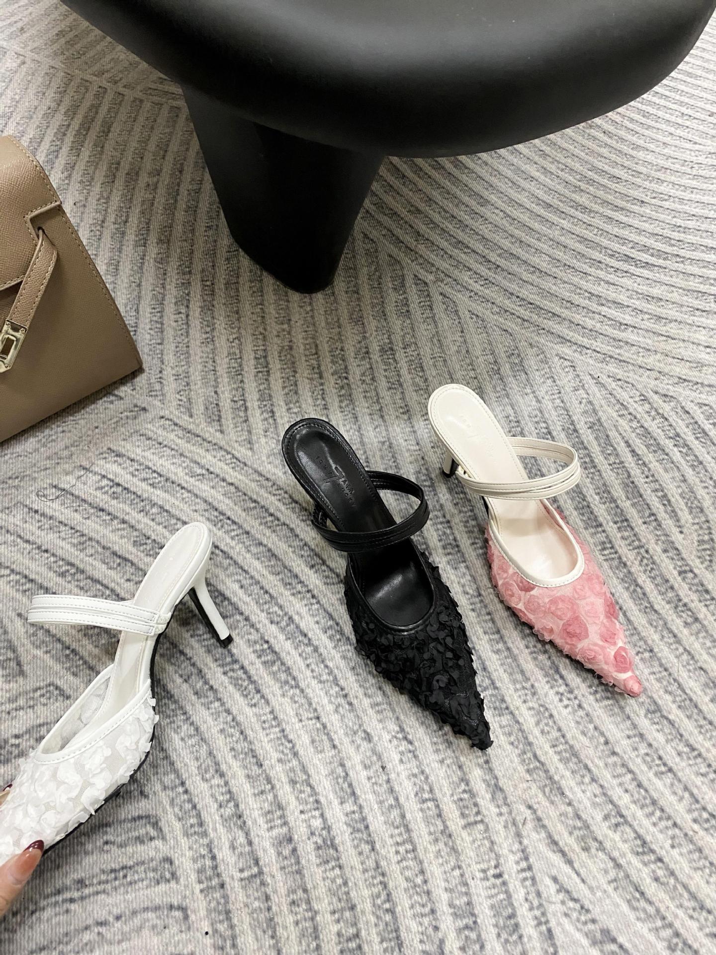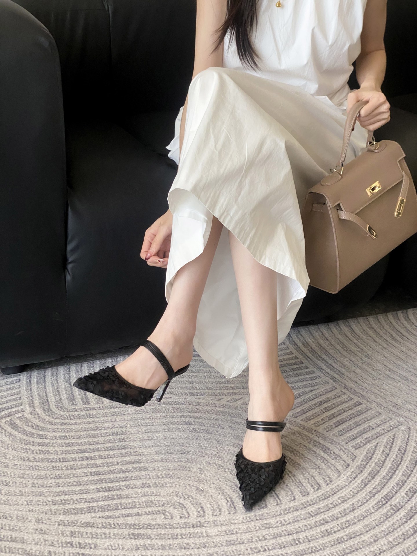 봄 2025 새로운 뾰족한 얇은 굽 하이힐 우아한 슬림 프랑스 유행 스테노 아름다운 여성 하프 슬리퍼