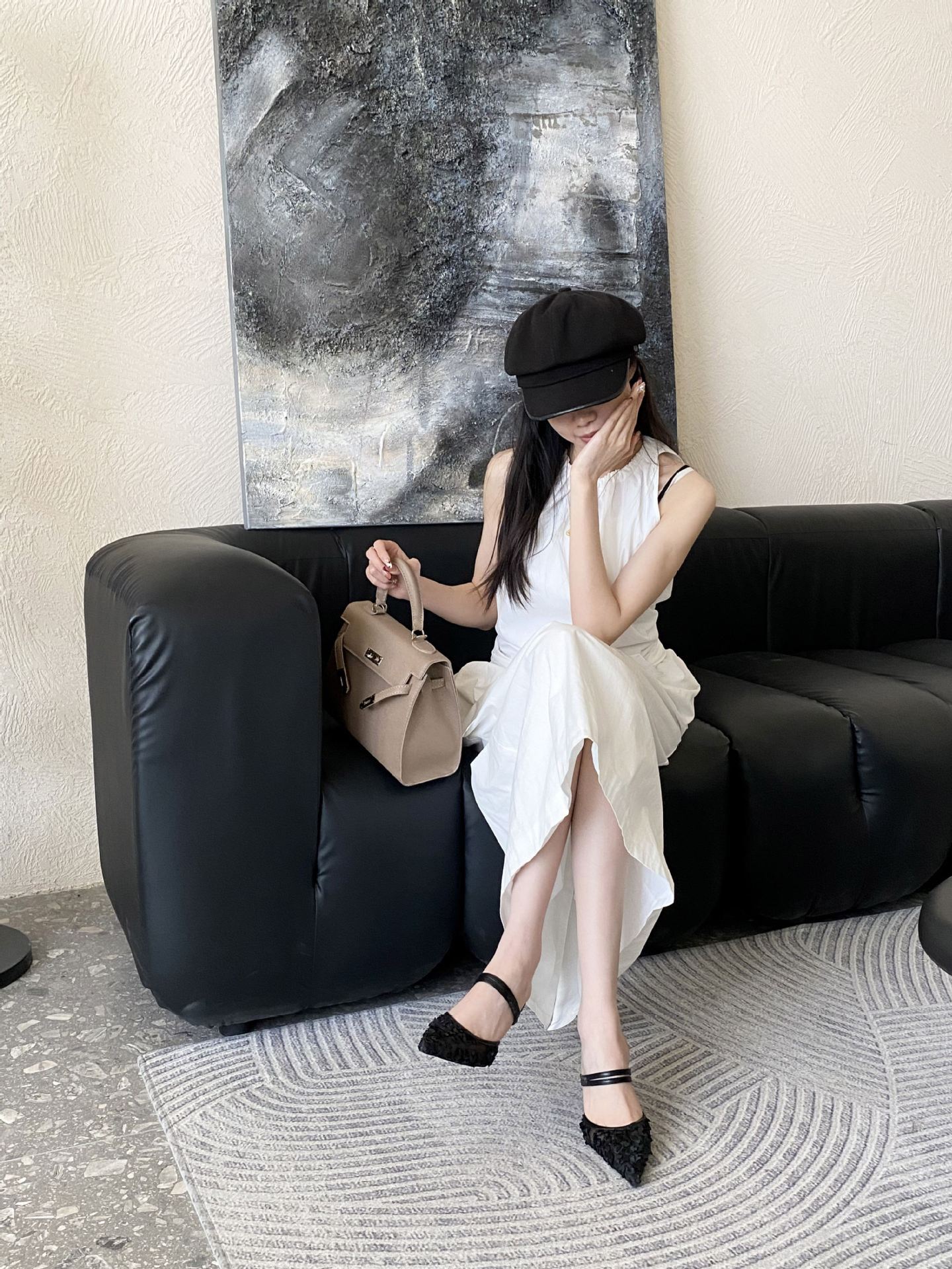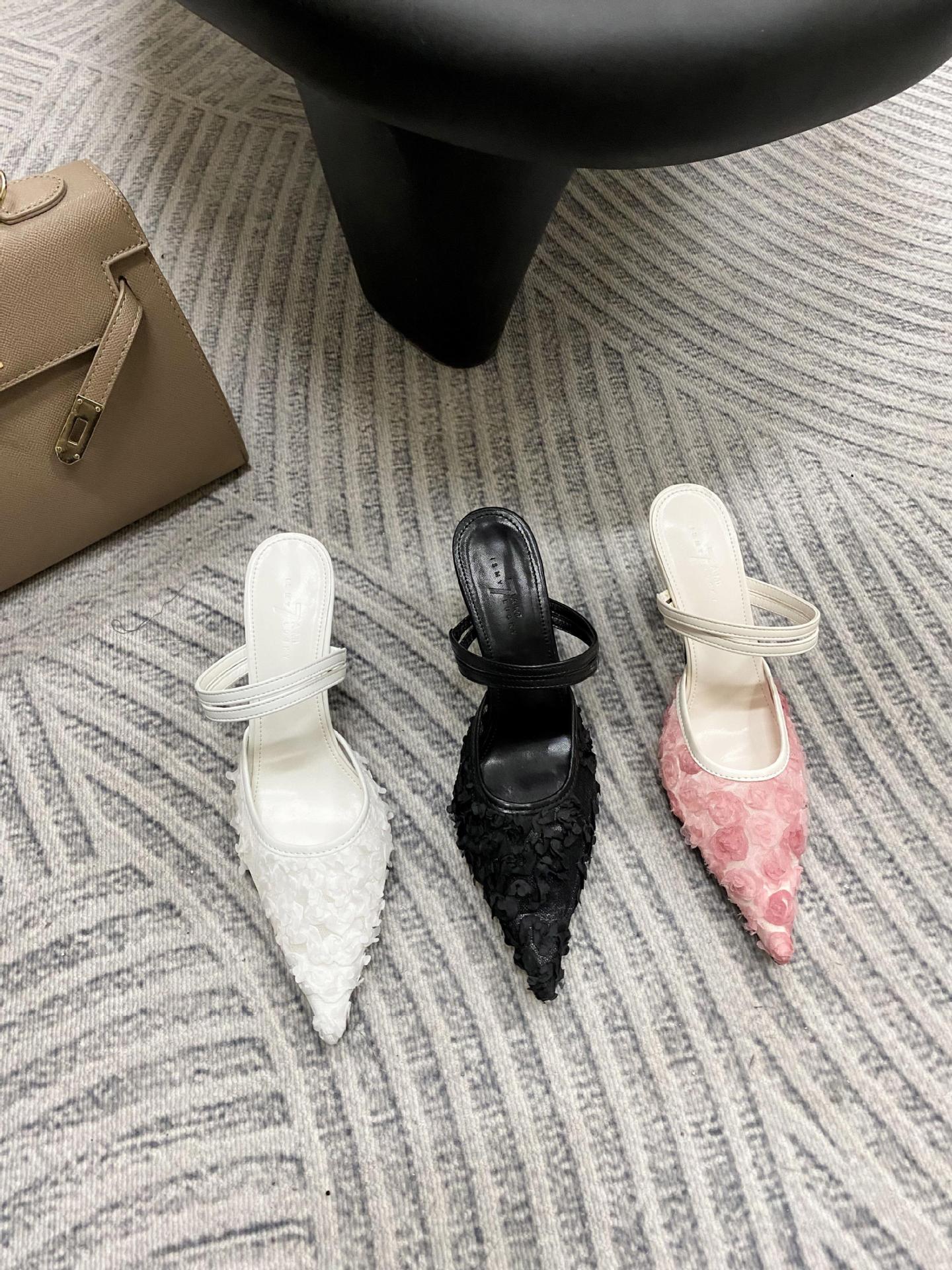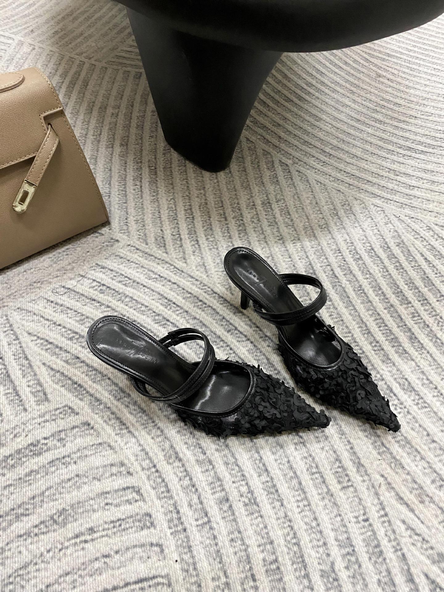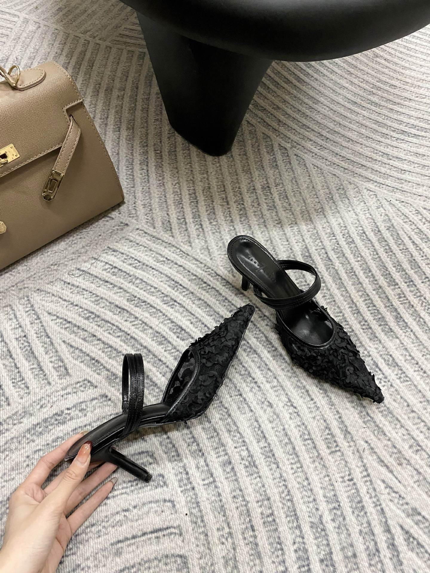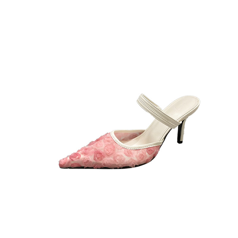 봄 2025 새로운 뾰족한 얇은 굽 하이힐 우아한 슬림 프랑스 유행 스테노 아름다운 여성 하프 슬리퍼