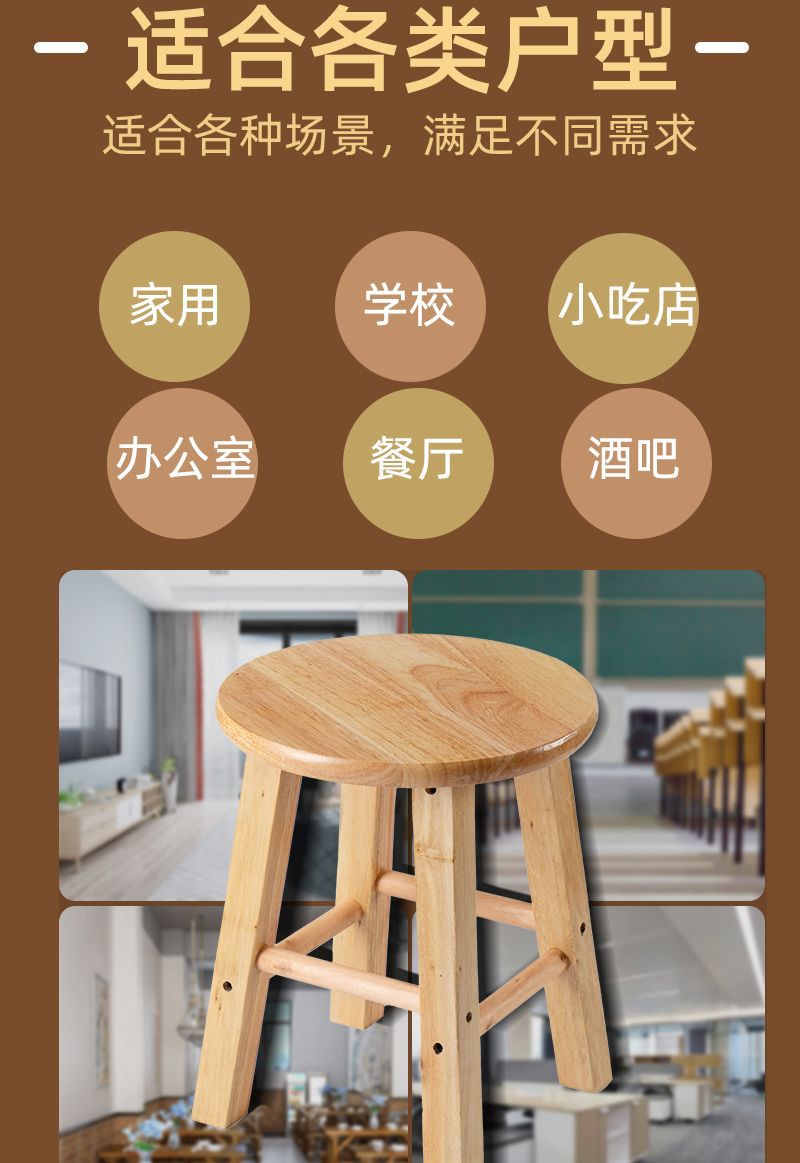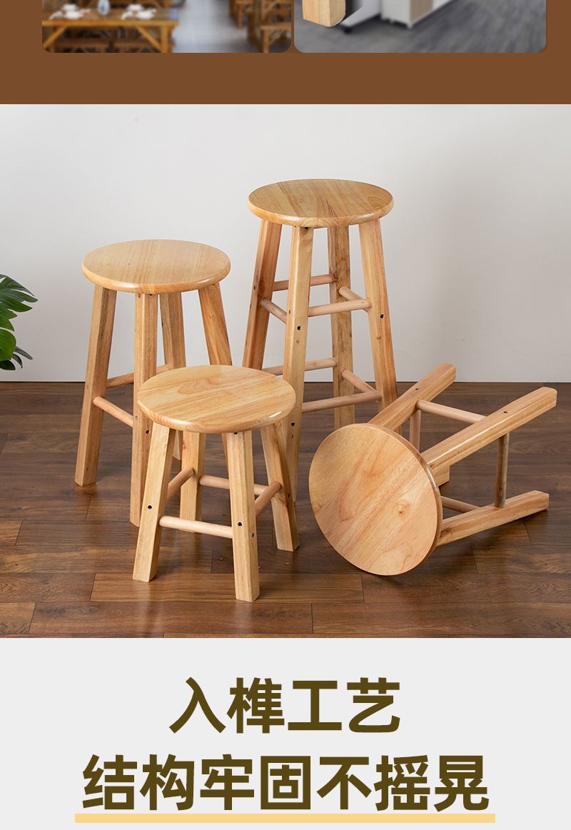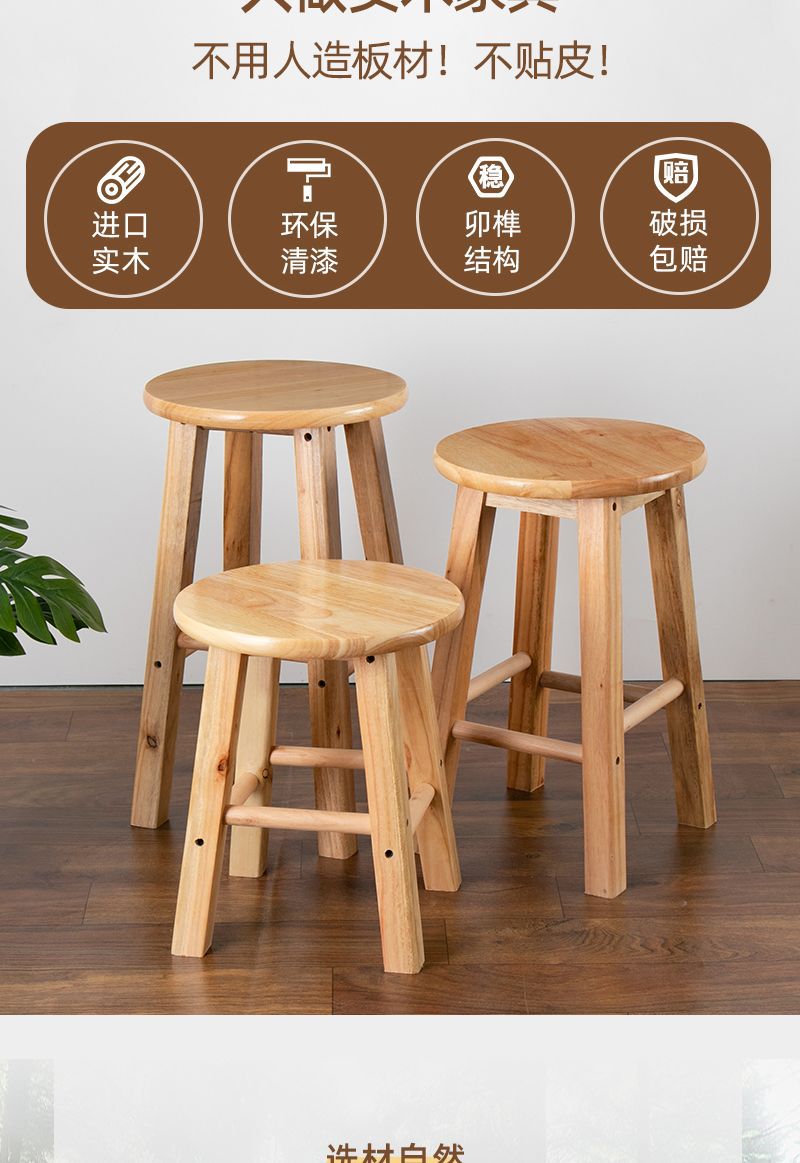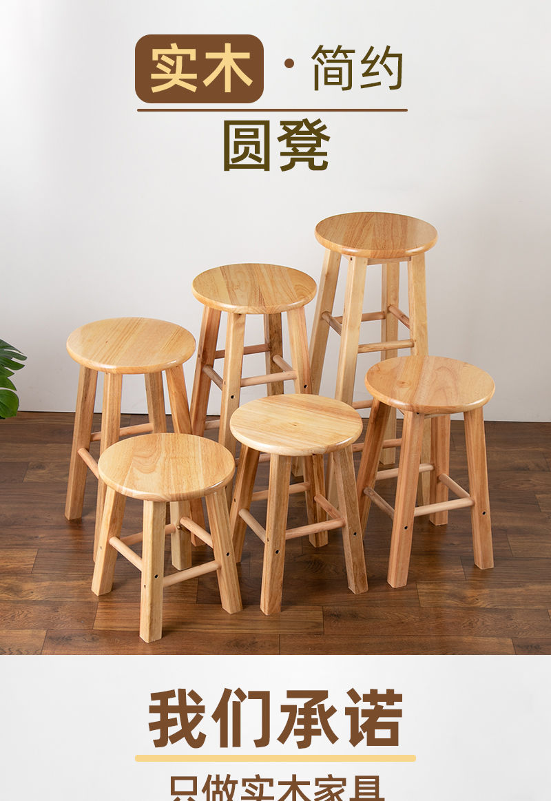 단단한 나무 벤치 가정용 작은 나무 벤치 의자 높은 의자 우유 차 가게 바 벤치 강화 라운드 조인트스토어 가기