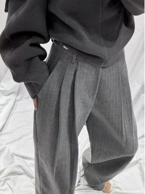 차오 클래스 추천! 회색 디자이너 바지 여성의 이른 봄 새로운 높은 허리 대두 캐주얼 넓은 다리 바지스토어 가기