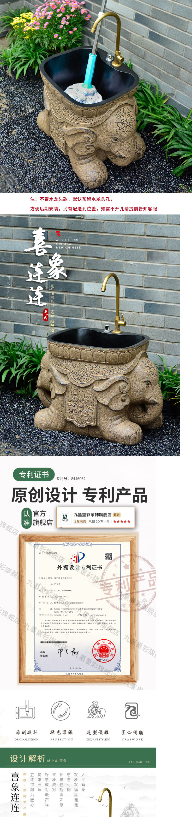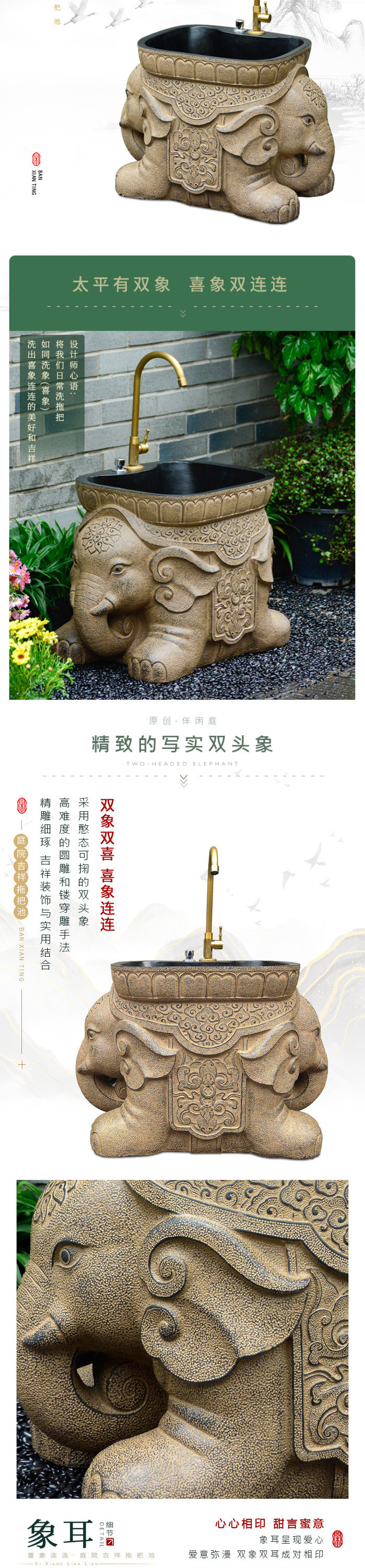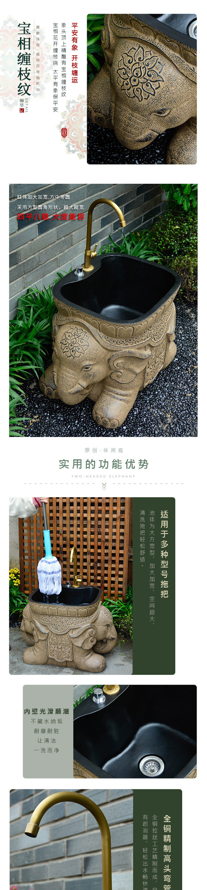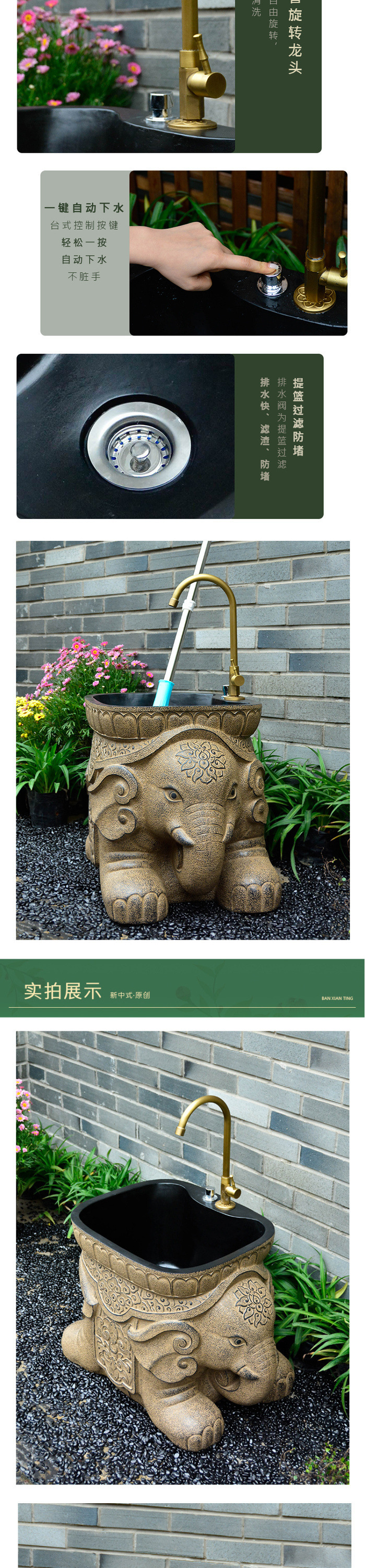 코트야드 야외 물 코끼리 청소 수영장 정원 세척 싱크대 자동 싱크대 발코니 세탁 수영장 홈