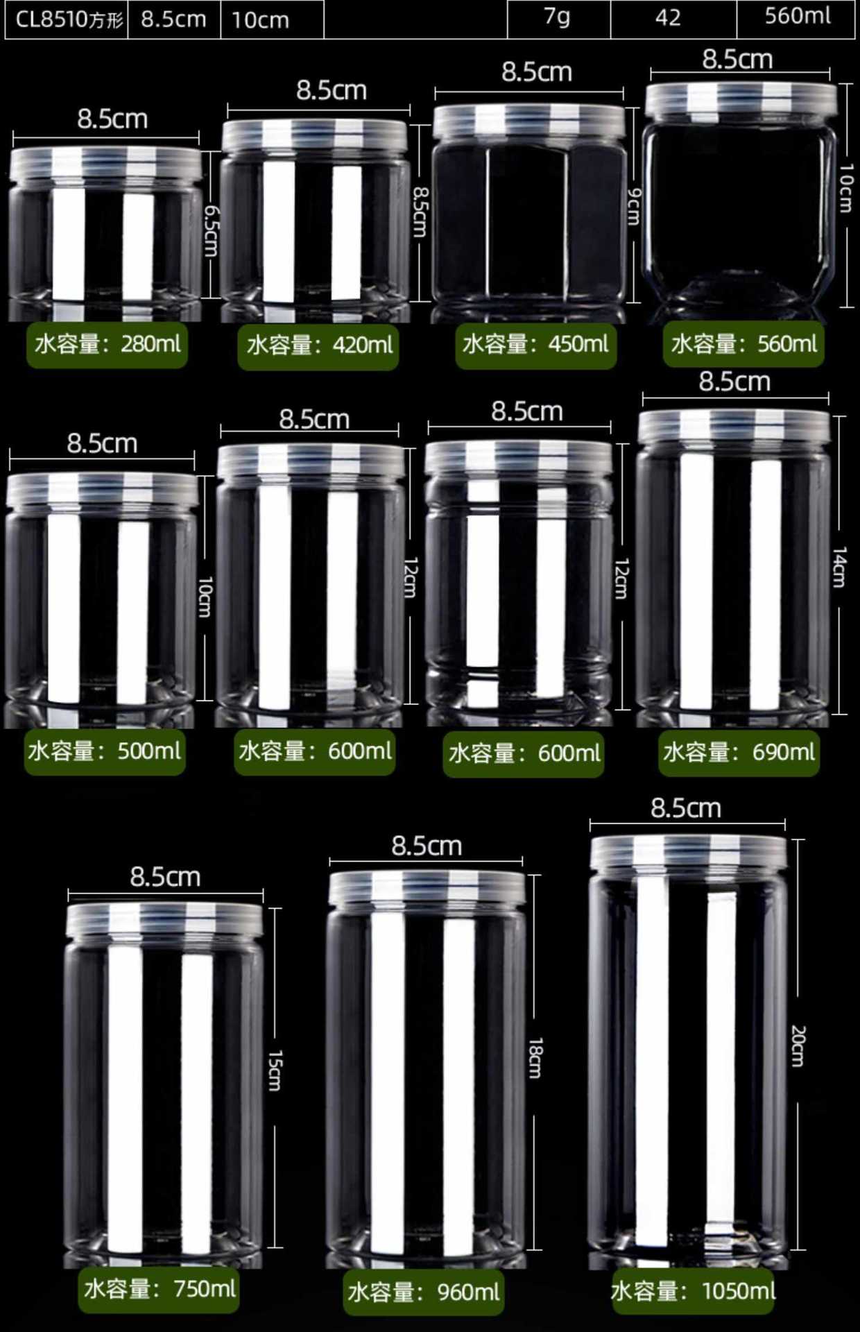 85 라운드 대용량 투명 플라스틱 병 밀봉 주방 곡물 저장 식품 저장 캔 스낵 캔 10스토어 가기