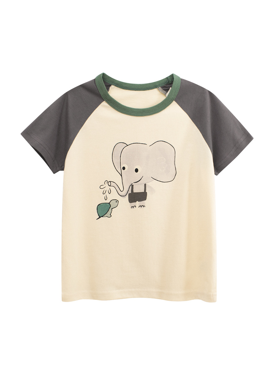 27 홈 여자 반팔 티셔츠 아기 여름 2025 한국 만화 인쇄 어린이 둥근 목 옷 도매스토어 가기